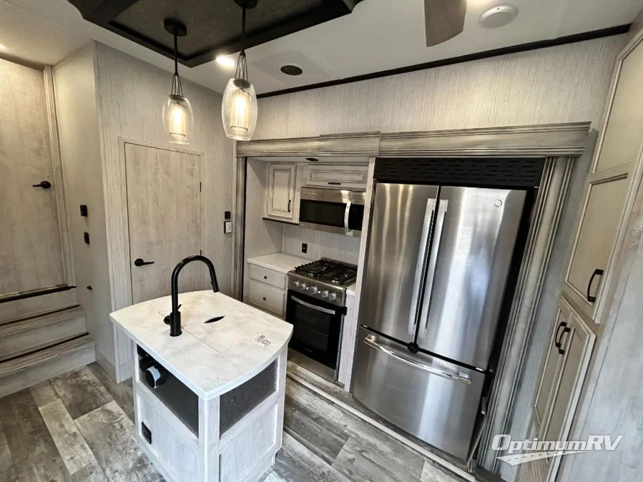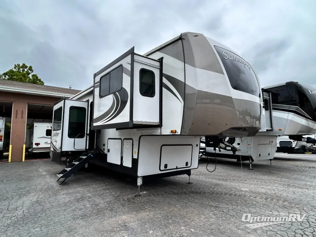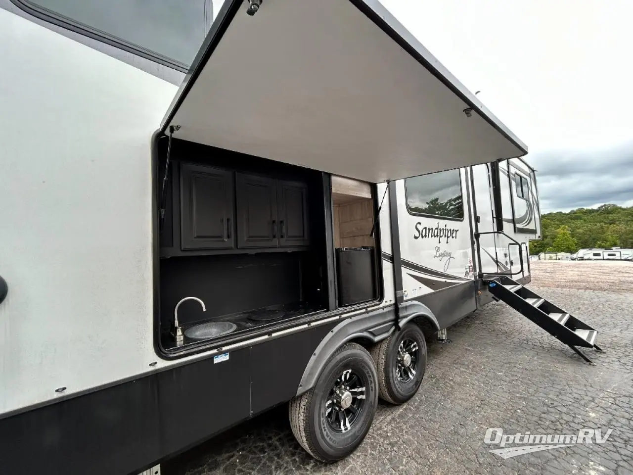 When a brand claims to be luxurious, you expect true luxury, and the Forest River Sandpiper Luxury fifth wheel delivers! The list of included features is outstanding, and the construction itself is top notch. Everything comes together on a welded aluminum-framed, vacuum-bonded laminated superstructure and a cambered powder-coated frame with rust prohibitor. There is a fully enclosed, heated underbelly and an unobstructed drop-frame pass-through storage area with cable jacks and 110V outlet. Two LED-lit exterior speakers add some fun to the outside, and the docking station includes easy winterization, hot and cold spray port, black tank flush, and pull valves for tanks. But the true luxury is found inside with the 84" interior height, residential countertops, recessed residential lighting, extra-large picture windows, LED-lit headboard, and premium sound bar with built-in flush-mount DVD player. Each unit has also been prepped for a washer/dryer so that you can extend every trip and make your Sandpiper Luxury feel more like home.
