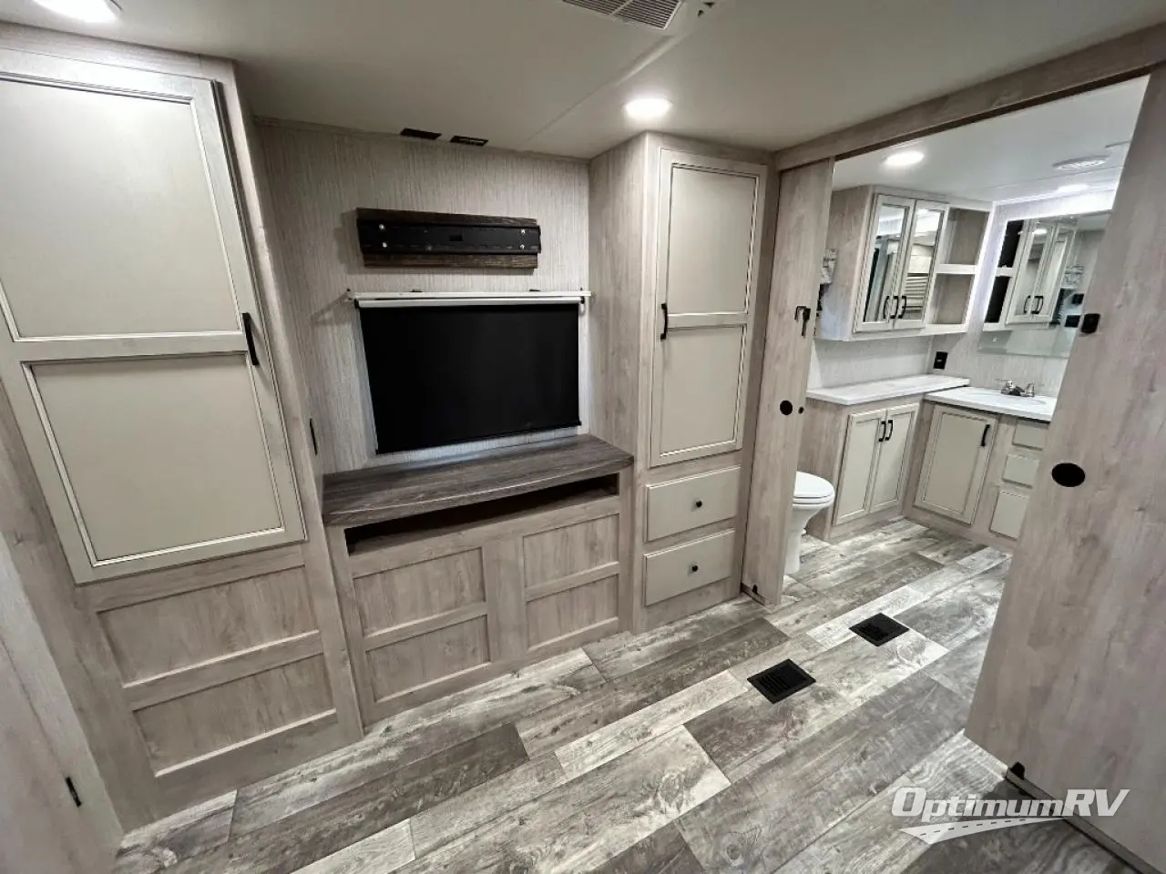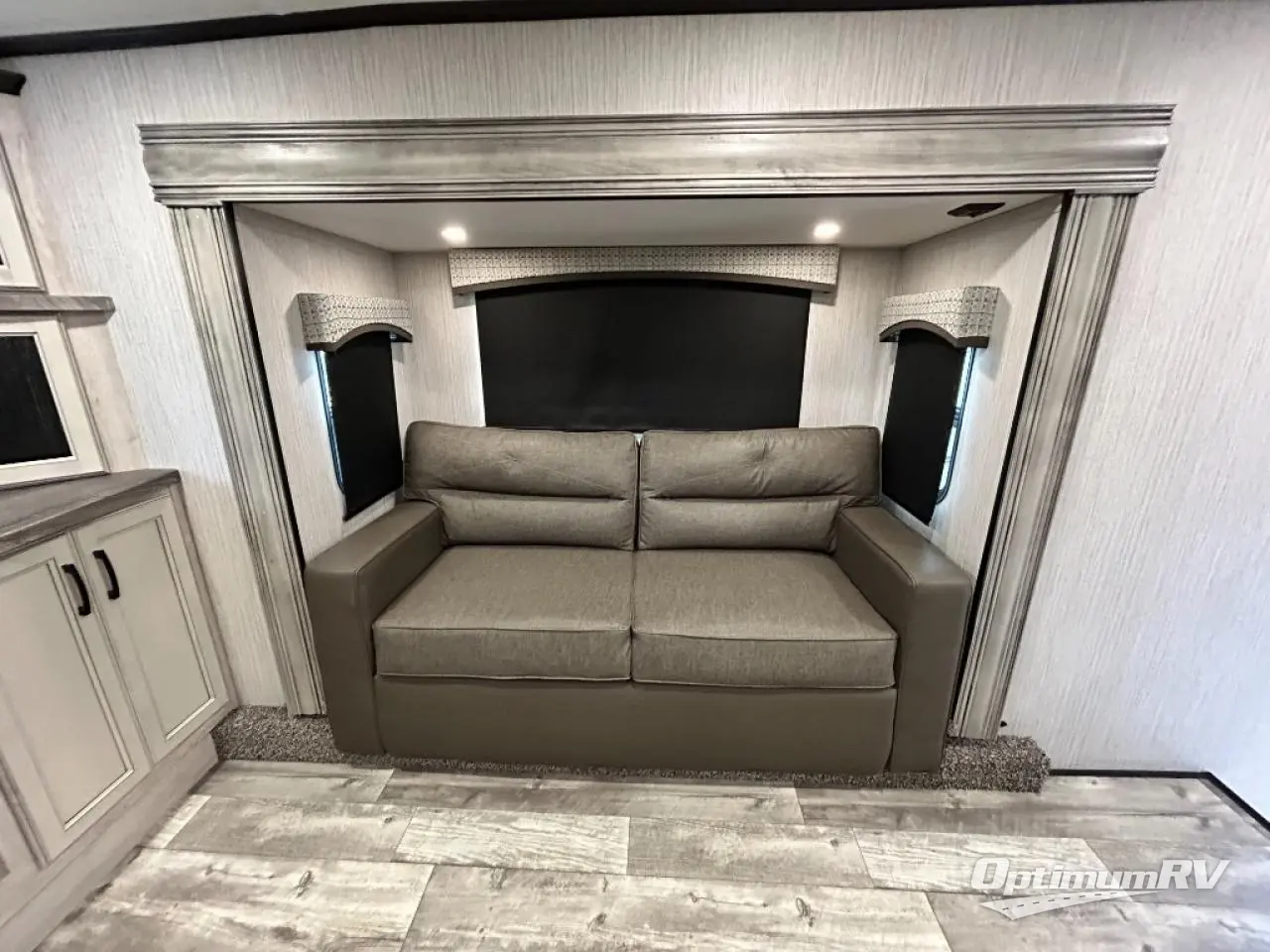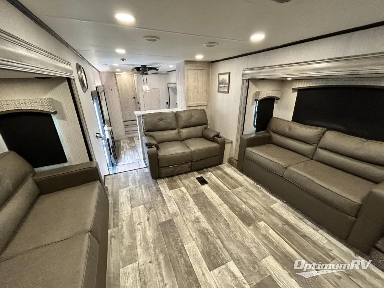 When a brand claims to be luxurious, you expect true luxury, and the Forest River Sandpiper Luxury fifth wheel delivers! The list of included features is outstanding, and the construction itself is top notch. Everything comes together on a welded aluminum-framed, vacuum-bonded laminated superstructure and a cambered powder-coated frame with rust prohibitor. There is a fully enclosed, heated underbelly and an unobstructed drop-frame pass-through storage area with cable jacks and 110V outlet. Two LED-lit exterior speakers add some fun to the outside, and the docking station includes easy winterization, hot and cold spray port, black tank flush, and pull valves for tanks. But the true luxury is found inside with the 84" interior height, residential countertops, recessed residential lighting, extra-large picture windows, LED-lit headboard, and premium sound bar with built-in flush-mount DVD player. Each unit has also been prepped for a washer/dryer so that you can extend every trip and make your Sandpiper Luxury feel more like home.