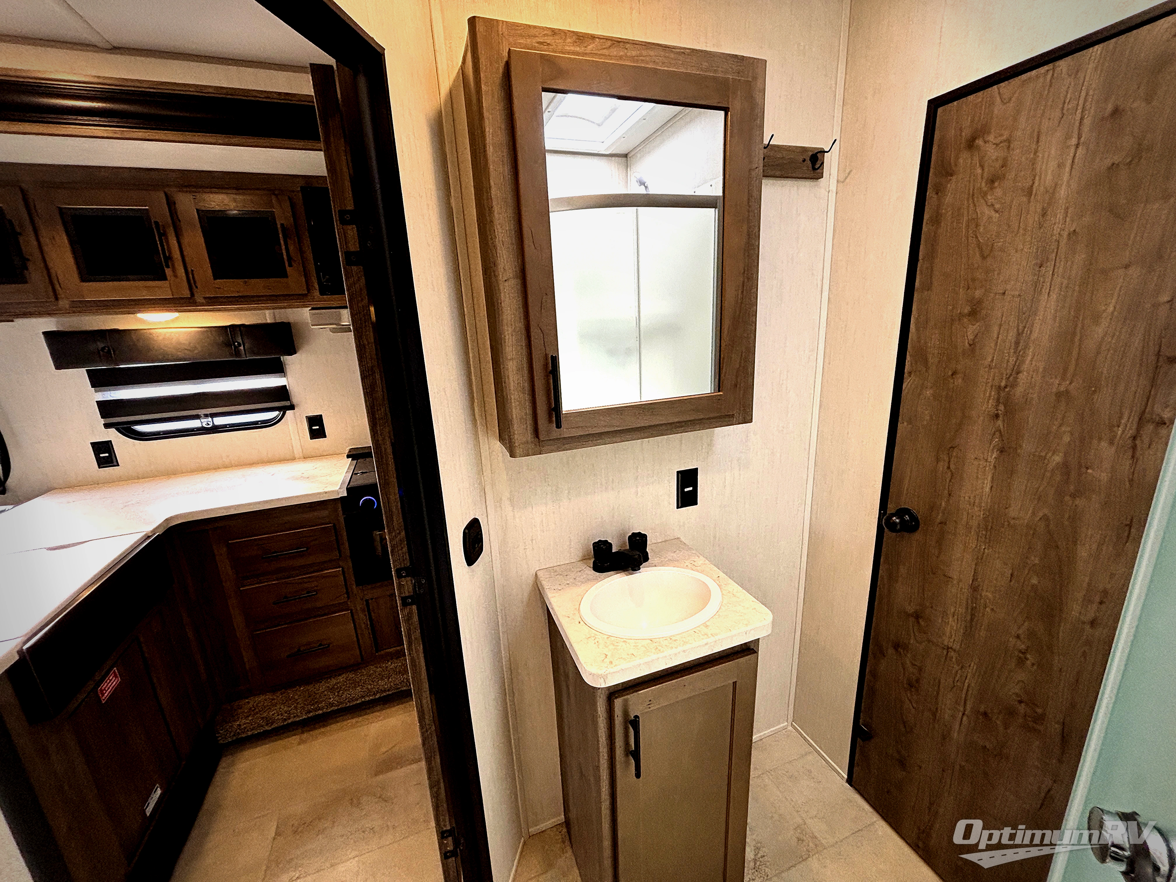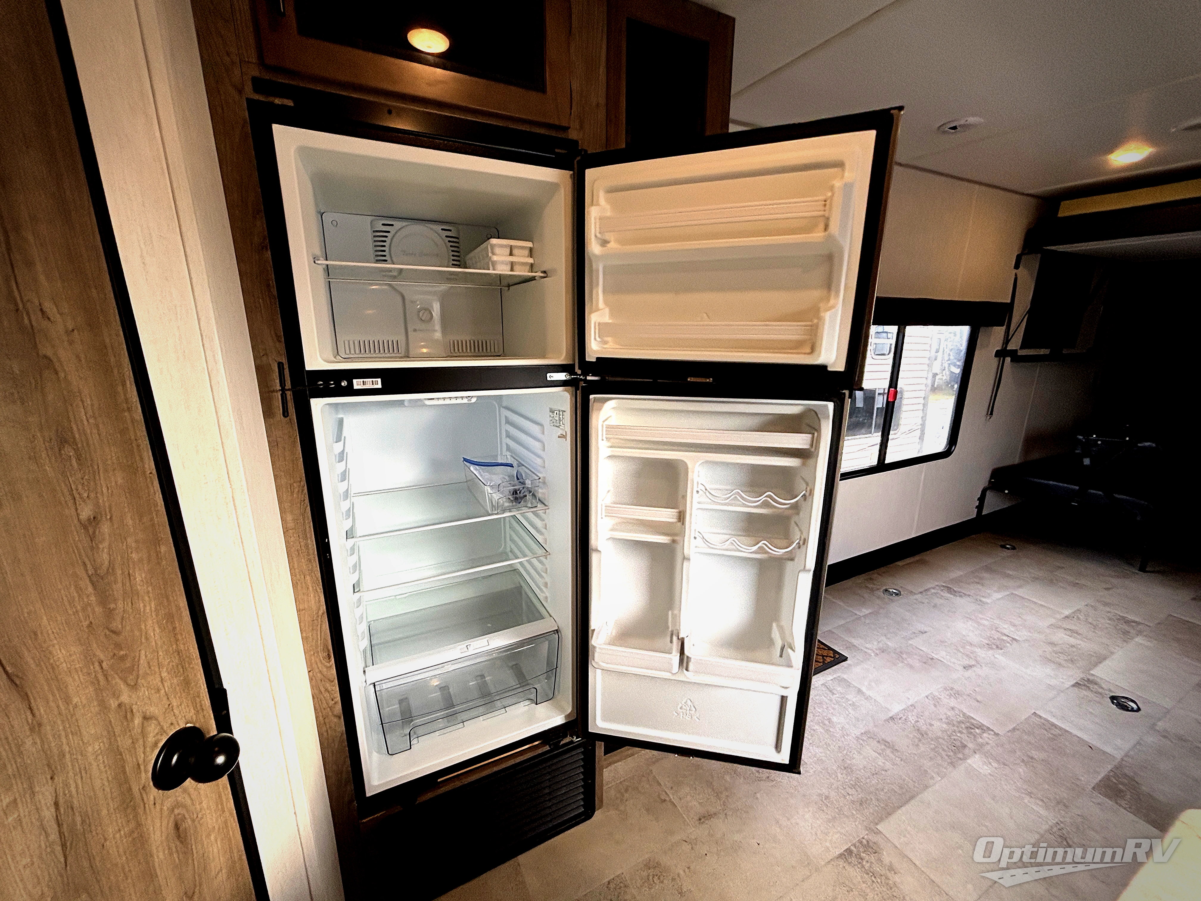 Bring along your kayaks, dirt bikes, or even a side-by-side in this toy hauler. There is 15' 10" total garage space, and a ramp door for easy unloading. Once your toys are out, enjoy lunch at the roll-over sofas, or let your guests rest on the quick set queen bed system before heading out. There is a dual entry bath to clean up in each day, and the Rogue king bed is sure to bring sweet dreams. In the morning, prepare eggs and bacon on the three burner cooktop, and the milk can go back in the 10.1 cu. ft. residential refrigerator. This model also includes a flip-up sofa for more seating and sleeping space, and you can add the optional lounge chairs too!