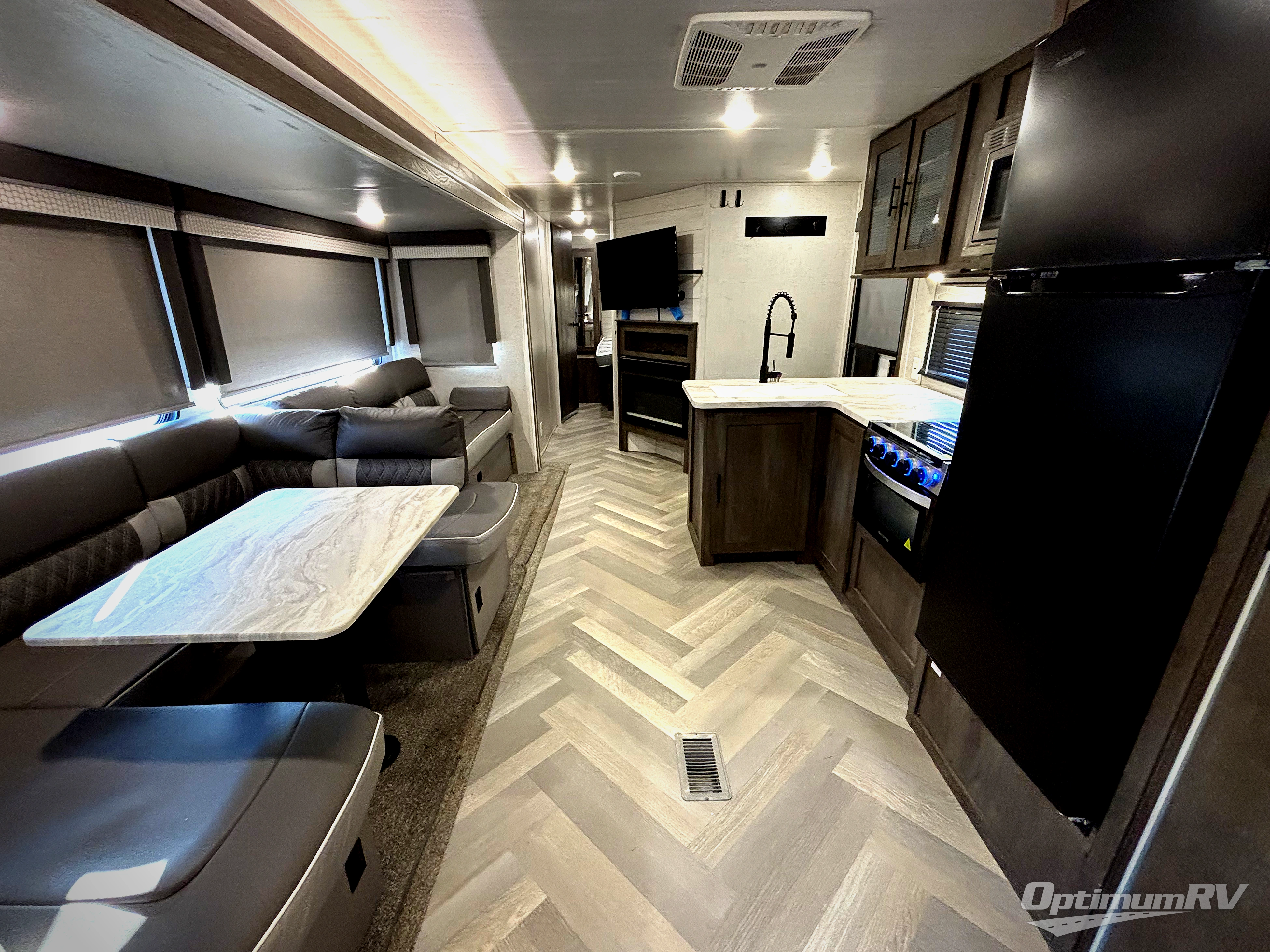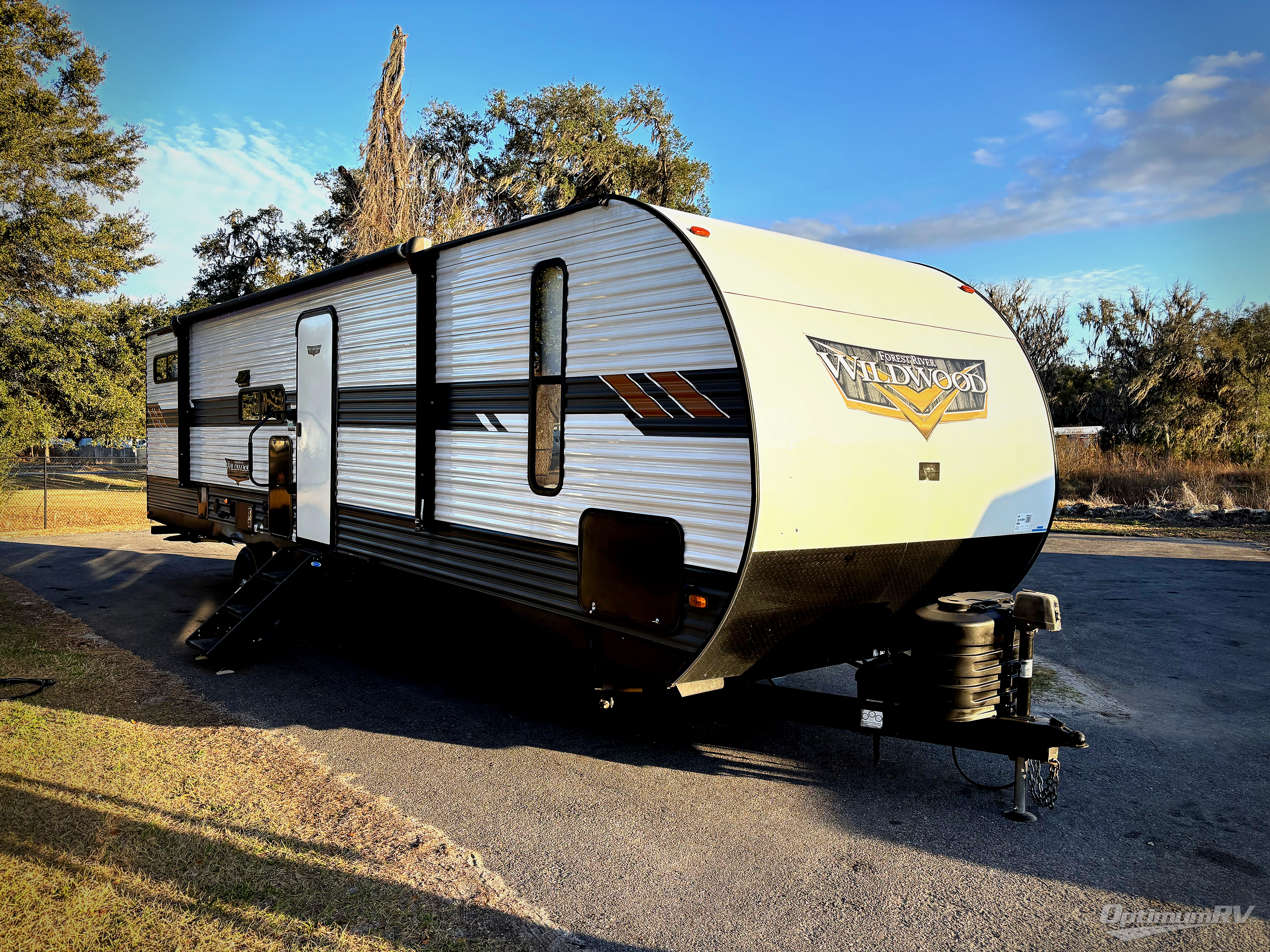 Forest River offers you the highest quality and the best components in its Wildwood travel trailer! The fully walkable one-piece roof is ultra reliable, and the rest of the construction is just as dependable with the powder-coated I-beam frame, cambered chassis, R-7 fiberglass insulation, nitrogen-filled tires, and triple-seal slide-out system. The Wildwood is not only full of quality, but it is also full of style with its herringbone luxury vinyl flooring, upgraded designer furniture, high-gloss exterior metal, and seamless countertops. The Wildwood also comes with some extra features that will make your life more comfortable, like the exterior speakers with blue LED light, the tablet-compatible USB ports, the residential vanity with shower caddy, and true stabilizer jacks with JT's Strong Arm.