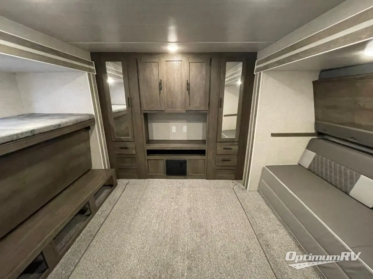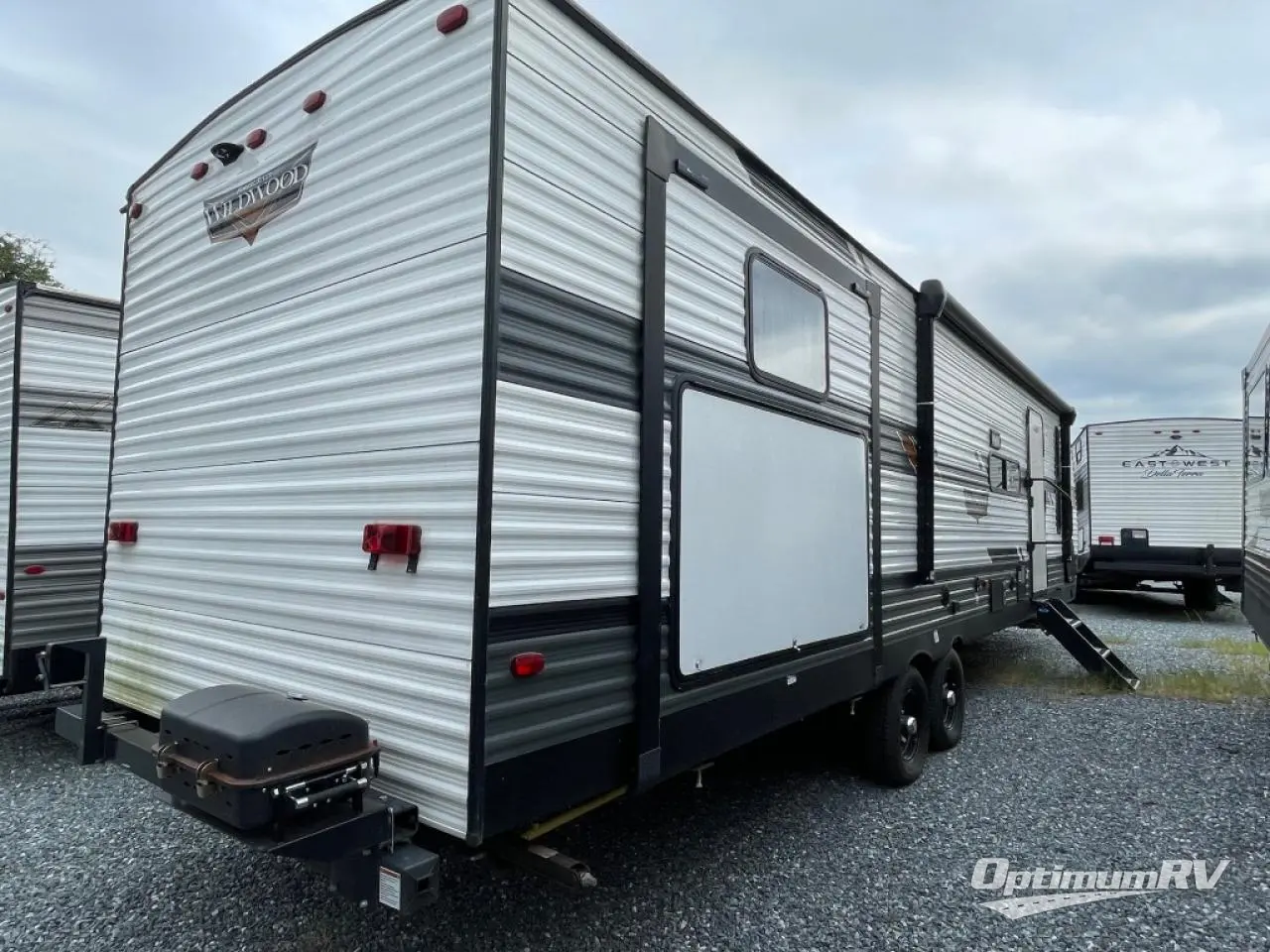 Forest River offers you the highest quality and the best components in its Wildwood travel trailer! The fully walkable one-piece roof is ultra reliable, and the rest of the construction is just as dependable with the powder-coated I-beam frame, cambered chassis, R-7 fiberglass insulation, nitrogen-filled tires, and triple-seal slide-out system. The Wildwood is not only full of quality, but it is also full of style with its herringbone luxury vinyl flooring, upgraded designer furniture, high-gloss exterior metal, and seamless countertops. The Wildwood also comes with some extra features that will make your life more comfortable, like the exterior speakers with blue LED light, the tablet-compatible USB ports, the residential vanity with shower caddy, and true stabilizer jacks with JT's Strong Arm.