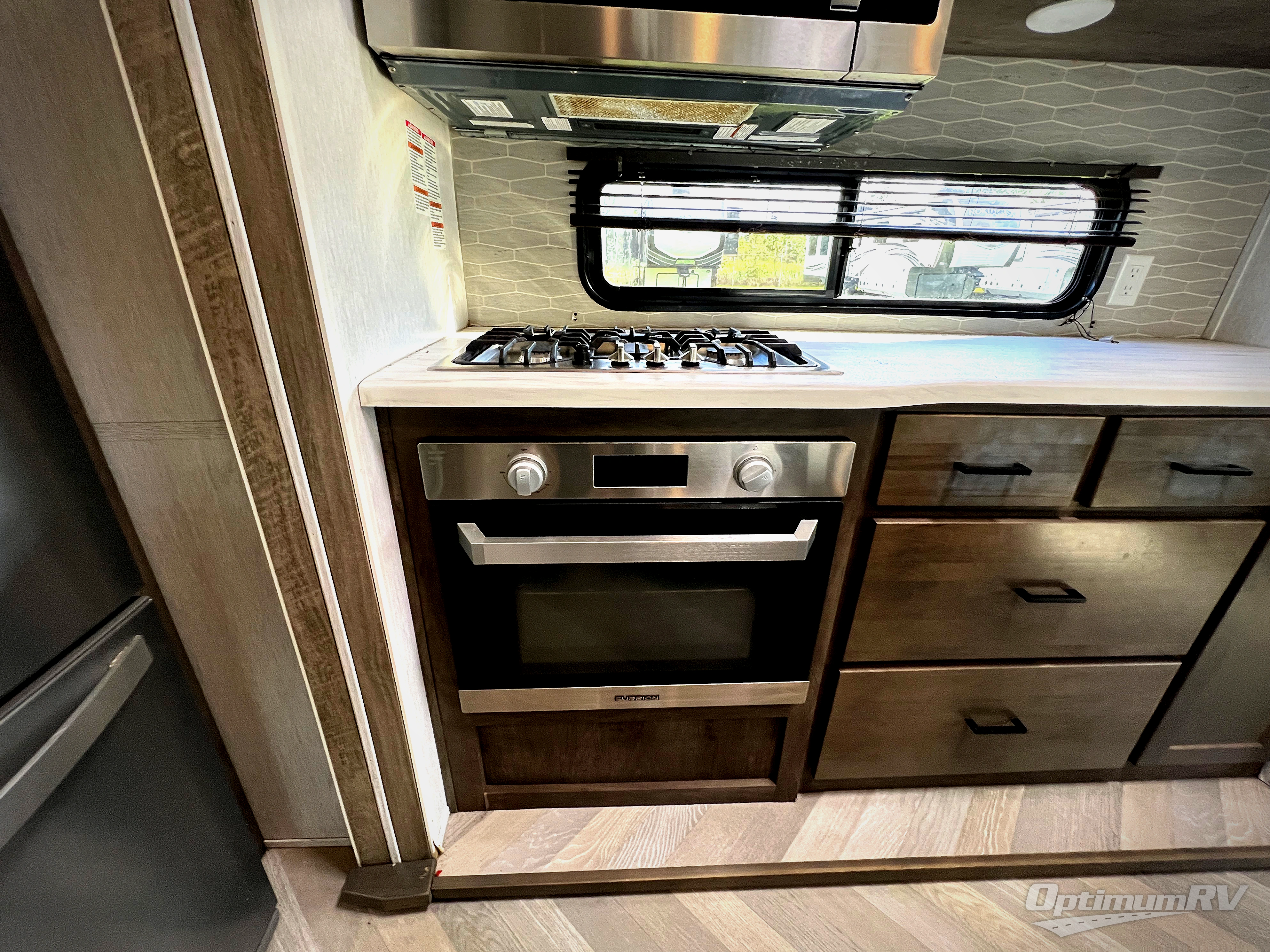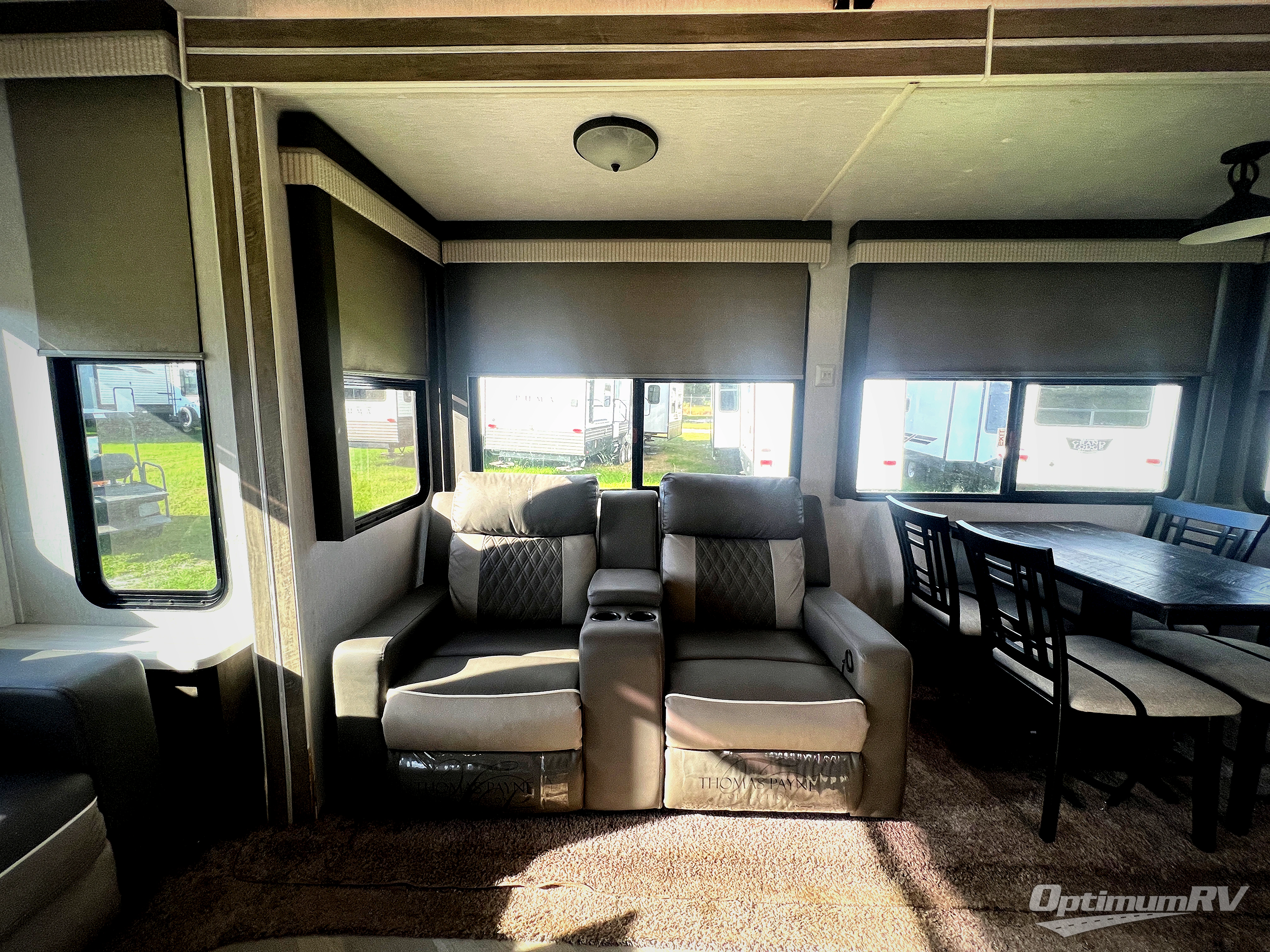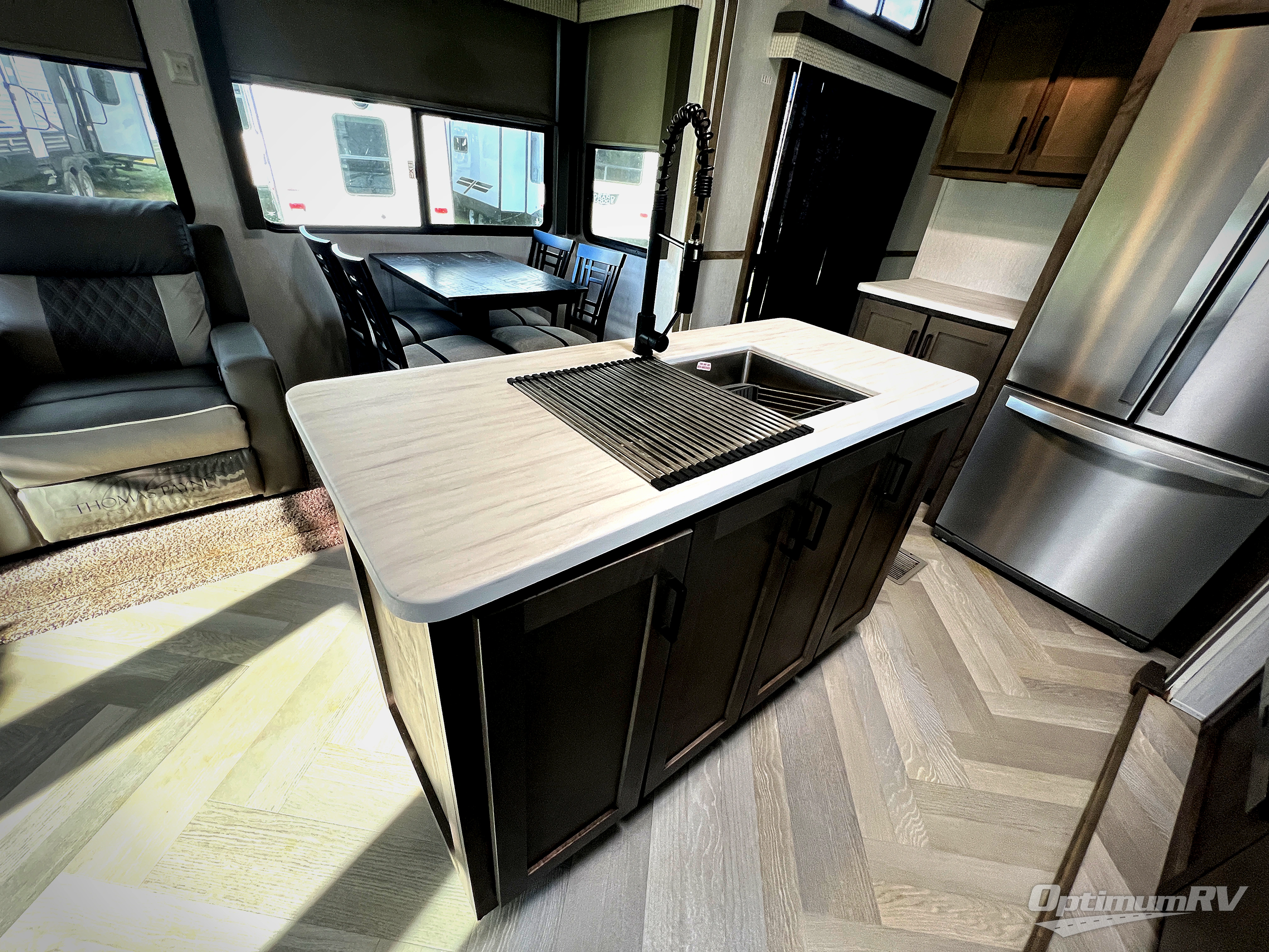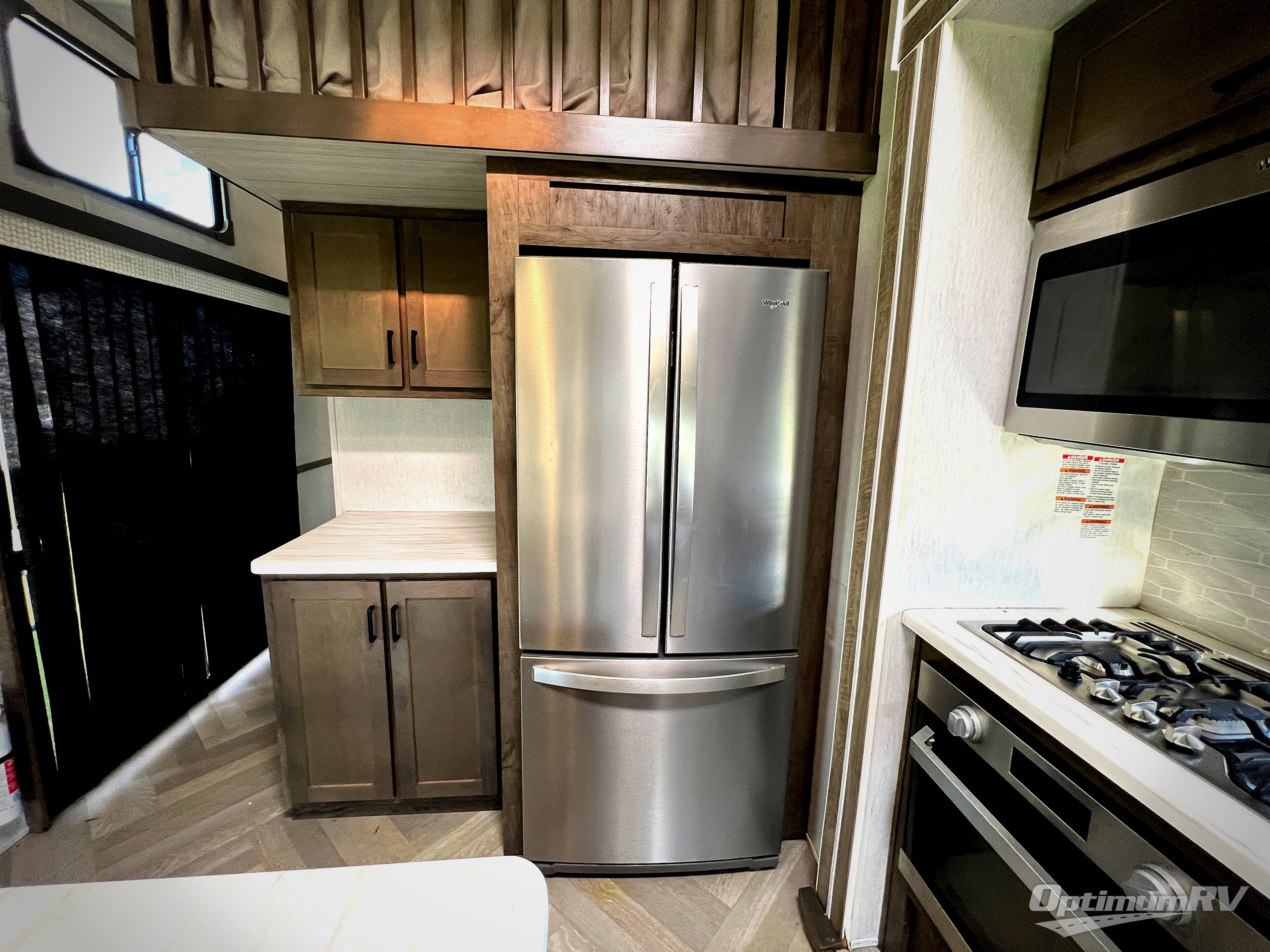 If you just need to get away from the busyness of life and need a little piece of home to escape to, the Forest River Wildwood Grand Lodge destination trailer is your ticket to paradise! The quality construction includes a 12" forged l-beam frame, 5-ply tongue and groove plywood floor decking, bowed truss roof rafters, plus more allowing you to own your trailer for many years to come! The interior is extremely beautiful and spacious with its 96" ceiling, upgraded designer furniture, stainless steel kitchen appliances, and a residential-inspired floating fireplace. The Bluetooth sound bar with a remote will provide endless nights of soothing music, and the ceiling fan in the living room is a residential touch that comes in handy when you don't want to blast the air conditioning to stay cool.