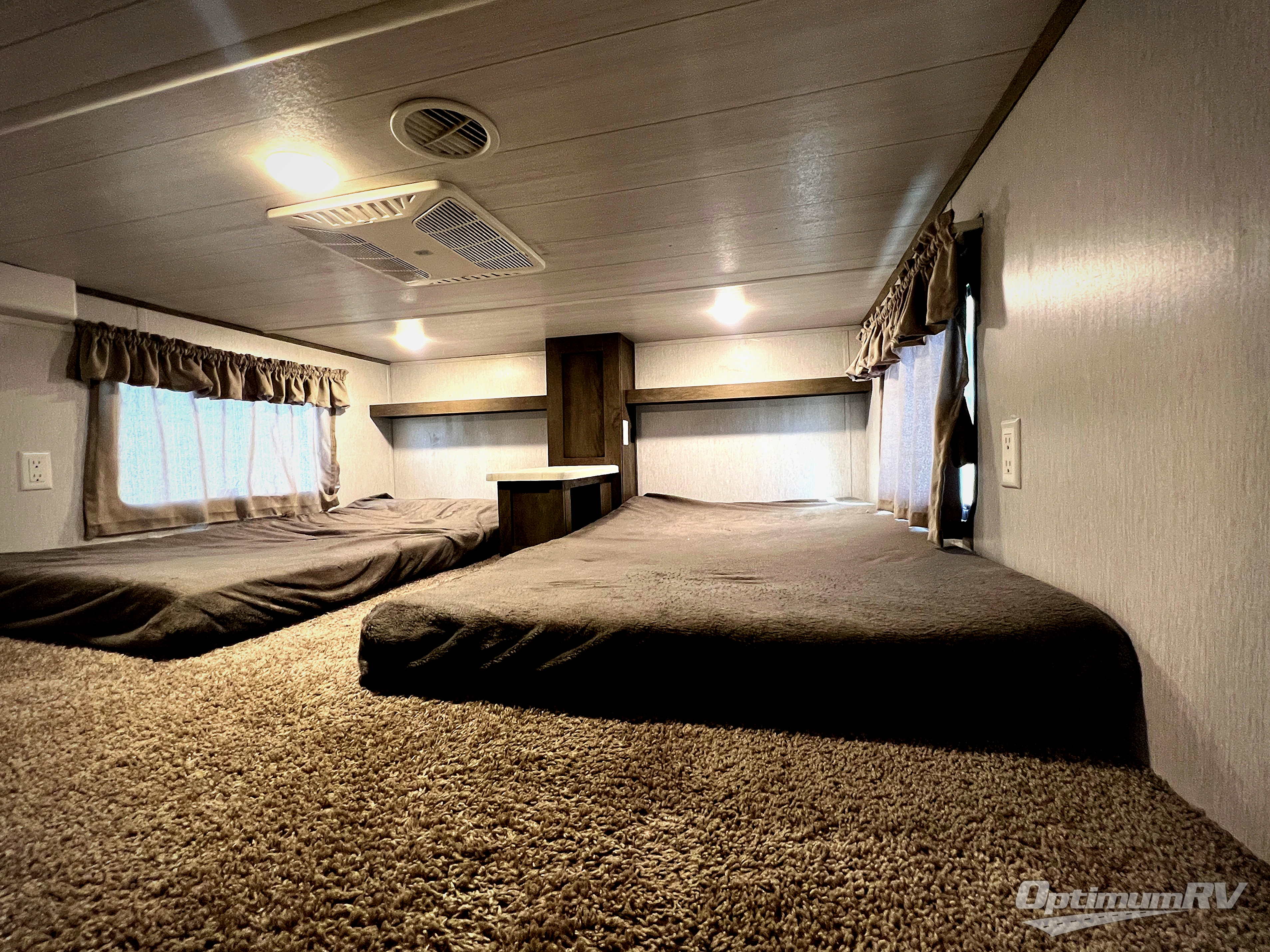 Keep your family happy by providing them with plenty of space and accommodations in this Wildwood Grand Lodge destination trailer! The living area is such a gorgeous feature in this unit because of the panoramic front windows that allow you to feel as if you're right in the heart of your surroundings, and as you sit on the sofa next to the fireplace, you'll appreciate the ambiance it brings to this space. If you've decided to stay up late outside underneath the 21' awning, you can rest assured that you'll be able to get back inside quietly without waking anyone up because the second entry door leads directly into the rear private bedroom for your convenience so you can quickly fall asleep on your own custom king bed. And the kids will love the double loft with three bunk mats and extra floor space to play.