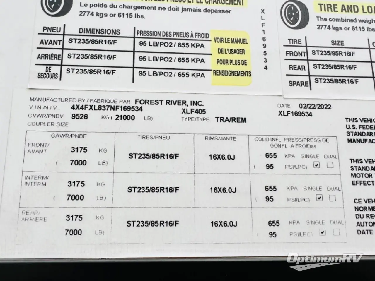 - VIN 4X4FXL837NF169534