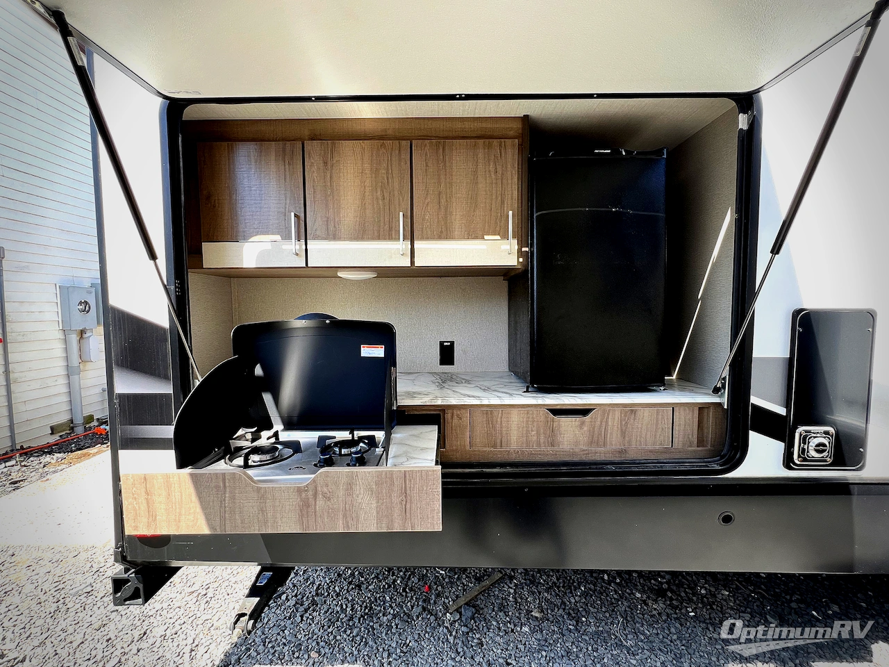 This Imagine travel trailer has an amazing amount of convenience with its two private sleeping spaces! There is a master suite in the front and a private bunkhouse in the back. The master suite contains a 60" x 80" bed with overhead cabinets and closets on either side of the bed. It also has the second exterior entry door as well as a private entrance into the dual-entry bathroom. The bunkhouse offers sleeping space for four with its four bunk beds, and it also has four drawers below the bottom bunks. The main living area has opposing slides which offer more space for all of these people to socialize in the evening, and the 40" LED HDTV on a swing arm will provide entertainment for everyone.