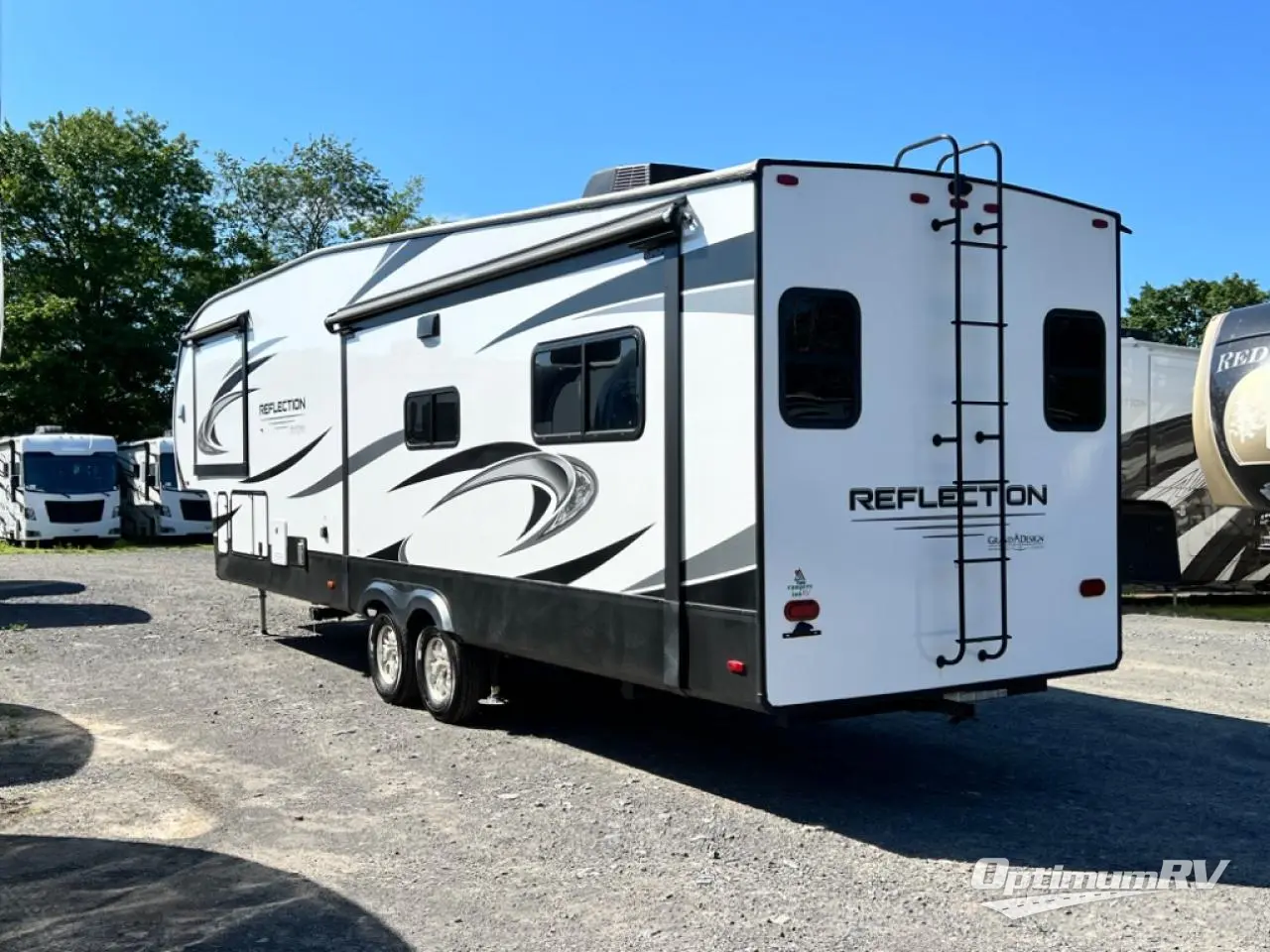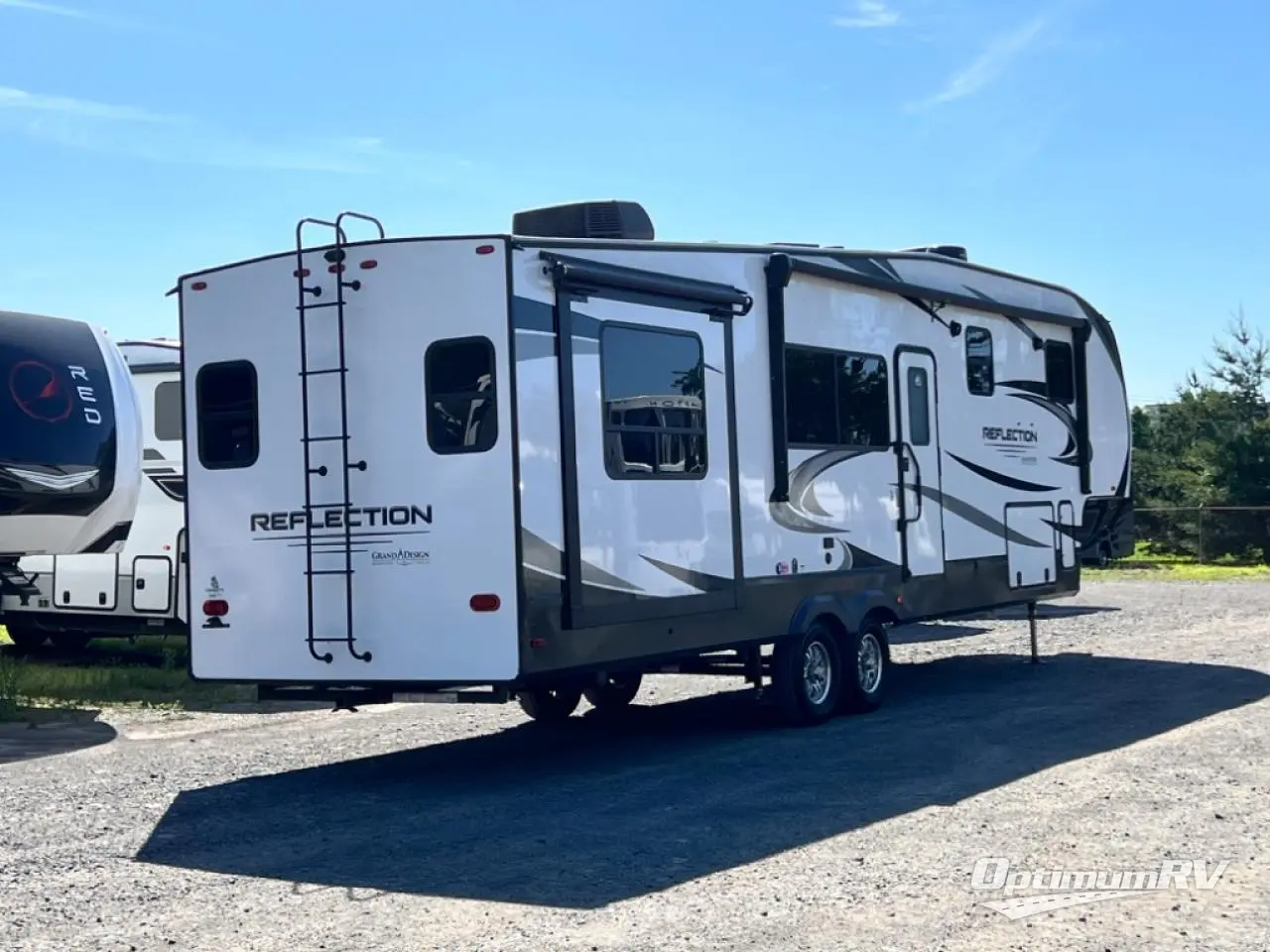 With any Reflection fifth wheels by Grand Design, you will have a 165W solar panel for off-grid camping and a 50 Amp charge controller and inverter prep, a Max Turn radius front cap for easy towing around town and into your campsite, a Universal All-In-One Docking Station, unobstructed pass-through storage, and Goodyear E-rated tires. Some other top features include a chef's kitchen with a 30" stainless steel microwave and residential cooktop, a USB charging station, and the ductless "Evenflow" heating system with no vents in the floor to collect debris. Each is constructed of high gloss gel coat exterior sidewalls, residential 5" truss rafters, walk-on roof decking, a fiberglass and radiant foil roof and front cap insulation plus laminated aluminum framed side walls, rear wall, roof and end walls in slide rooms. Choose luxury, value and towability over all the others, take home a Reflection of your good taste!