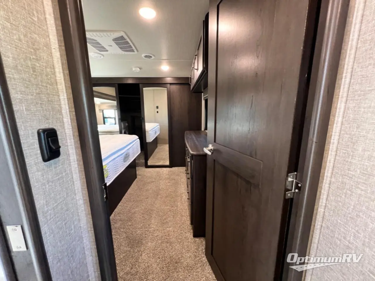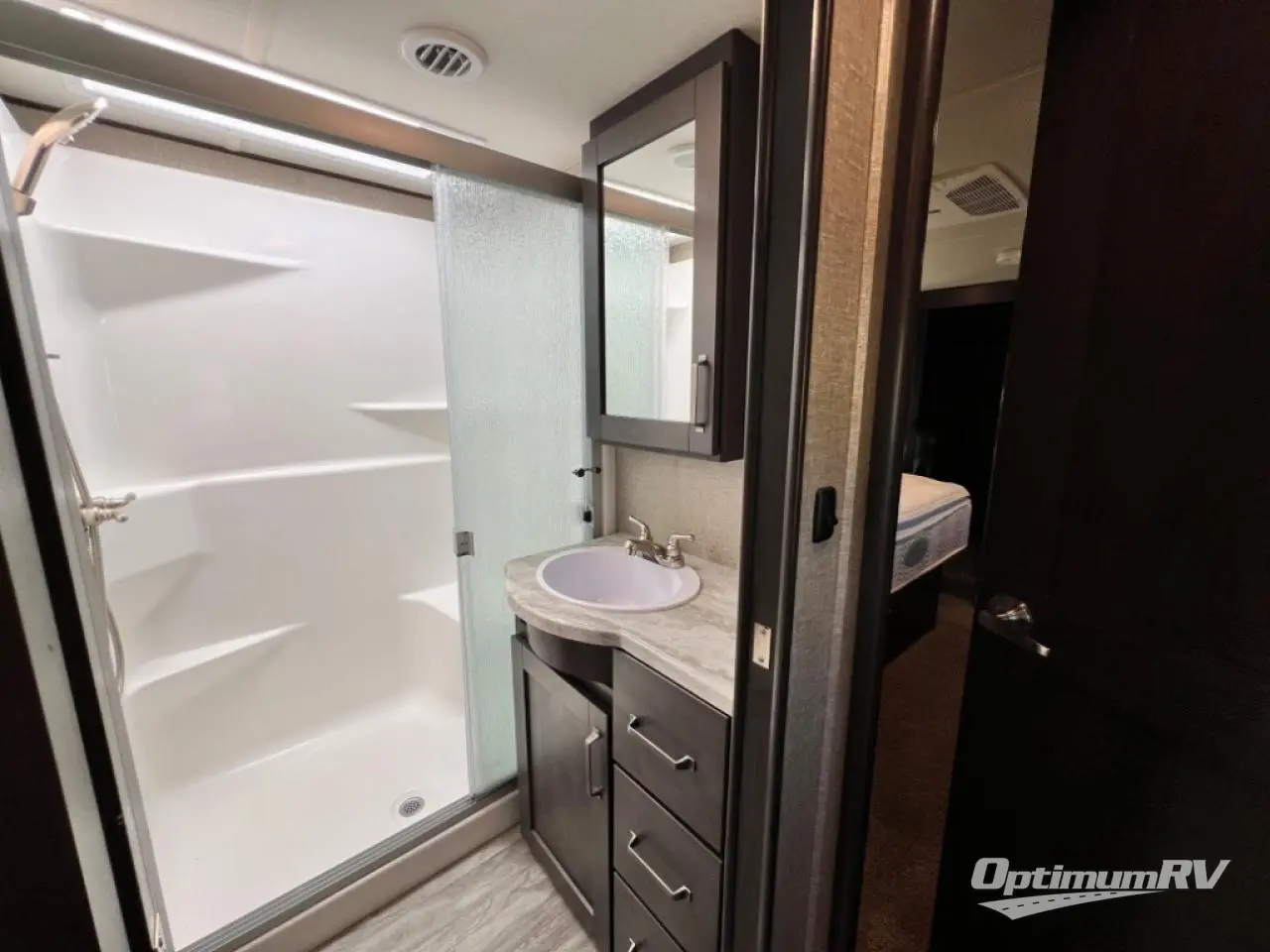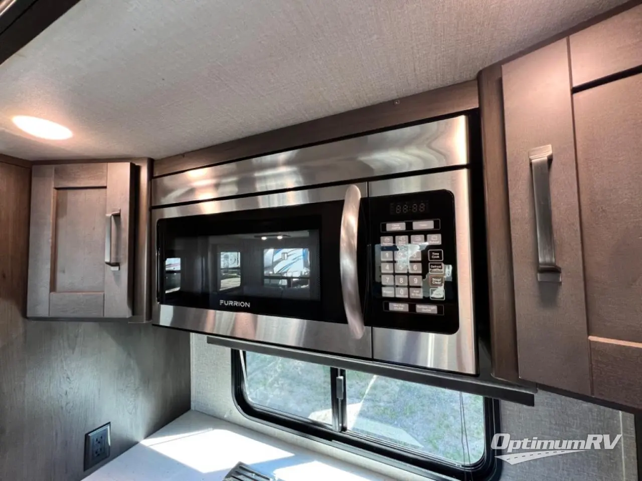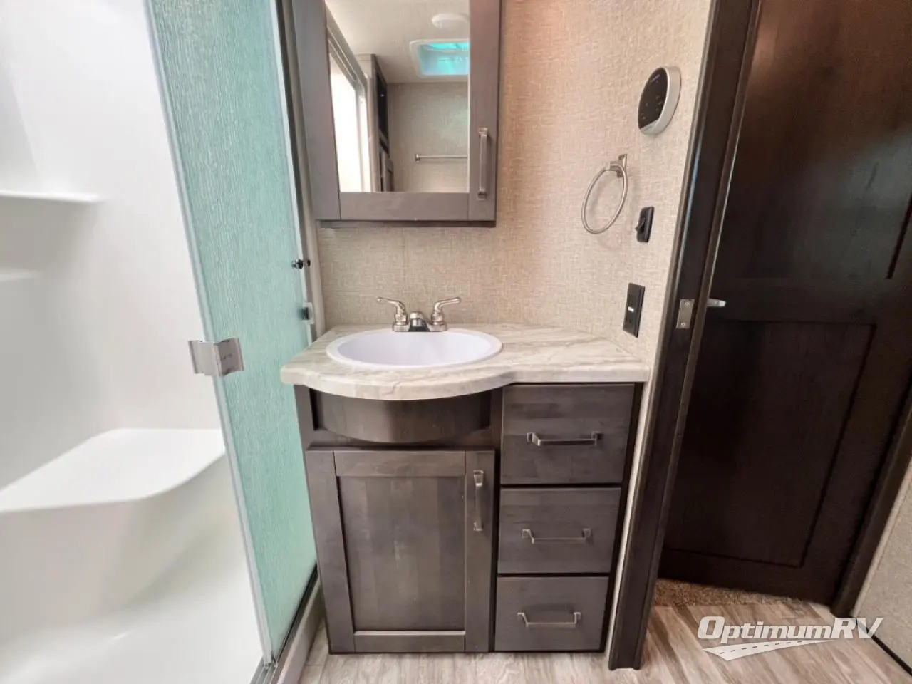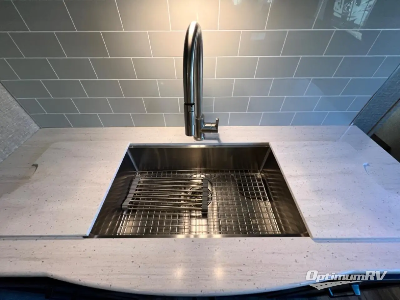 Looking for a separate living area from the kitchen in your next RV? Do you want to be able to entertain while camping? Well this fifth wheel has what you want, plus much more! The rear living area has two opposing tri-fold sofas, and theatre seating directly across from the rear entertainment center with a 50" LED HDTV and a 48" fireplace below it, plus windows and storage. The middle kitchen area offers the cook a large pantry, a 16 cu. ft. refrigerator, and extra counter space around the deep seated stainless steel sink. And there is a free standing adjustable dinette with a storage ottoman and more counter space nearby giving you a place for your things while dining, playing game or even working. The full bathroom can be accessed from the hallway that leads to the front bedroom which offers a queen bed slide or choose a king option, a dresser with window above, plus a full wall wardrobe with a place to add a washer/dryer option to keep everything clean while away.