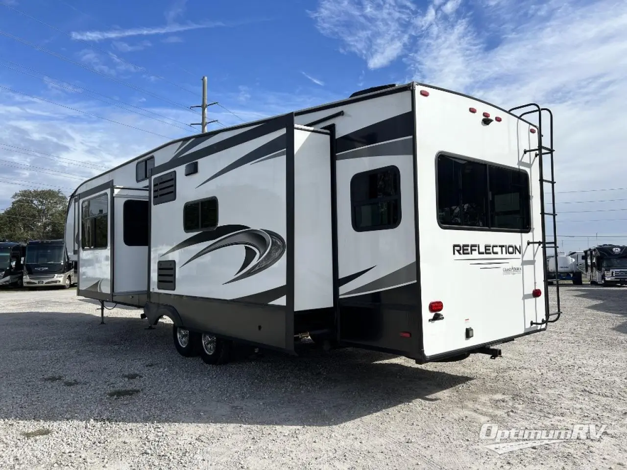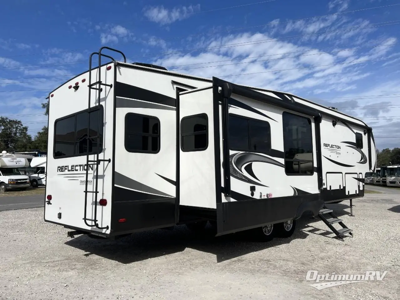 With any Reflection fifth wheels by Grand Design, you will have a 165W solar panel for off-grid camping and a 50 Amp charge controller and inverter prep, a Max Turn radius front cap for easy towing around town and into your campsite, a Universal All-In-One Docking Station, unobstructed pass-through storage, and Goodyear E-rated tires. Some other top features include a chef's kitchen with a 30" stainless steel microwave and residential cooktop, a USB charging station, and the ductless "Evenflow" heating system with no vents in the floor to collect debris. Each is constructed of high gloss gel coat exterior sidewalls, residential 5" truss rafters, walk-on roof decking, a fiberglass and radiant foil roof and front cap insulation plus laminated aluminum framed side walls, rear wall, roof and end walls in slide rooms. Choose luxury, value and towability over all the others, take home a Reflection of your good taste!
