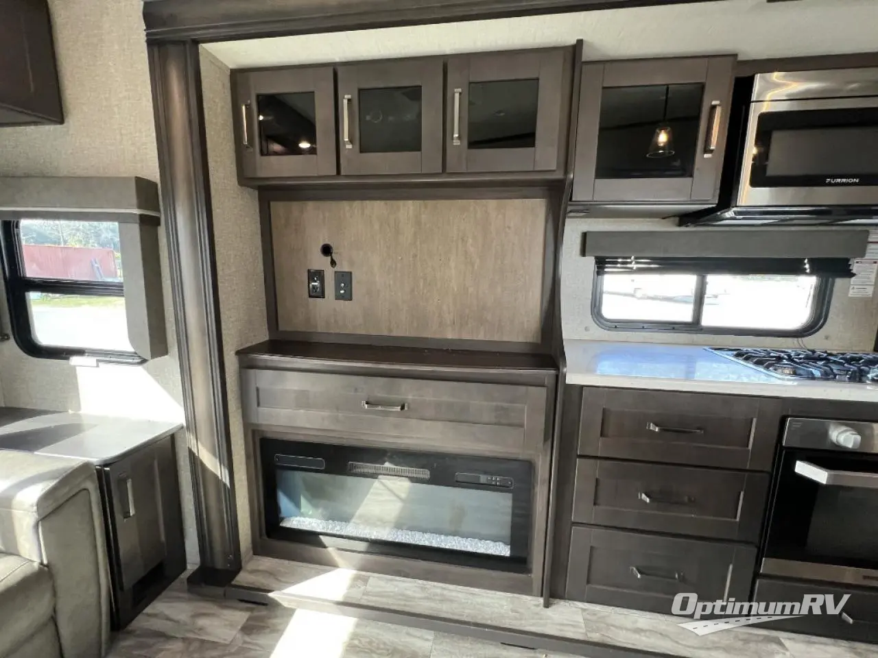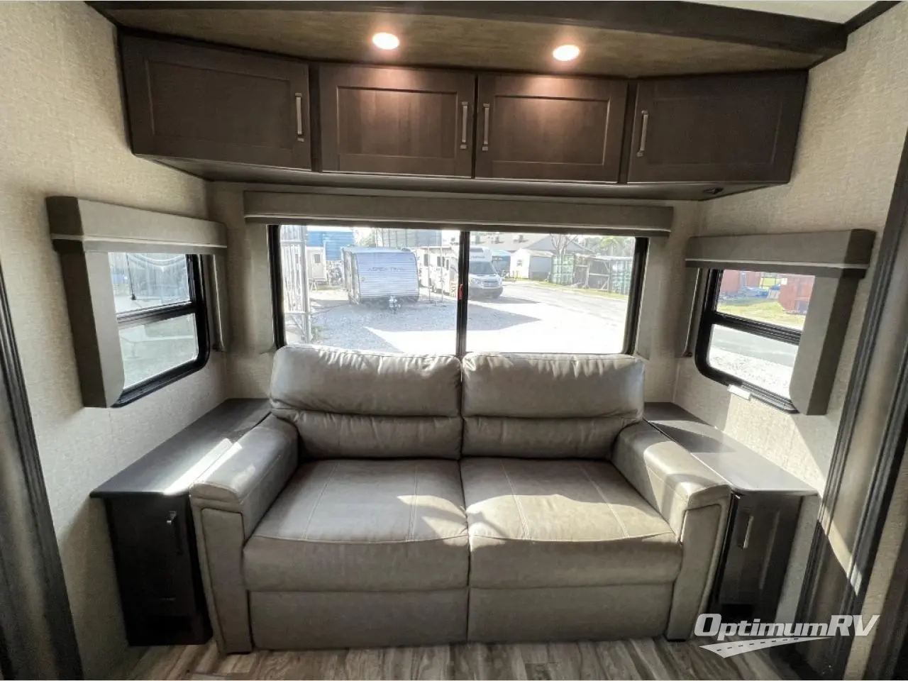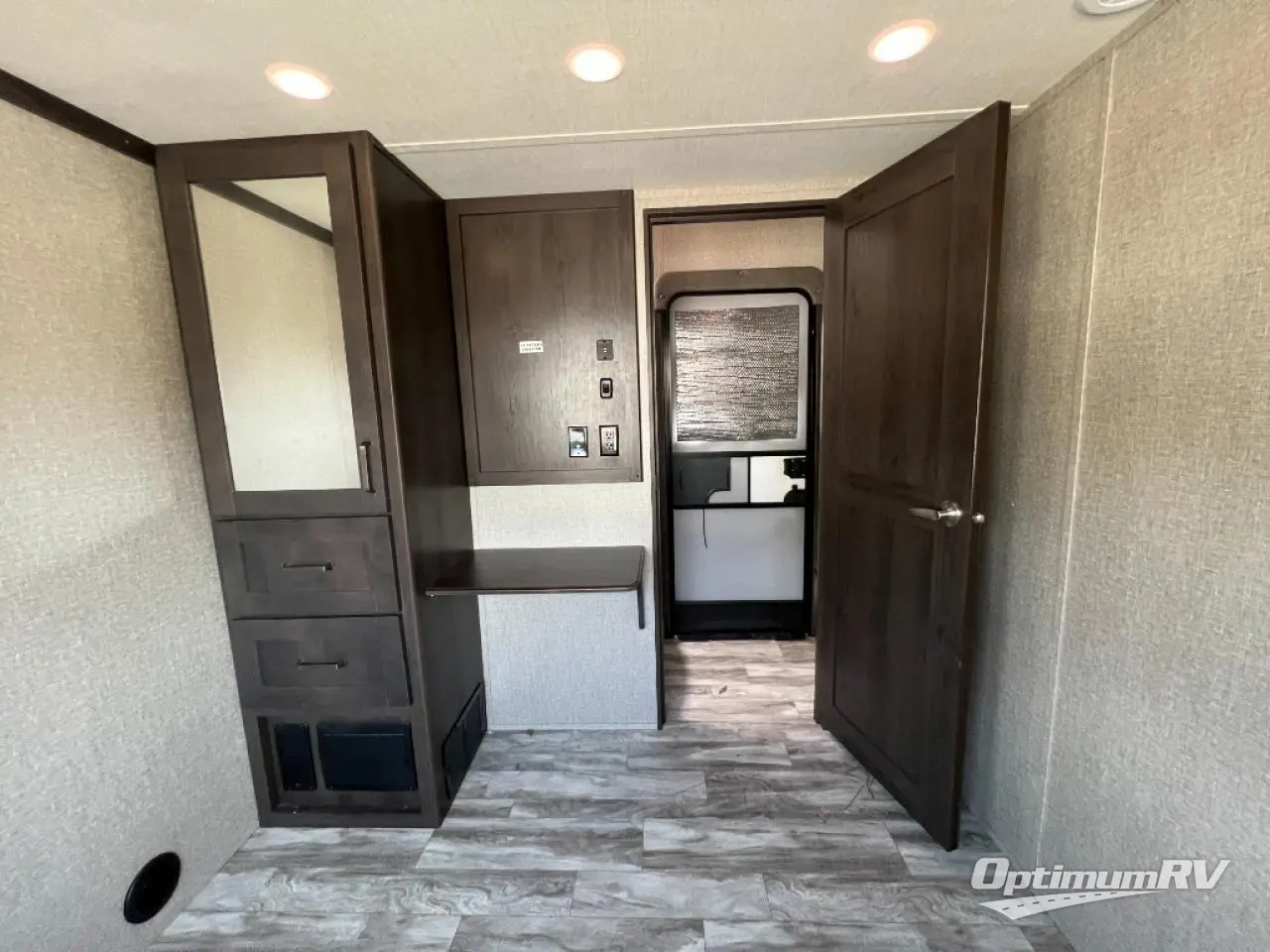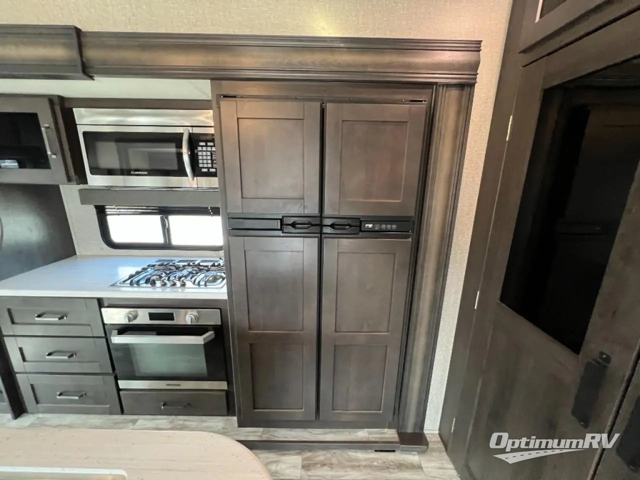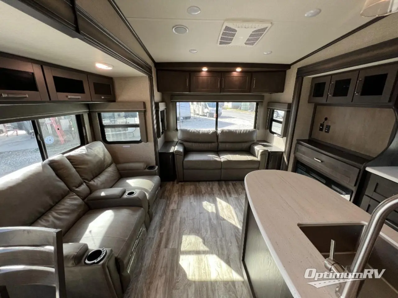 Travel to see new state parks, RV resorts or your family in other states as you tow this fifth wheel to each destination to enjoy comfort and convenience, plus a place to work and be able to offer extra sleeping space for friends and family when they visit! The middle extra room provides a tri-fold sofa slide, a desk, a wardrobe, plus a 64" x 88" upper bed loft area with access from the hallway, which provides two different places to accommodate overnight guests. The full bathroom will keep everyone refreshed, and the front bedroom allows you to sleep on a queen bed slide or choose the king option. And you will love the front wardrobe, the dresser, and the option to add a washer/dryer. The main living and kitchen area provides plenty of seating from the rear tri-fold sofa, the booth dinette or choose the free standing dinette option, and the theatre seats with cupholders. And the kitchen island, the appliances, and the large pantry allow you to take everything you need with you.