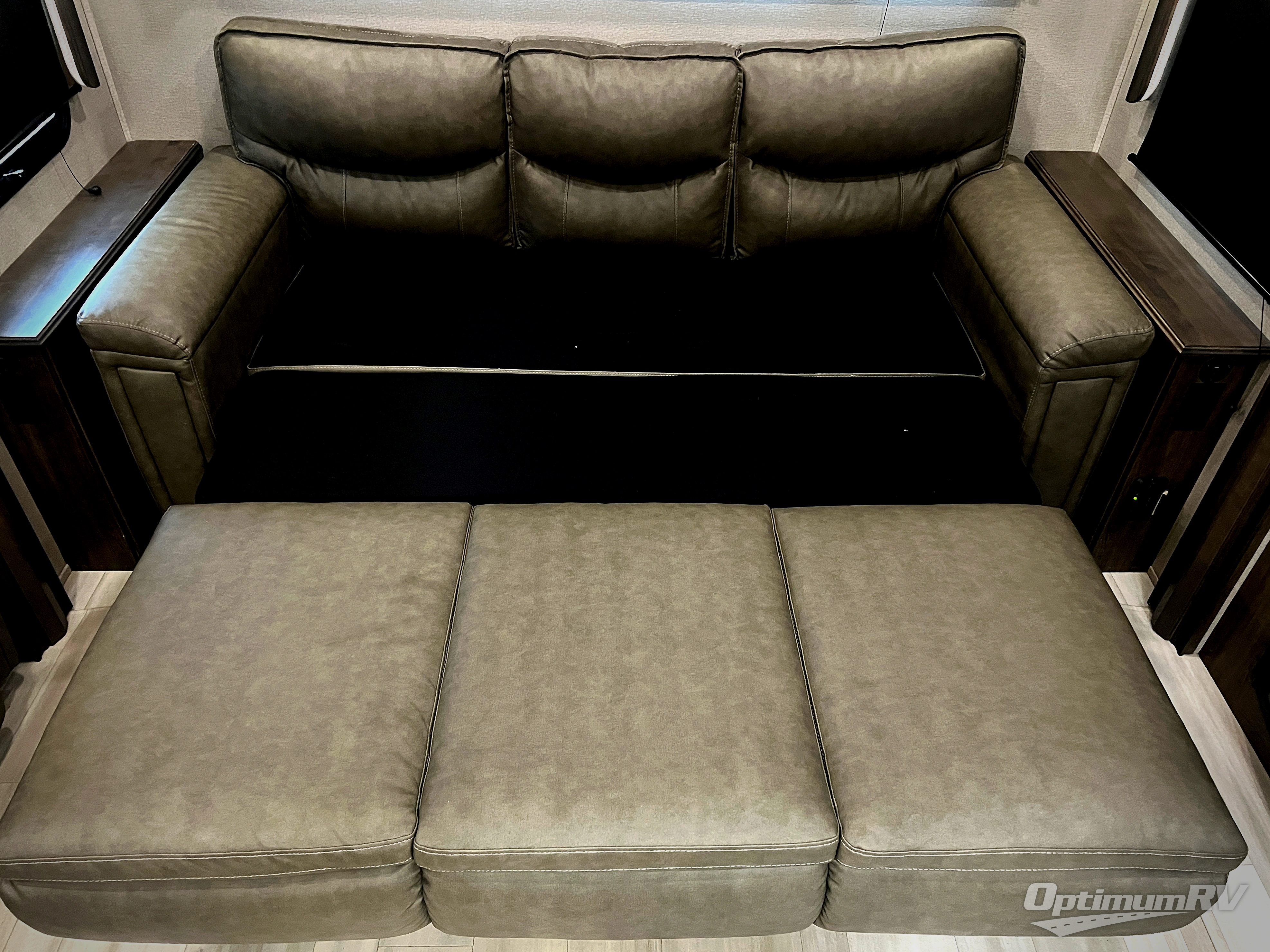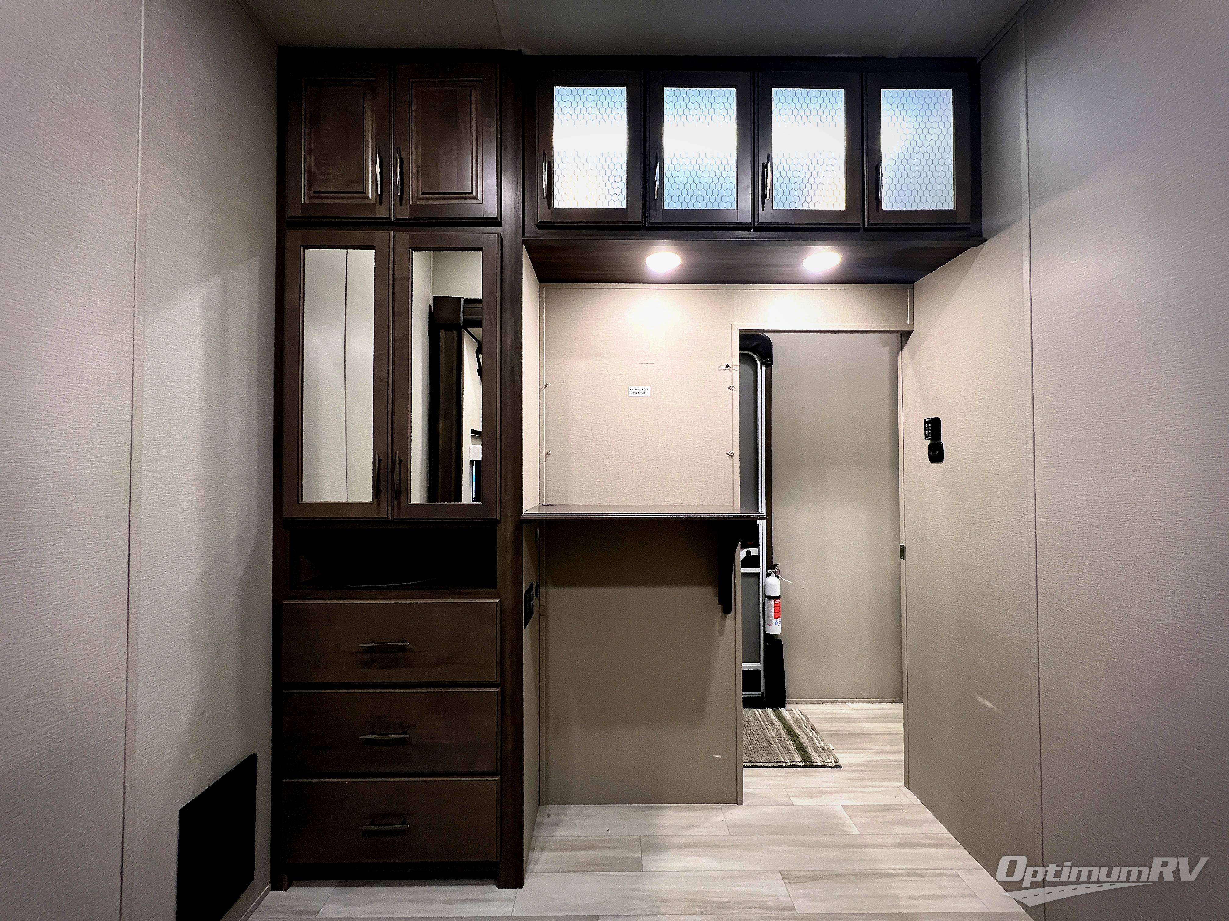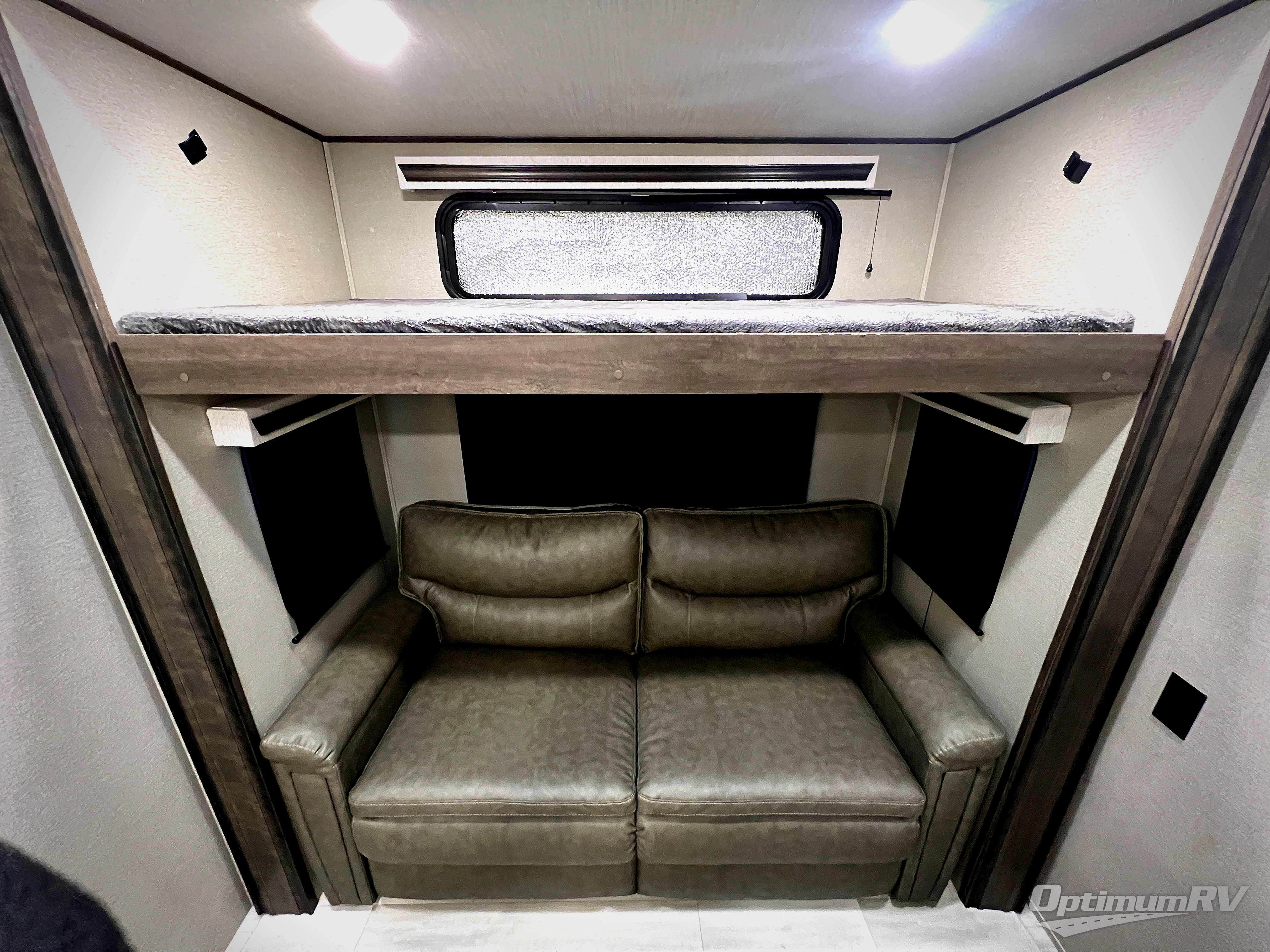Looking for an extra room to utilize many ways in your next extended stay RV? Well you have found it in this middle bunkhouse with a fold down bunk above a tri-fold sofa that offers seating for an extra living room as well as sleeping space for a bedroom, plus there is a desk to work from and a closet for clothing and supplies making this room multi-functional. You can then retreat to your own master bedroom with a queen bed slide or choose the king option, a pull-out ottoman giving you a place to sit while taking off your shoes, an LED TV as well as a space prepped for a washer/dryer option. The main living and kitchen area is spacious with dual opposing slides and offers theatre seating and a tri-fold sofa to relax on while watching the LED Smart TV and visiting with the cook in the kitchen that offers a kitchen island, a 24" residential oven, and an oversized pantry to store lots of dry goods and snacks. You will surely enjoy the two power awnings and the outside grill plus beverage cooler while relaxing outdoors.