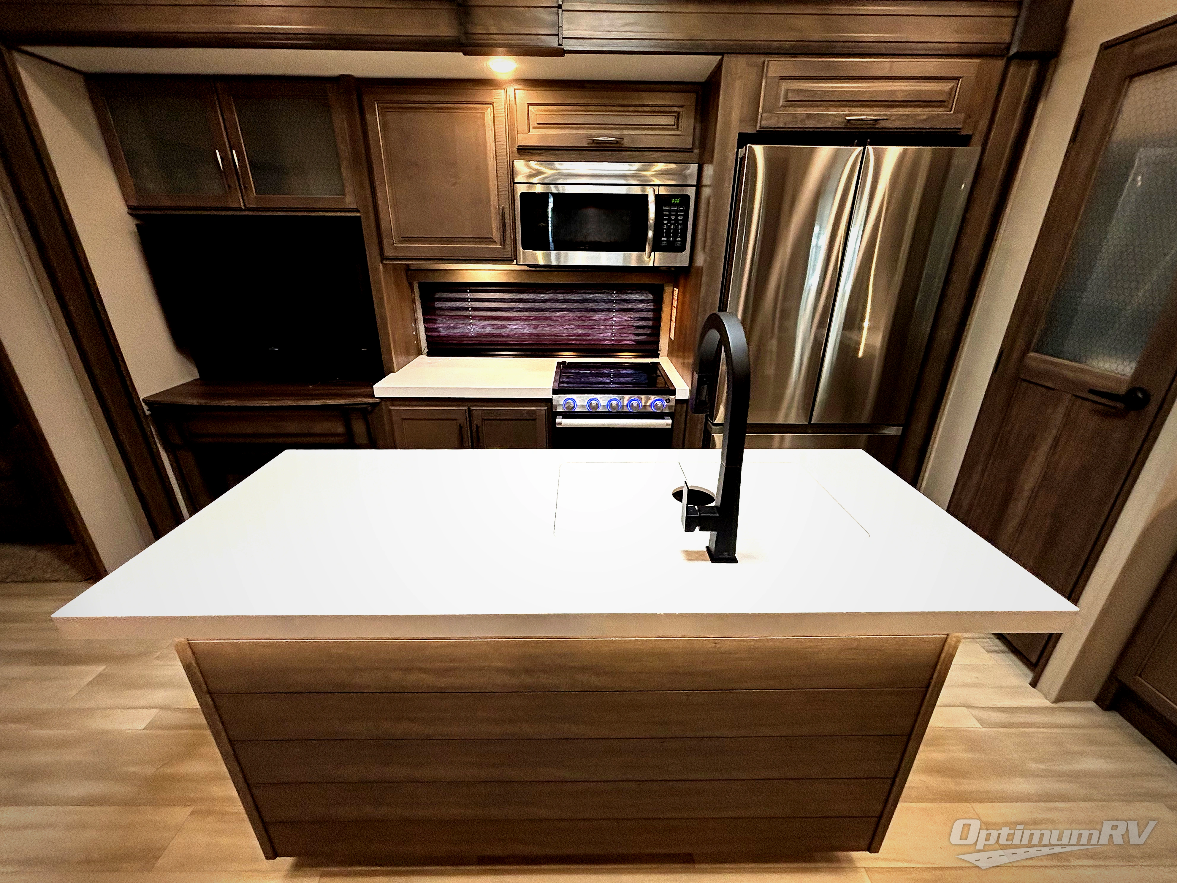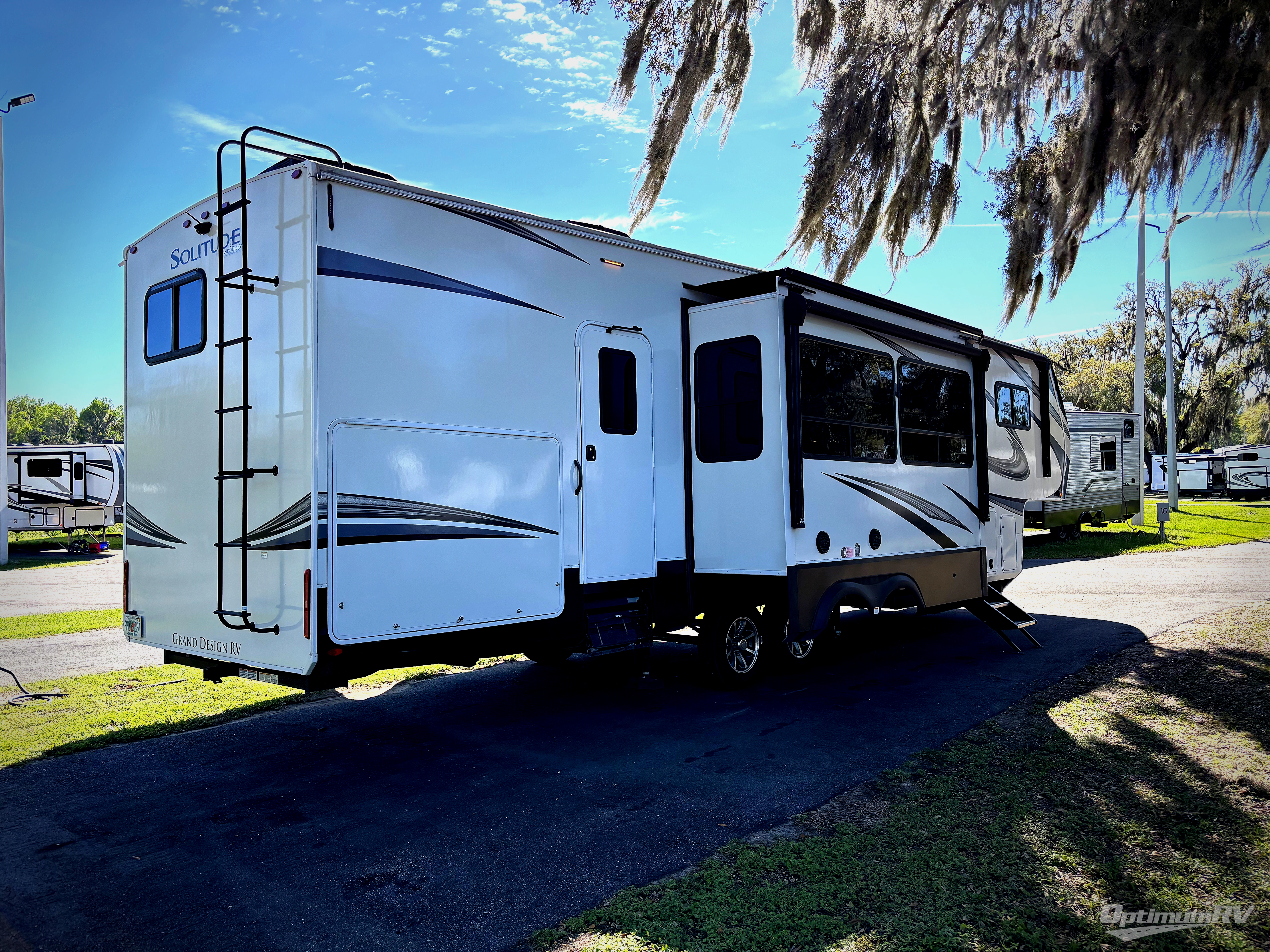 With any Solitude S-Class fifth wheel by Grand Design you will appreciate the Max Built Construction Package that features a 101" wide-body, gel coat exterior sidewalls, heavy-duty 7,000 lb. axles, plus many more durable construction materials. The self-adjusting brakes and the MORryde CRE3000 suspension system will provide a smooth towing experience, and each model includes heavy duty 17.5" H-rated tires with NitroFill. Some of the features you are sure to love are included in the Residential Living Package, like the solid surface countertops and sink covers, the hardwood cabinet doors, the night stands with USB ports, and the Rockford Fosgate stereo entertainment system with HDMI and App controls. These fifth wheels are extended-stay approved thanks to the Weather-Tek Package with a 35,000 BTU high-capacity furnace, the Stealth A/C system, and many high-end residential finishes to make you feel like you taken home with you!