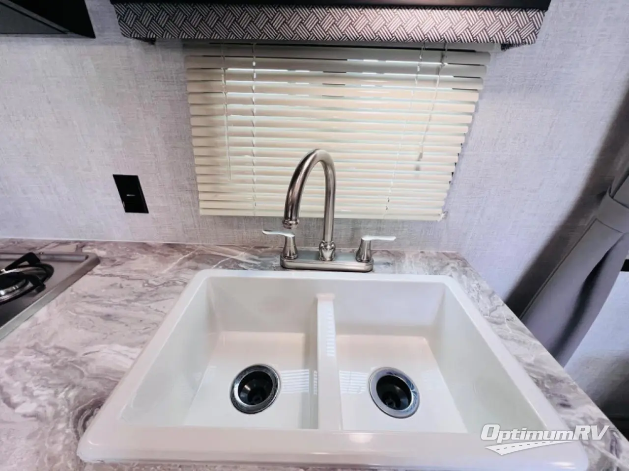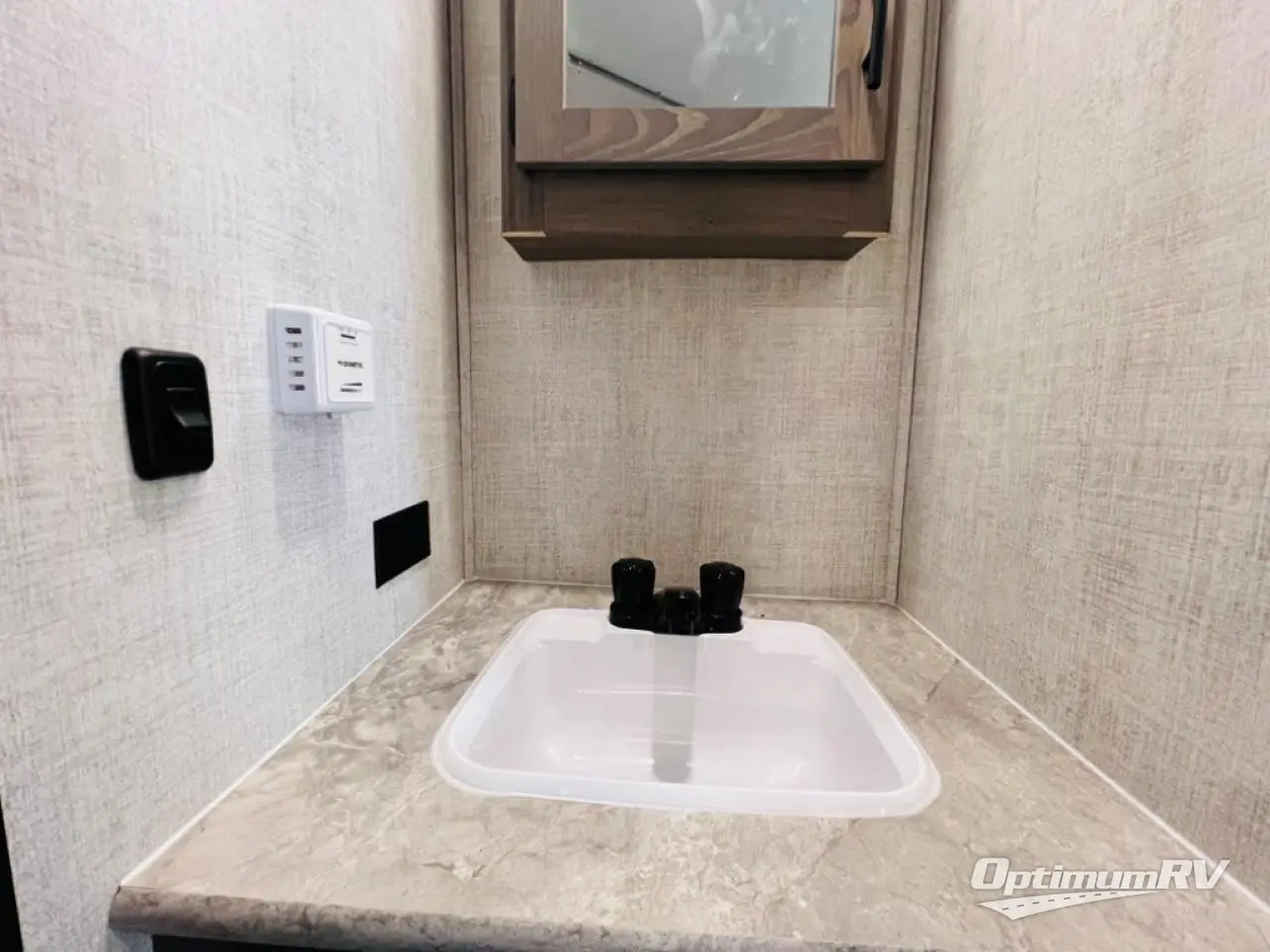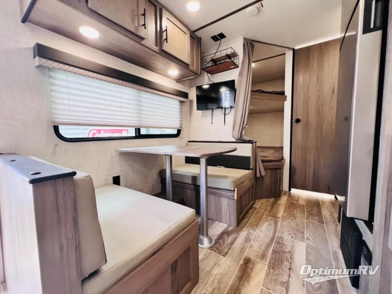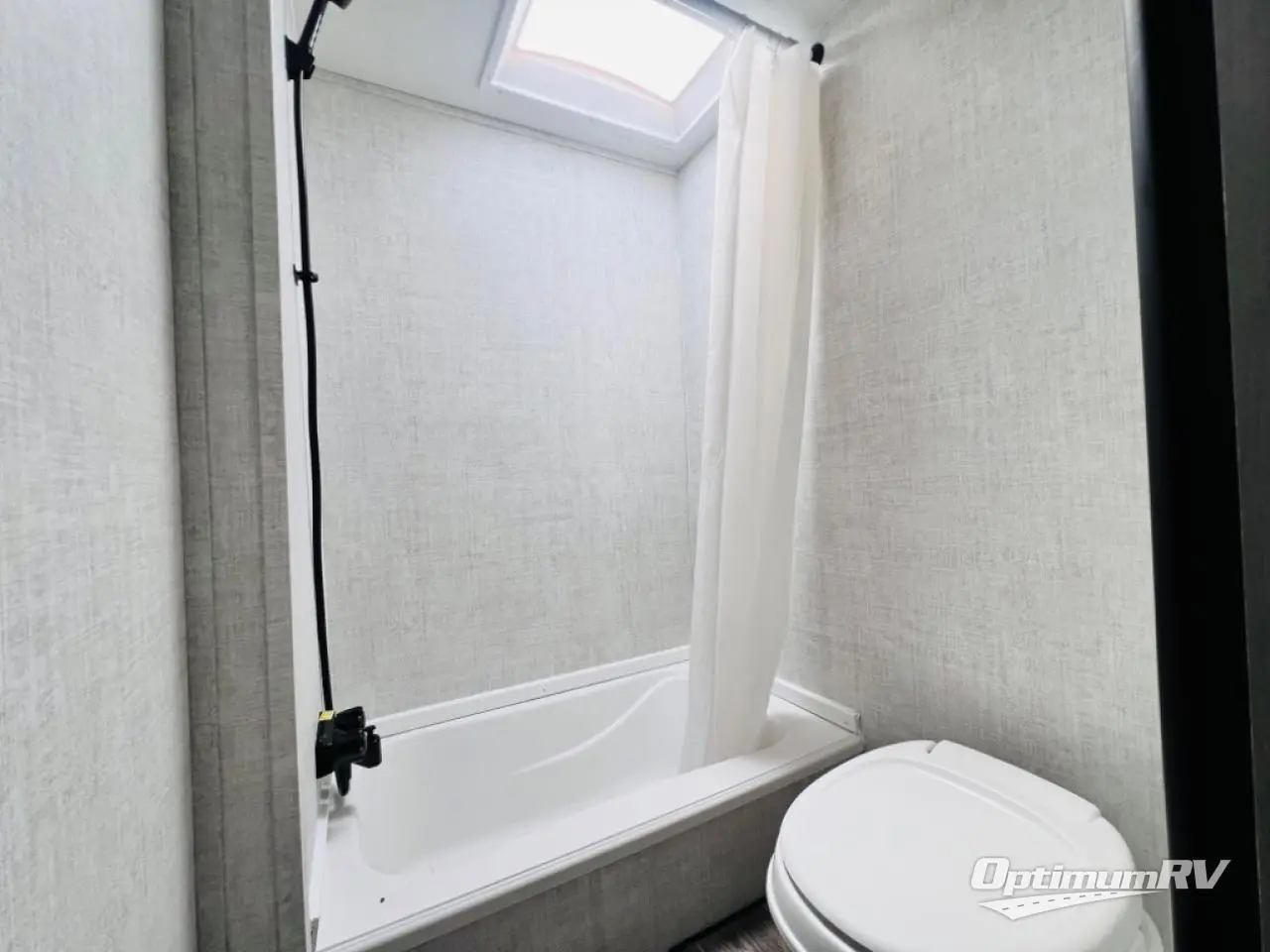 This semi-private front bedroom travel trailer allows you to change in privacy when you close the curtain and sleep on a queen-size bed or choose the optional Murphy bed/sofa for versatility. You will find your own wardrobe and a handy shelf at the head of the bed for your belongings. Your friends or kids will loving sleeping on the double-size bunks in the rear next to the private toilet and tub/shower room. The bathroom sink is just outside the door which is handy when two people need to get ready at once. And the cook will have full amenities, plus a pantry, and overhead storage for all the dishes, pots, and spices.