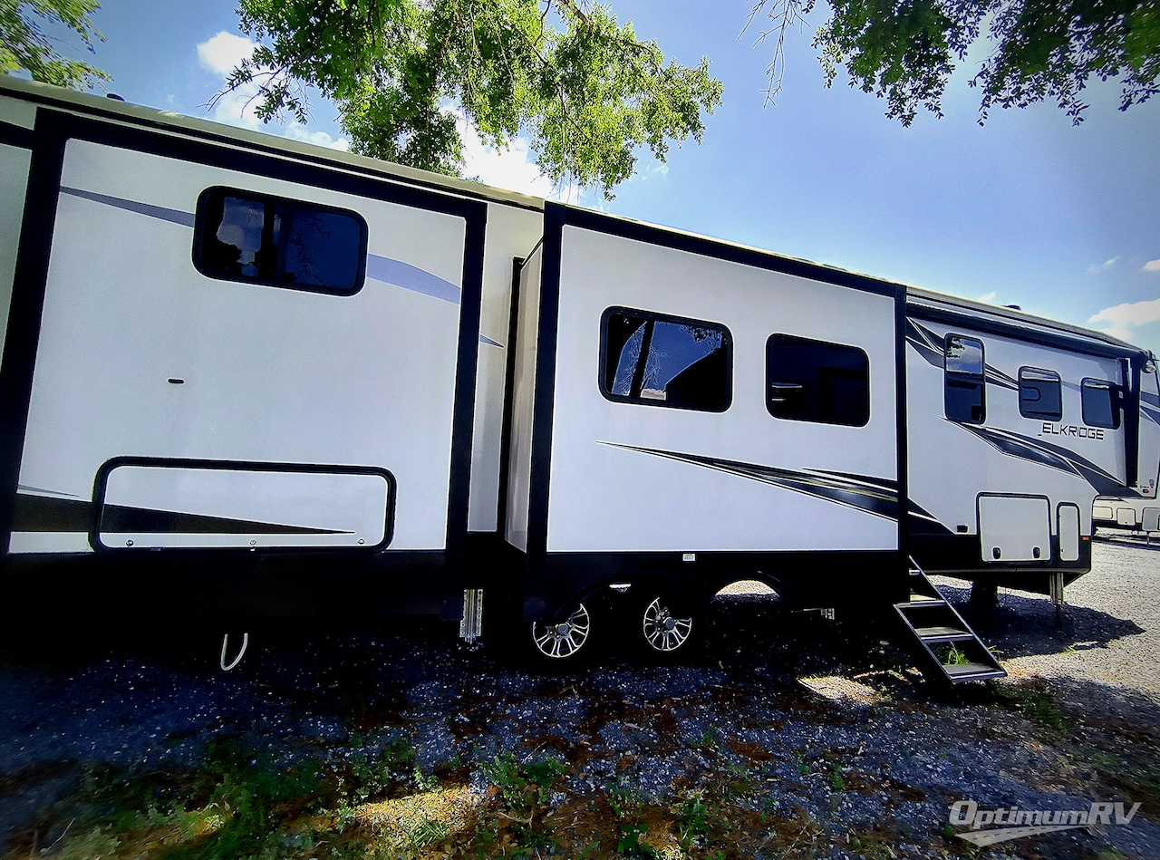 Come see how every one of these Heartland ElkRidge fifth wheels go the extra mile! They are built durable with double layer Azdel composite panels, TPO roofing materior with 4" aluminum wrapped edge, and a 10" powder coated steel I-beam frame. With the six point hydraulic level-up and one touch auto level capabilities, you can set your unit up 50% faster than with the electric levelers. You will not only have an easier tow with the double 7,000 lb. Dexter EZ lube axles and MORryde 3000 suspension, but also a more secure ride with the upgraded Rota Flex pin box. The vortex dual ducted A/C system (15K main and 13.5K secondary) is H-ducted for high efficiency output to keep you cool even on the hottest summer days. Enjoy tech friendly features like USB charge ports, wireless charging stations, and Winegard Air+ with satellite and WiFi prep, as well as a master chef kitchen with abundant kitchen storage. Come find the right one for you today!