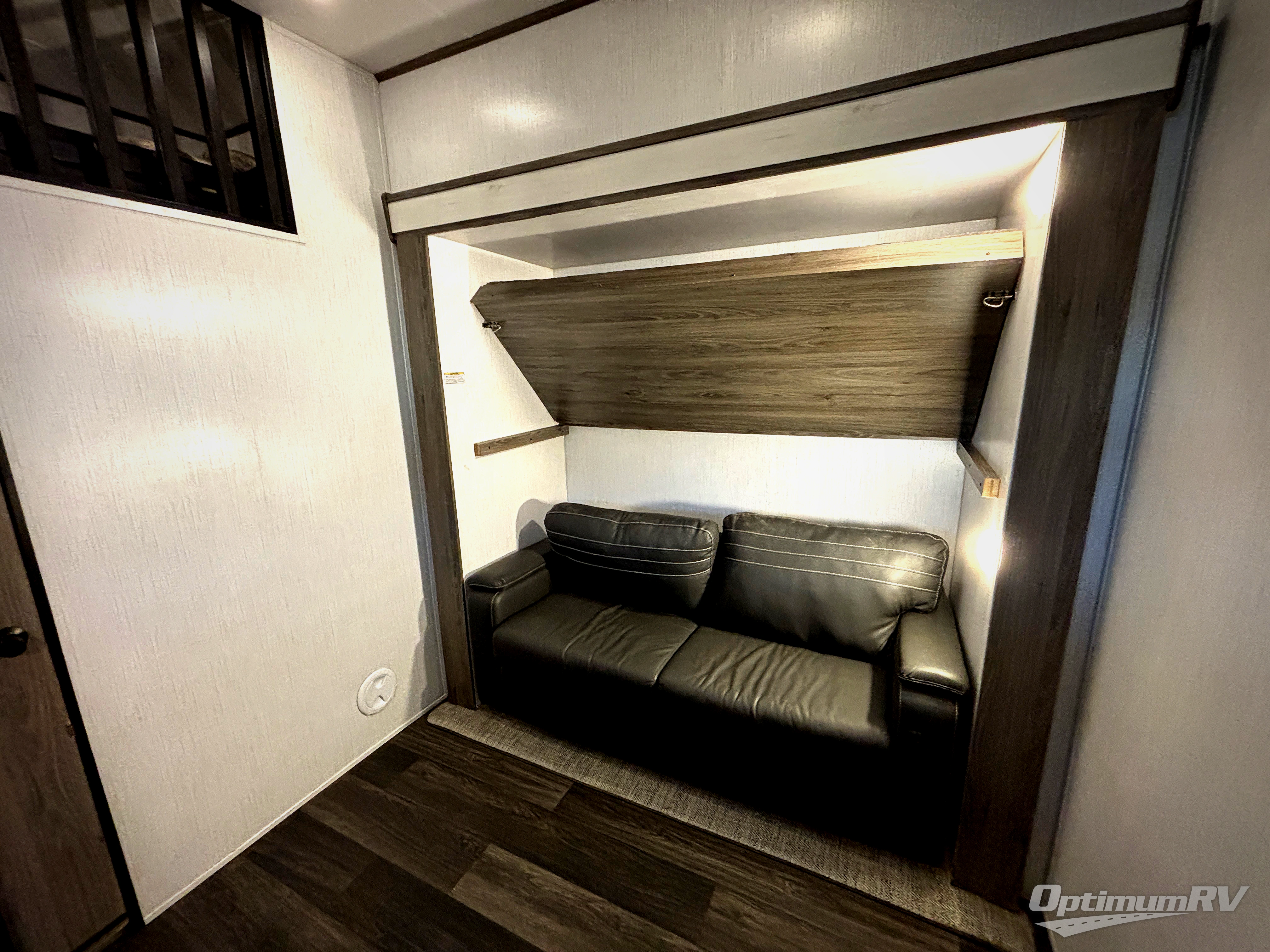 This toy hauler is decked out in features you will love! Starting with the rear entrance that leads directly into the spacious rear private bunkhouse with a sofa slide, a set of bunk beds slide, and a loft above a full bathroom. Everyone's bellies will stay full with the recessed three burner cooktop with oven and the residential French door 14.9 cu. ft. refrigerator with 1000w inverter or you can prepare your delicious home cooked meals while breathing in some fresh air with the outdoor kitchen. Enjoy your meal at the one sided booth dinette then relax on the four person sofa slide by the 40" electric fireplace with accent lighting or freshen up in the second full bathroom which has a shower with a seat. The front private bedroom has a king bed slide to lay your head on at night and a front closet with an area prepped to add an optional washer and dryer!
