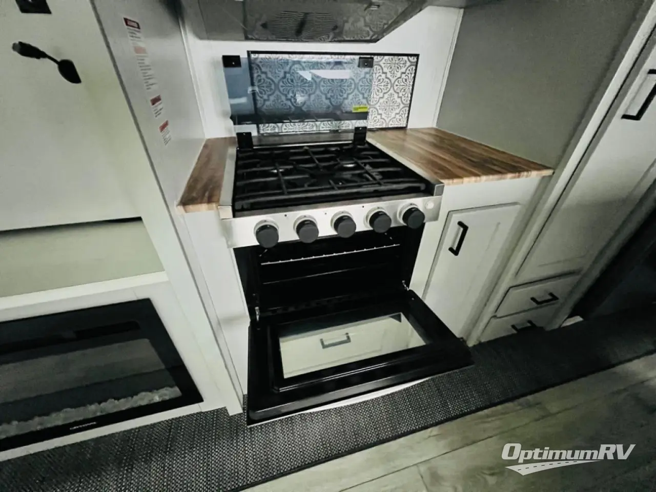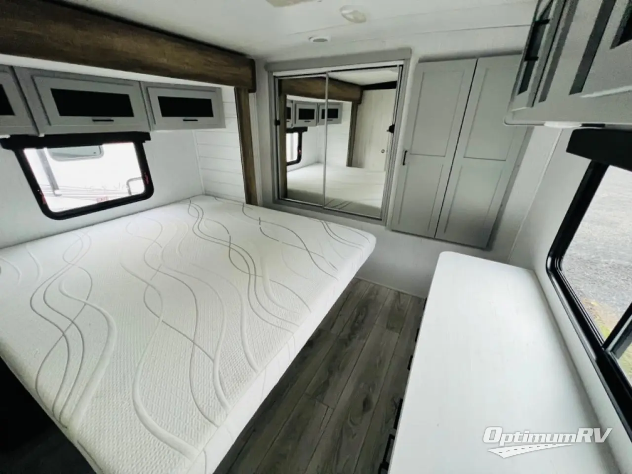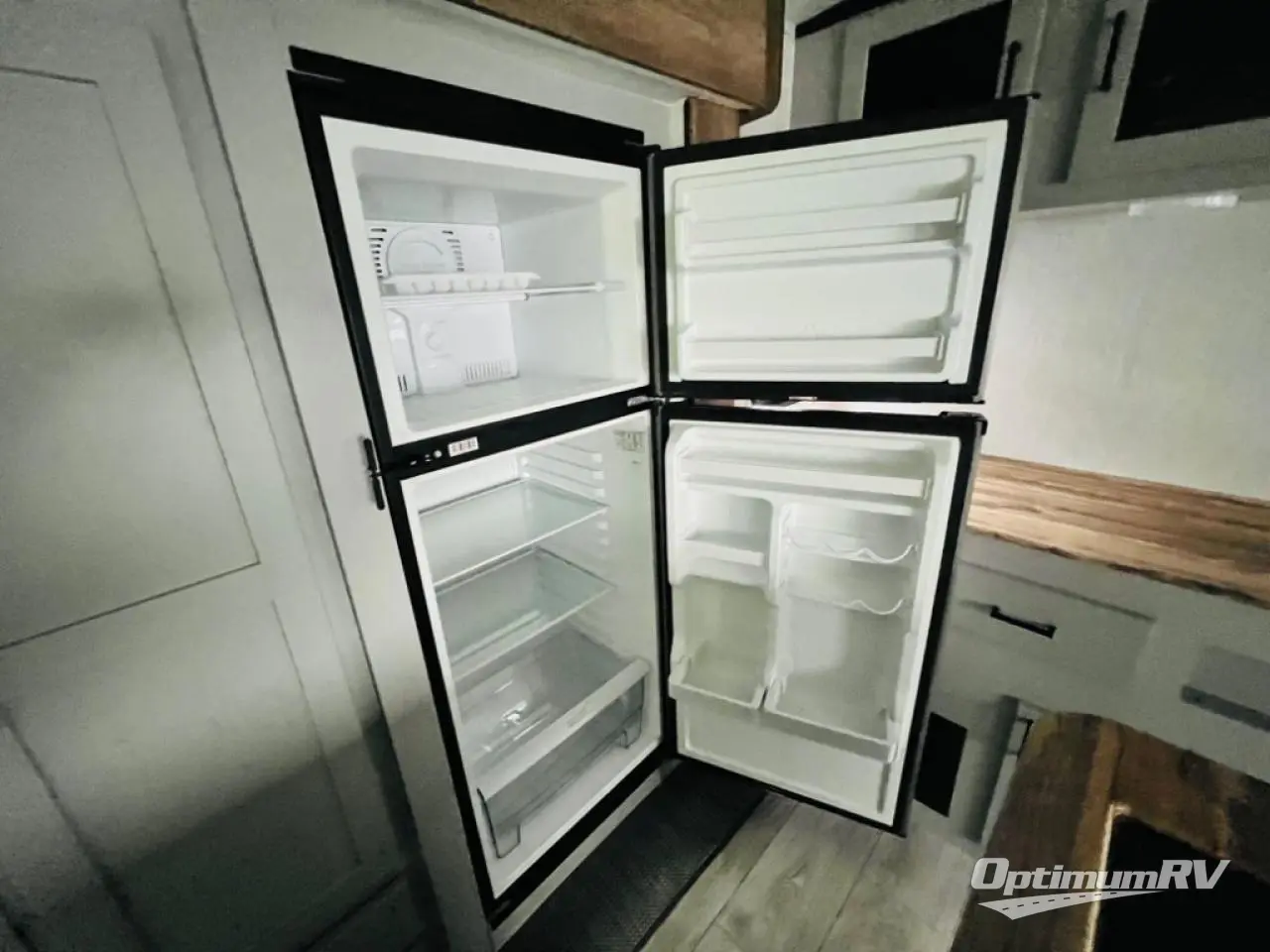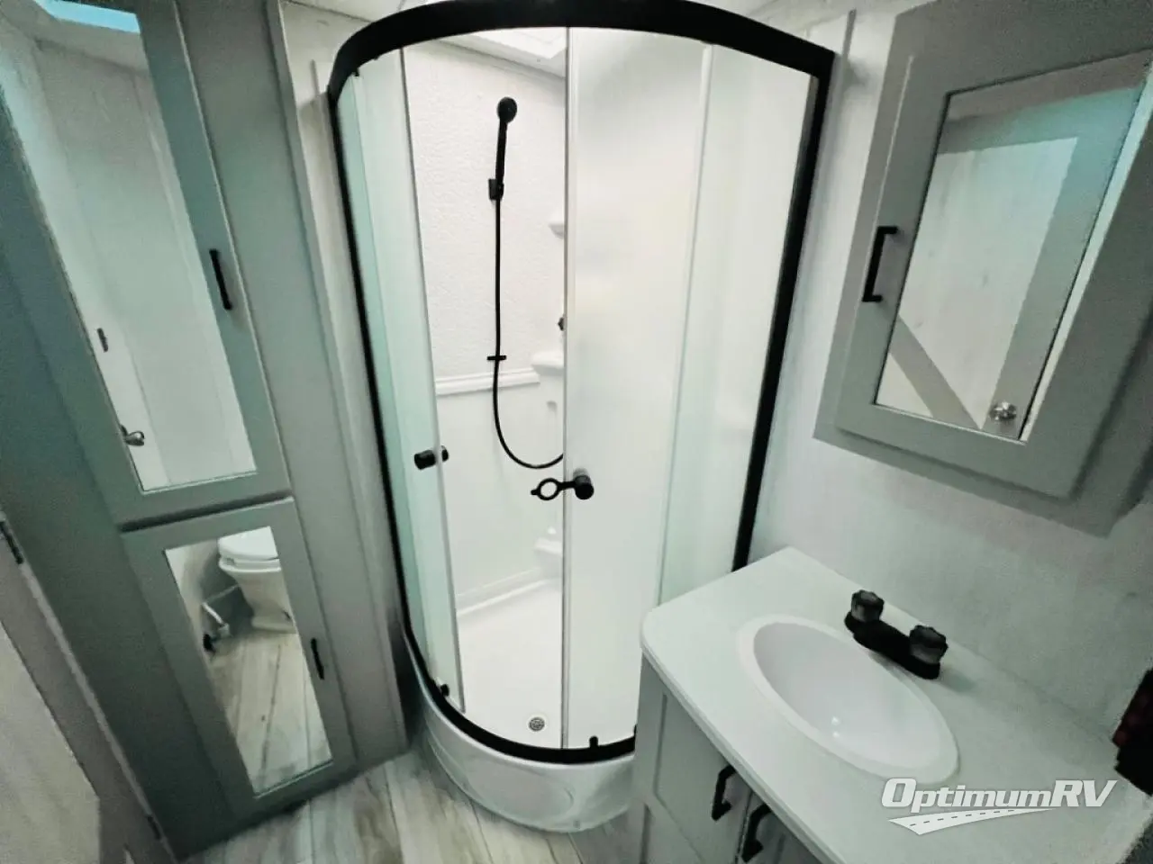 You'll feel right at home in this spacious travel trailer. Once you arrive at your destination, set up the 14' power awning, and enjoy a cold drink before unpacking. The rear living area includes a sofa with end tables, a table with chairs, plus theater seats right across from the entertainment center. The chef of your group will appreciate the extra counter space provided by the kitchen island, plus there is a hutch with even more storage and counter space. Meals can be prepared on the three burner range, and snacks can be stored in the large pantry. This model also includes a dual entry bath that will create a front master bedroom you are sure to love. Here, you'll find a slide out king bed, a dresser with overhead cabinets, plus a walk-in closet that also includes washer and dryer prep. Going full-time has never been easier than in this travel trailer!