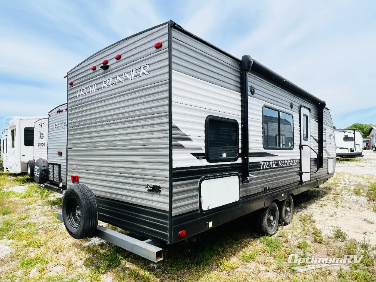 Paradise awaits at the end of the trail with one of these Heartland Trail Runner travel trailers! Experience better wind and water deflection, added strength, and a reduction of tongue weight with the hybrid aluminum front profile that has an aerodynamic radius front cage. A cambered structural steel I-beam frame holds them together and a heated enclosed underbelly protects the units vitals. There is an industry leading mammoth storage space of 57 cu. ft. pass-through storage so you can bring all of your outdoor gear with you. Roller shades in the main living area, woven flooring in all slide rooms, master suites with CPAP storage, and upgraded pressed counters give you the at-home feel you desire. Come find the perfect model for you today!