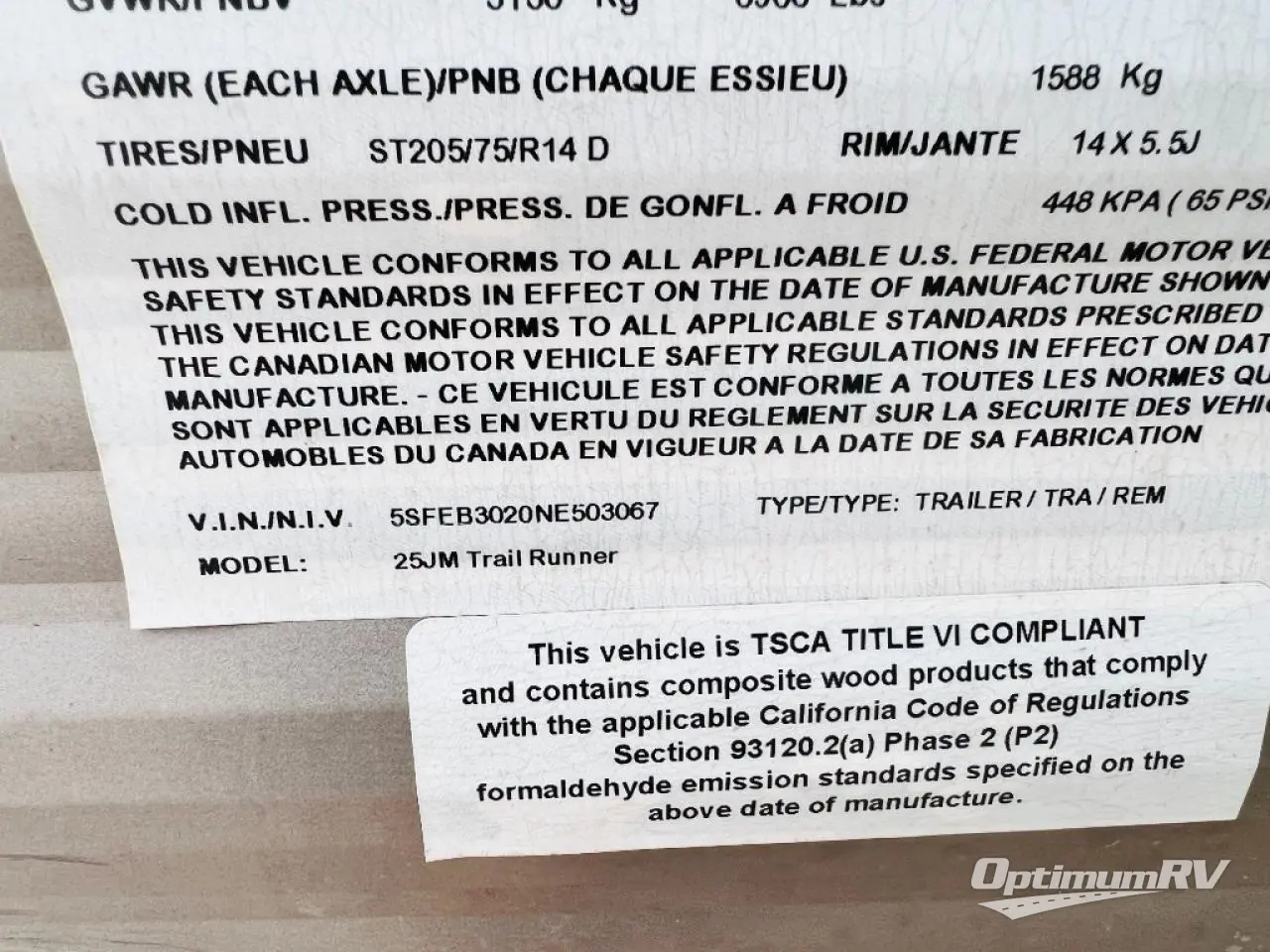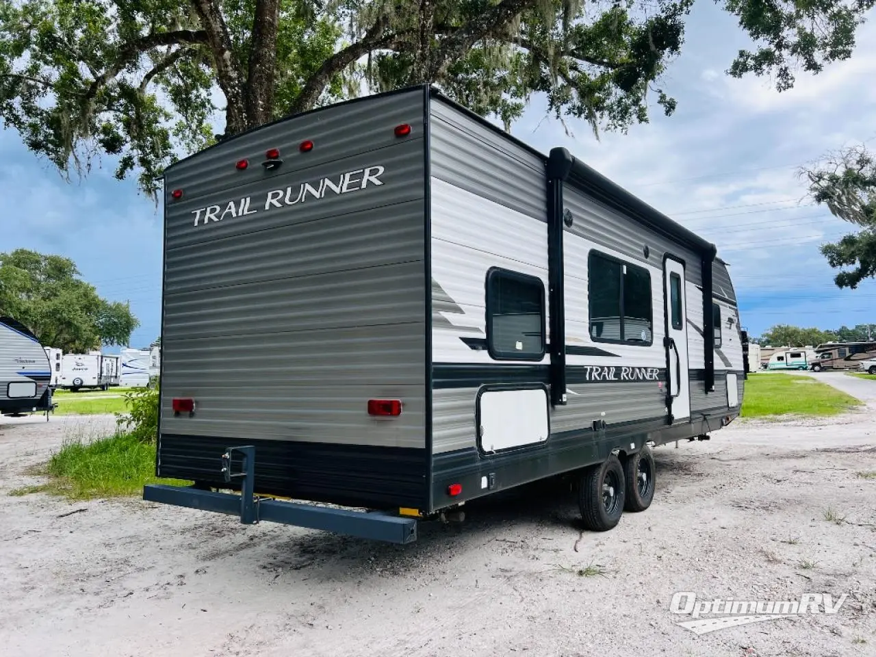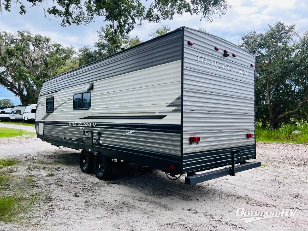 Paradise awaits at the end of the trail with one of these Heartland Trail Runner travel trailers! Experience better wind and water deflection, added strength, and a reduction of tongue weight with the hybrid aluminum front profile that has an aerodynamic radius front cage. A cambered structural steel I-beam frame holds them together and a heated enclosed underbelly protects the units vitals. There is an industry leading mammoth storage space of 57 cu. ft. pass-through storage so you can bring all of your outdoor gear with you. Roller shades in the main living area, woven flooring in all slide rooms, master suites with CPAP storage, and upgraded pressed counters give you the at-home feel you desire. Come find the perfect model for you today!