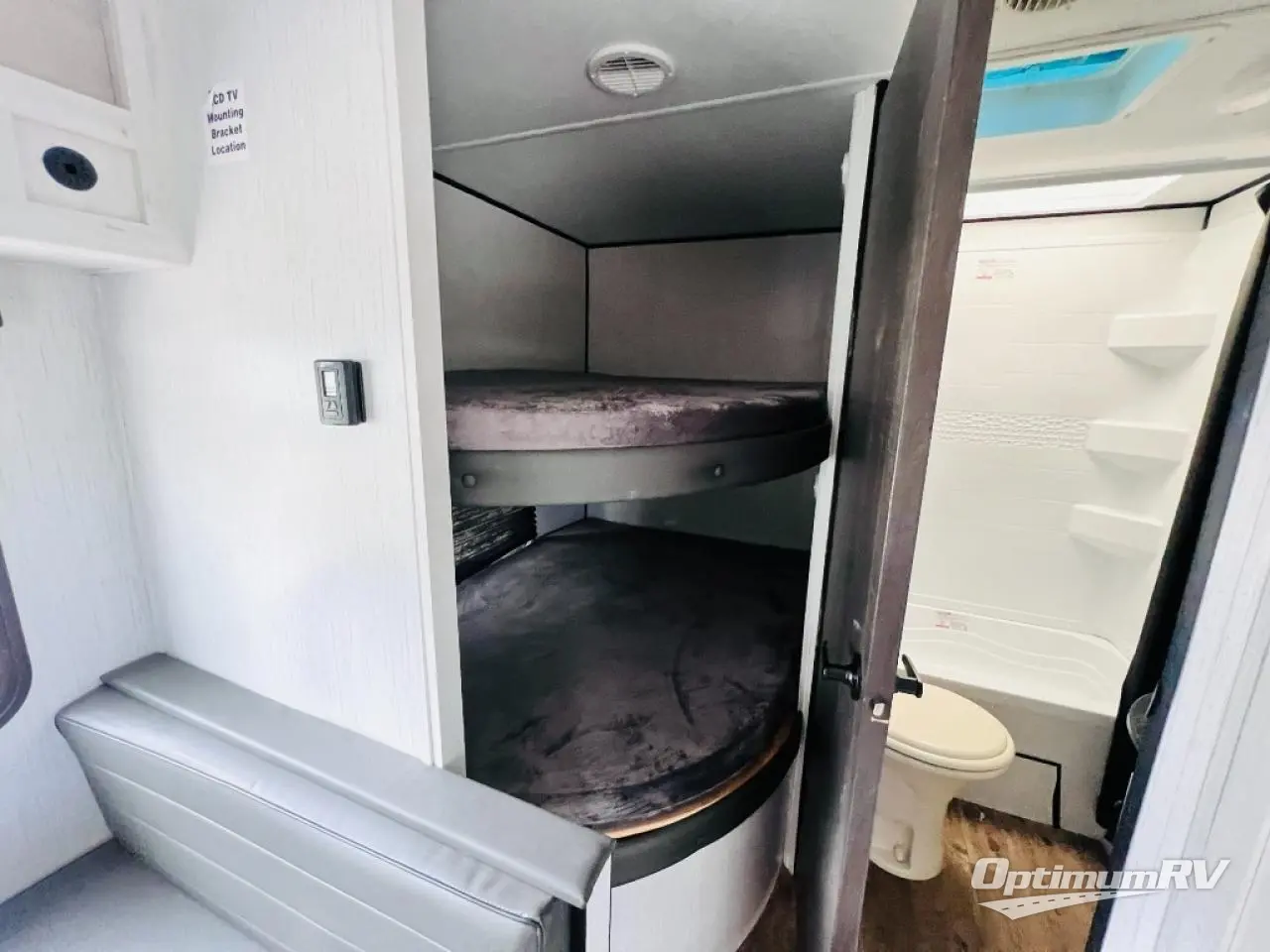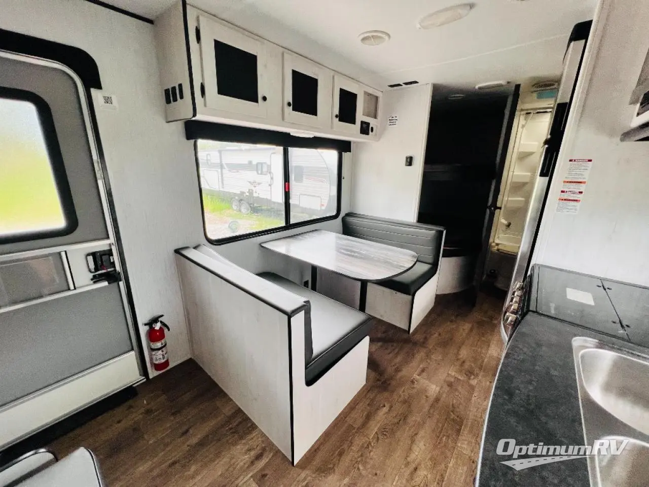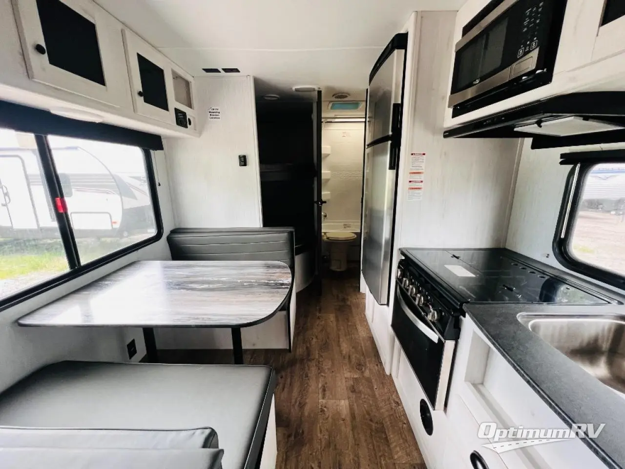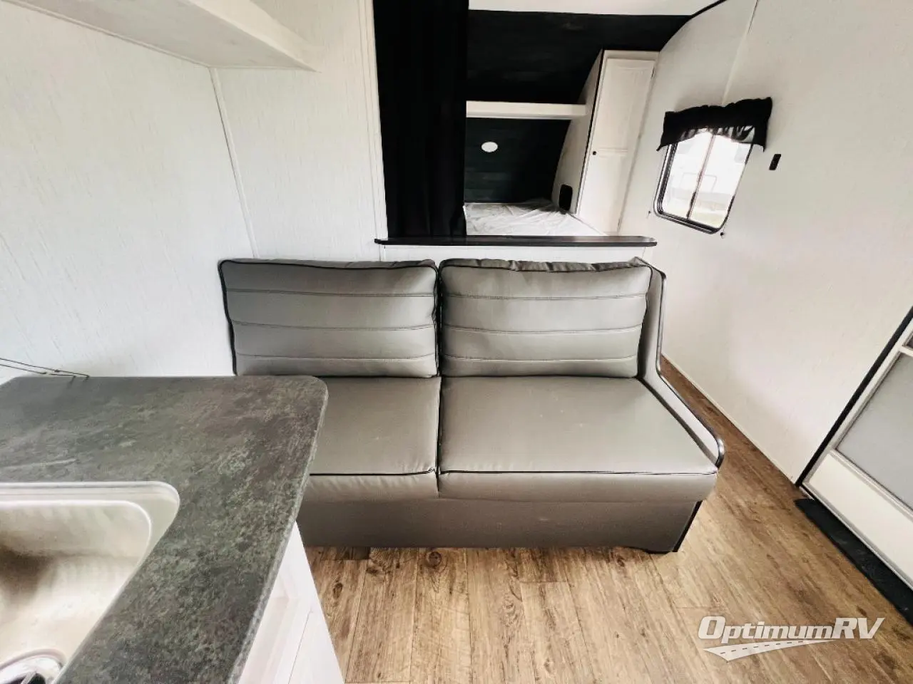 The whole family will love camping in this travel trailer! It has everything you need from a set of double bunk beds to a 14' power awning with LED light strip and outside shower. The front queen bed has under-bed storage to keep extra blankets or suitcases out of the way. After getting a good night's rest, head to the rear corner bathroom to freshen up in the ABS tub/shower surround with skylight above and then fry some eggs up on the three burner cooktop. You can enjoy your meals at the booth dinette and even convert it into an extra sleeping space, plus there is a sofa to take an afternoon nap!