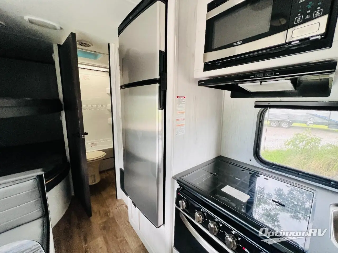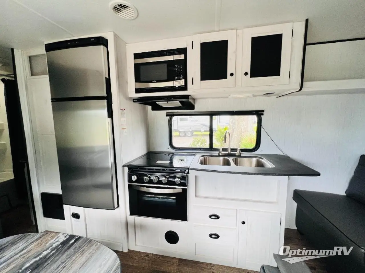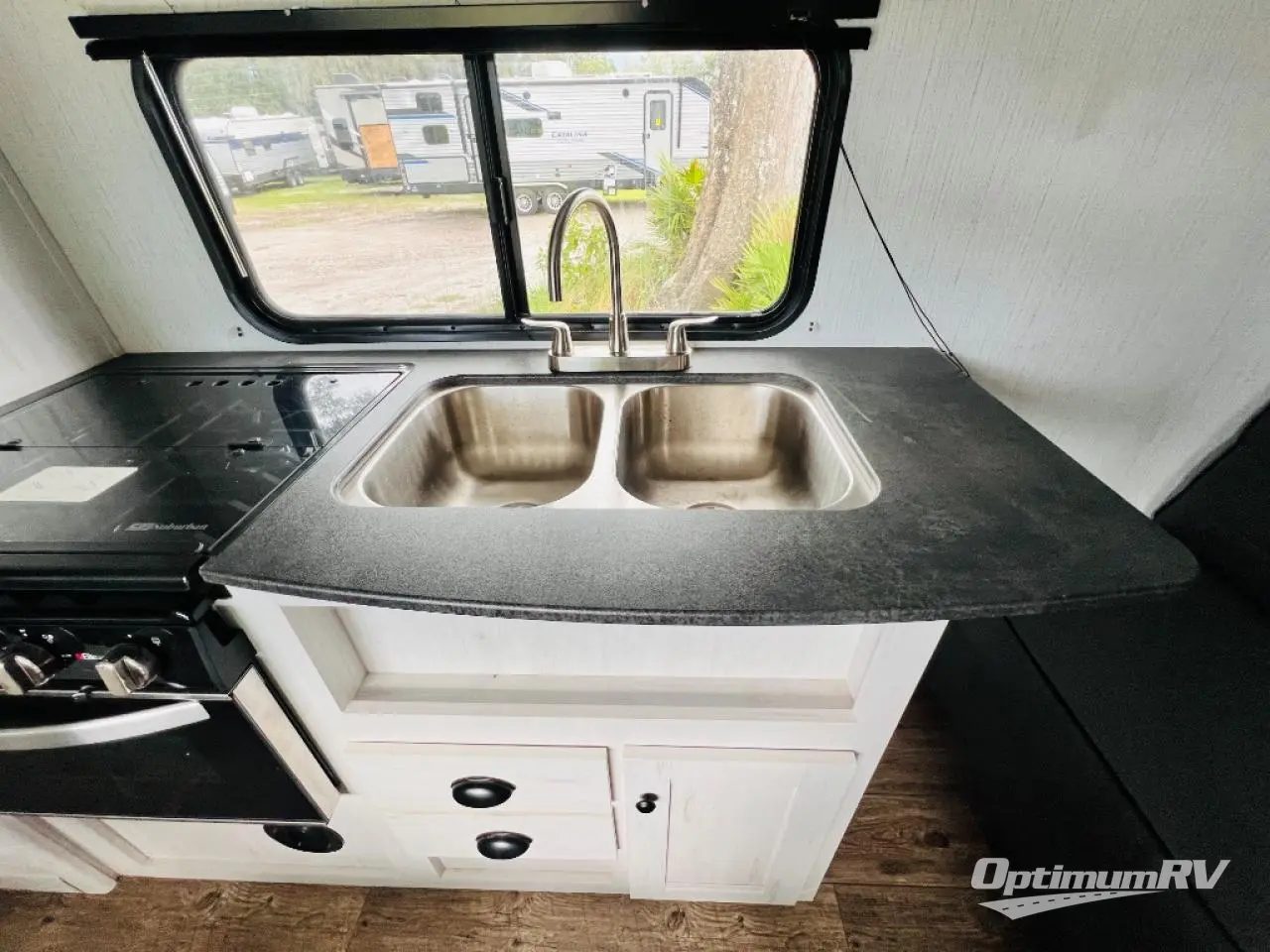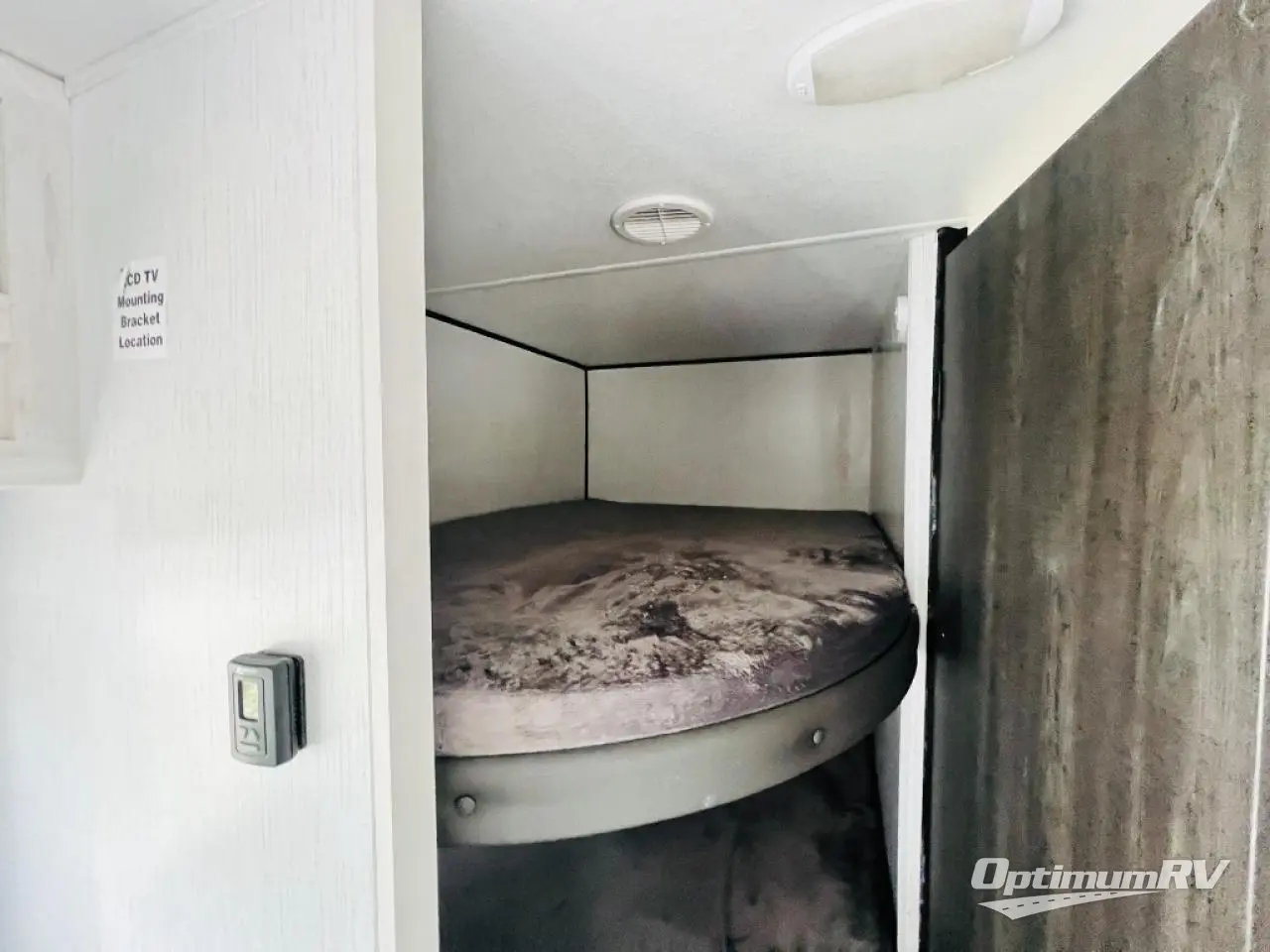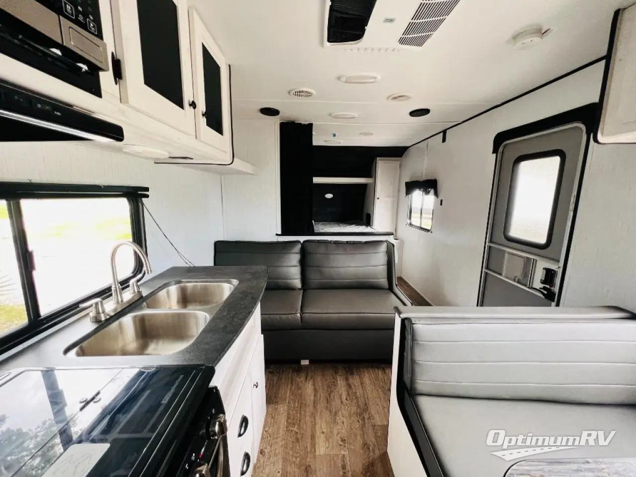 The whole family will love camping in this travel trailer! It has everything you need from a set of double bunk beds to a 14' power awning with LED light strip and outside shower. The front queen bed has under-bed storage to keep extra blankets or suitcases out of the way. After getting a good night's rest, head to the rear corner bathroom to freshen up in the ABS tub/shower surround with skylight above and then fry some eggs up on the three burner cooktop. You can enjoy your meals at the booth dinette and even convert it into an extra sleeping space, plus there is a sofa to take an afternoon nap!