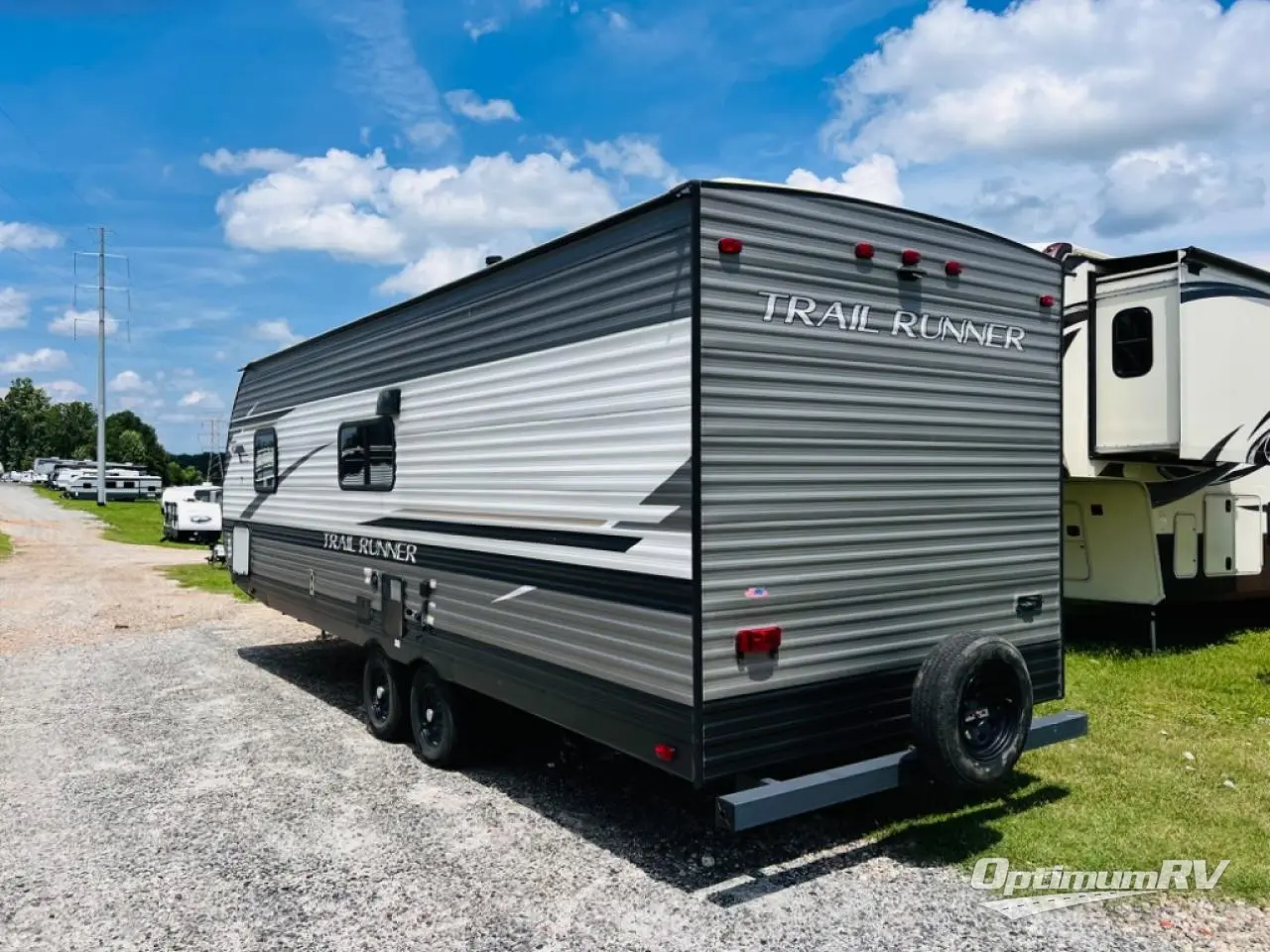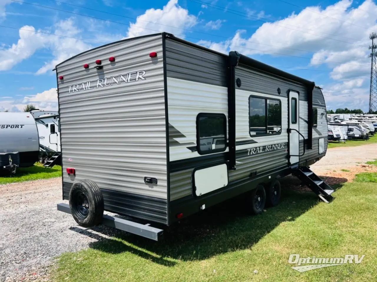 Paradise awaits at the end of the trail with one of these Heartland Trail Runner travel trailers! Experience better wind and water deflection, added strength, and a reduction of tongue weight with the hybrid aluminum front profile that has an aerodynamic radius front cage. A cambered structural steel I-beam frame holds them together and a heated enclosed underbelly protects the units vitals. There is an industry leading mammoth storage space of 57 cu. ft. pass-through storage so you can bring all of your outdoor gear with you. Roller shades in the main living area, woven flooring in all slide rooms, master suites with CPAP storage, and upgraded pressed counters give you the at-home feel you desire. Come find the perfect model for you today!