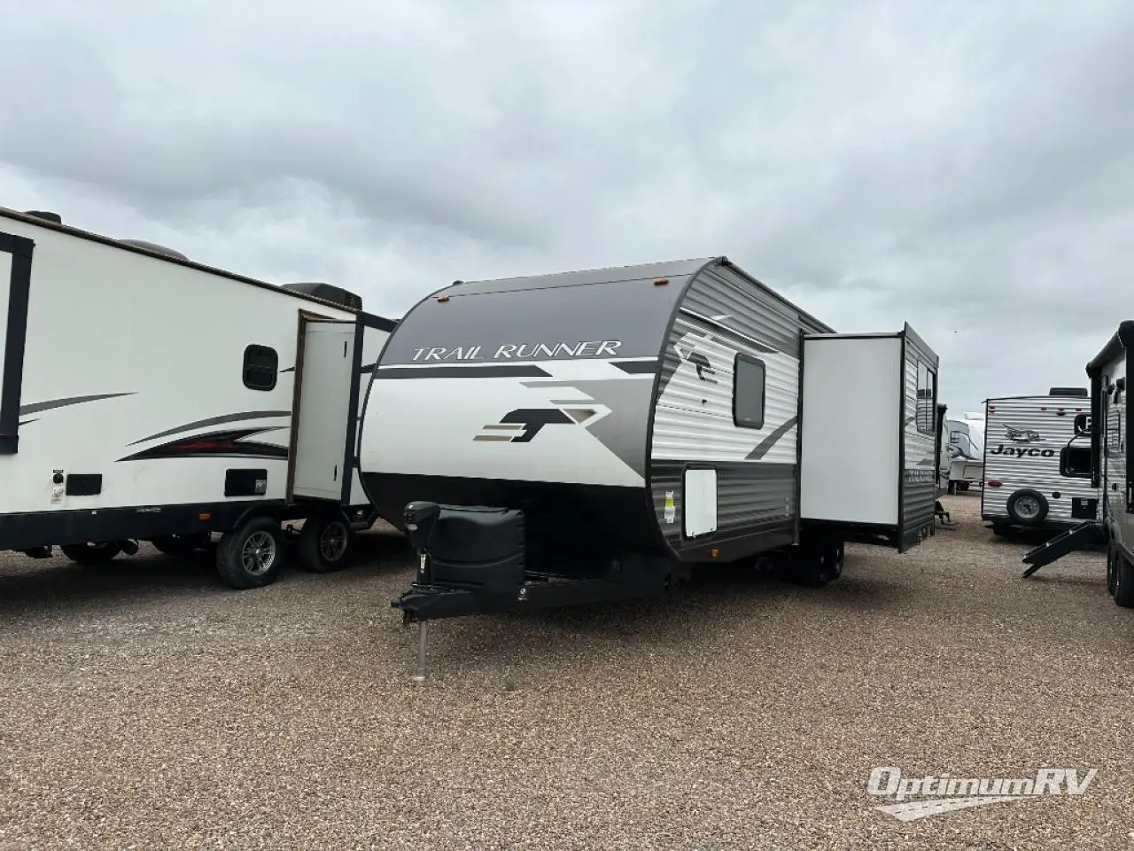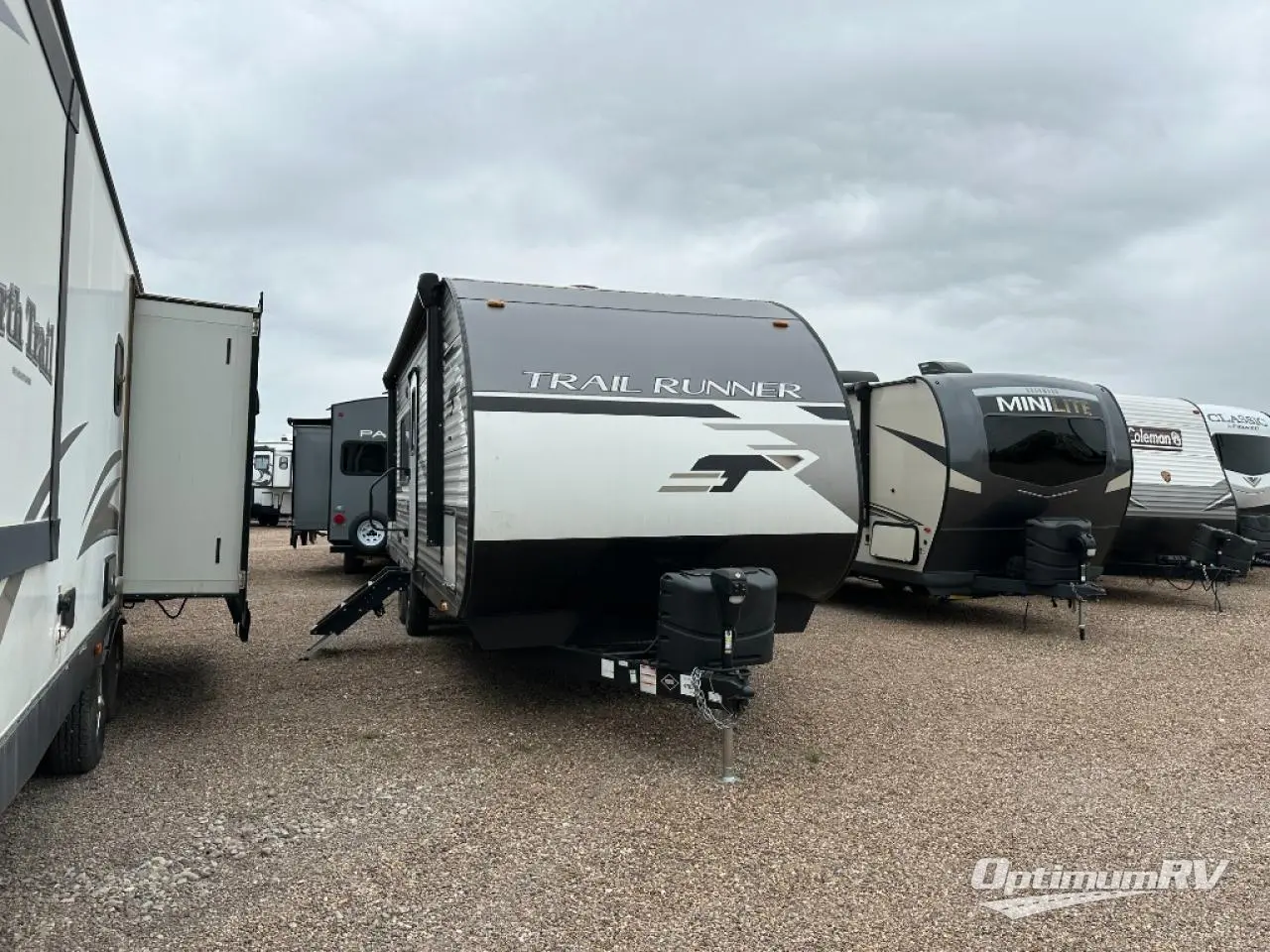 Paradise awaits at the end of the trail with one of these Heartland Trail Runner travel trailers! Experience better wind and water deflection, added strength, and a reduction of tongue weight with the hybrid aluminum front profile that has an aerodynamic radius front cage. A cambered structural steel I-beam frame holds them together and a heated enclosed underbelly protects the units vitals. There is an industry leading mammoth storage space of 57 cu. ft. pass-through storage so you can bring all of your outdoor gear with you. Roller shades in the main living area, woven flooring in all slide rooms, master suites with CPAP storage, and upgraded pressed counters give you the at-home feel you desire. Come find the perfect model for you today!