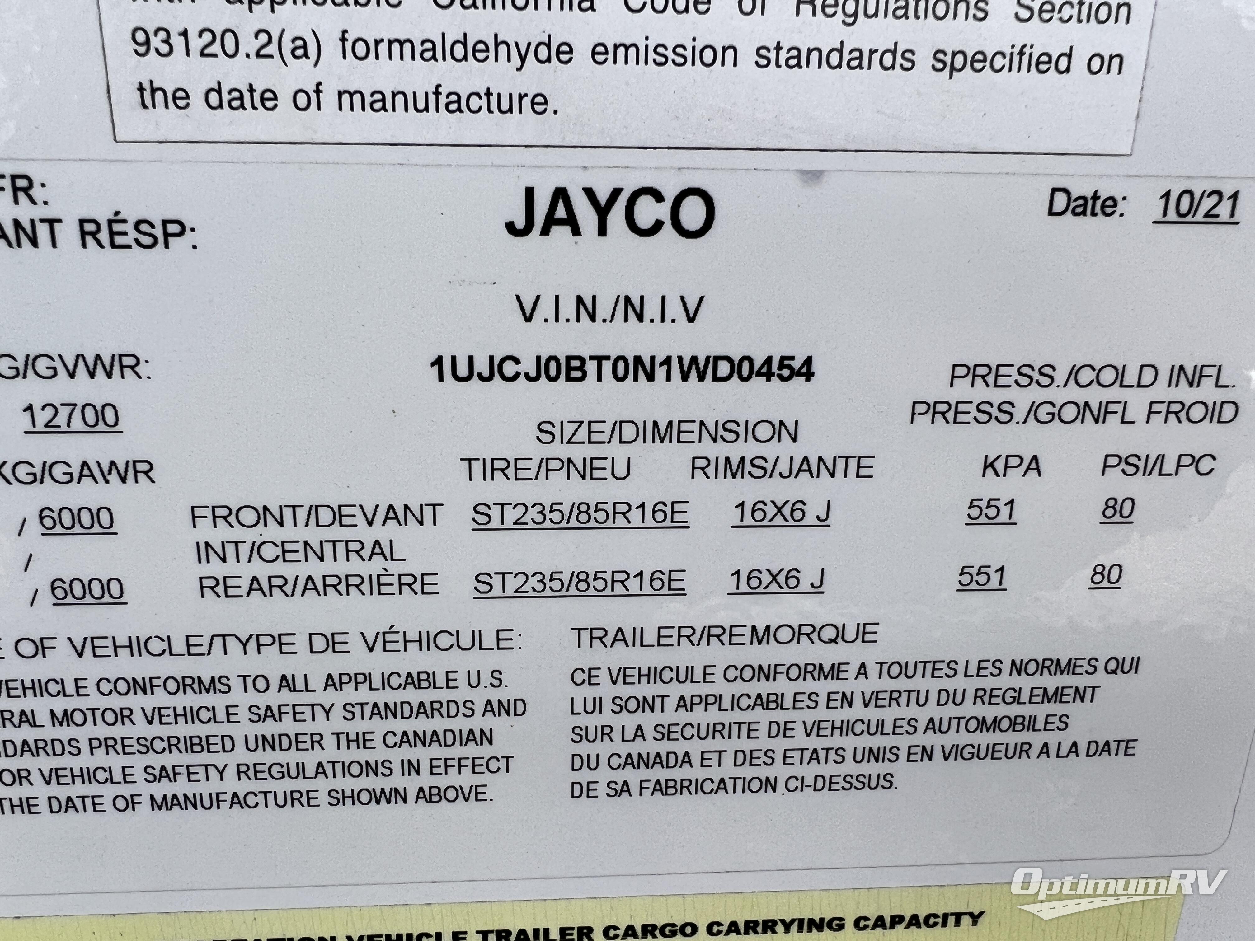 - VIN 1UJCJ0BT0N1WD0454
