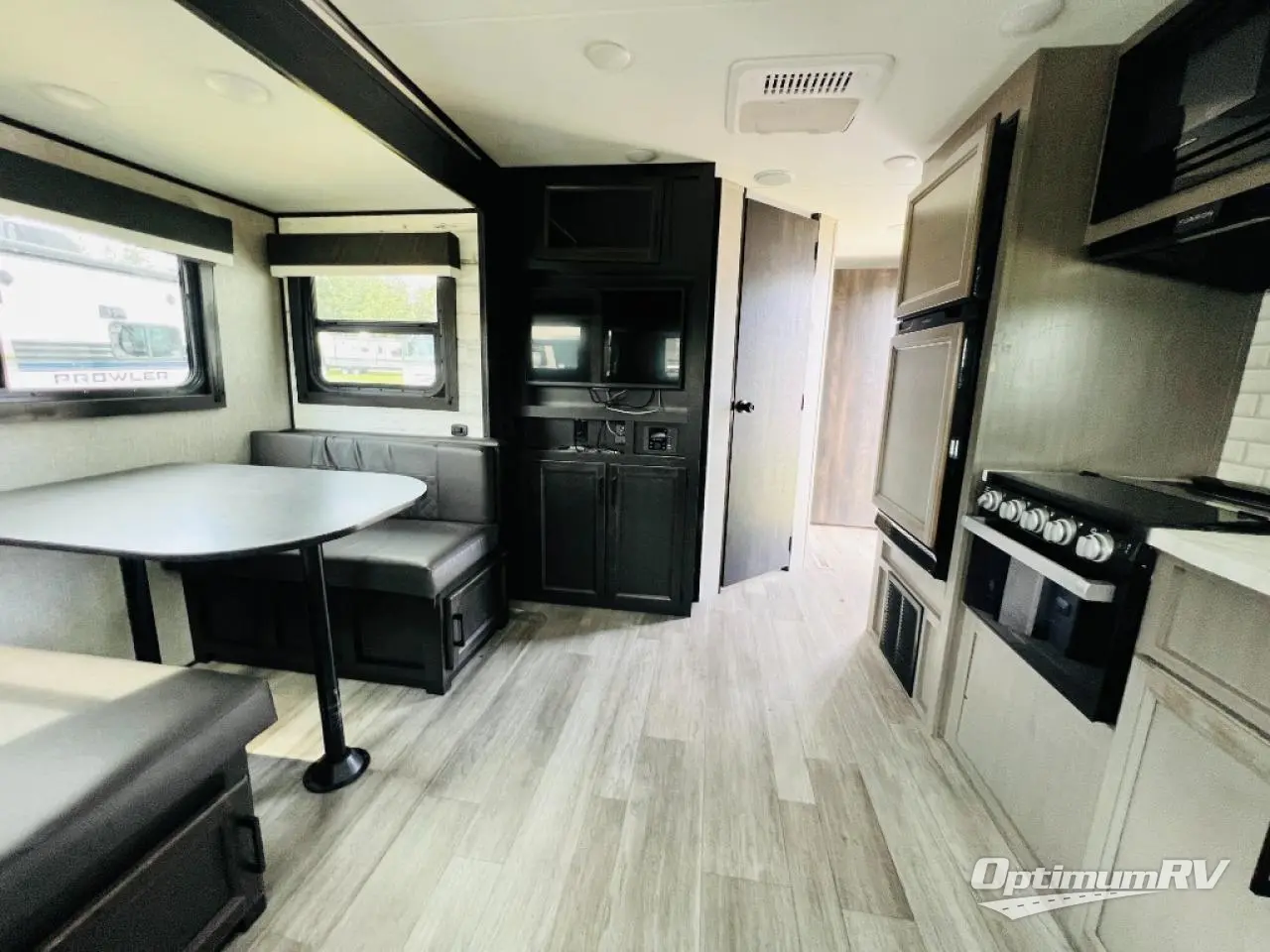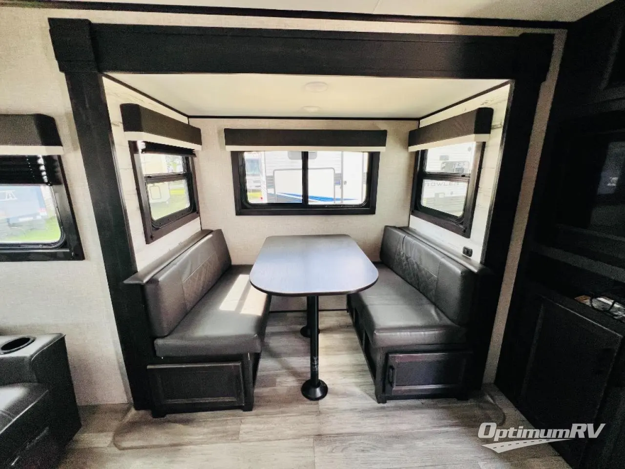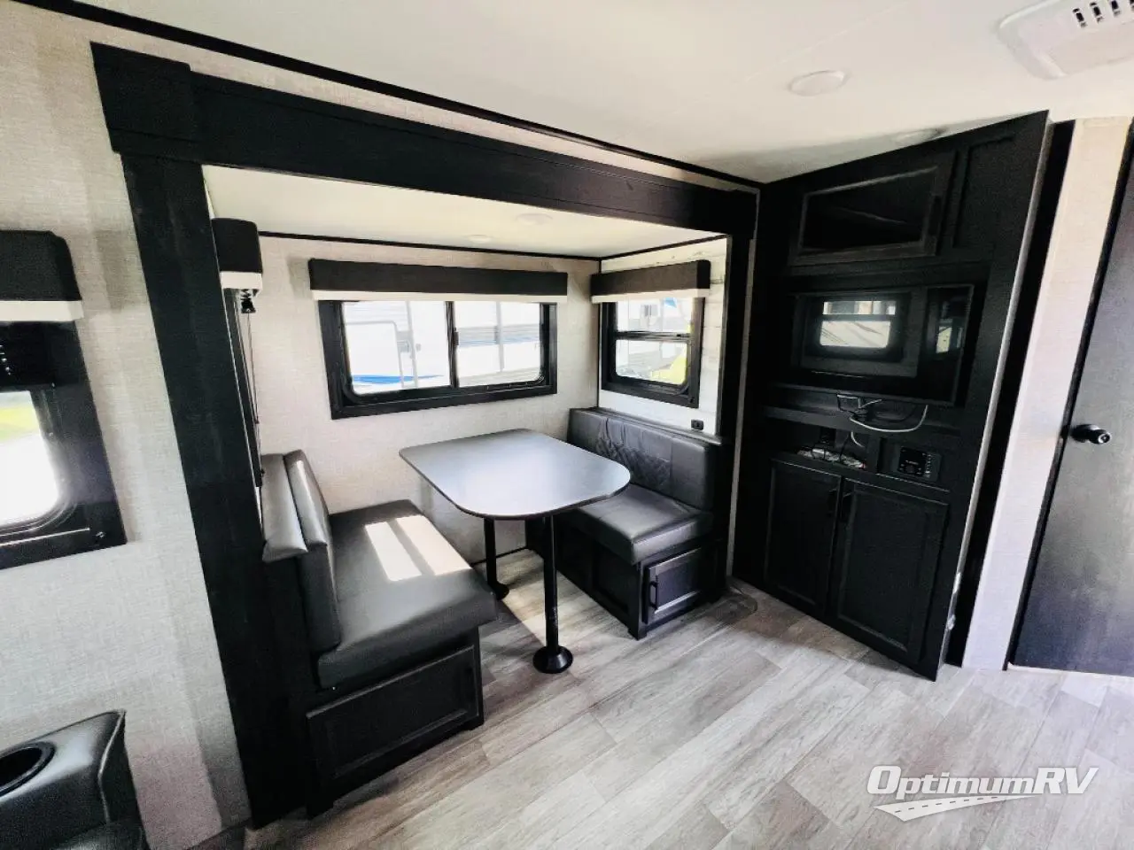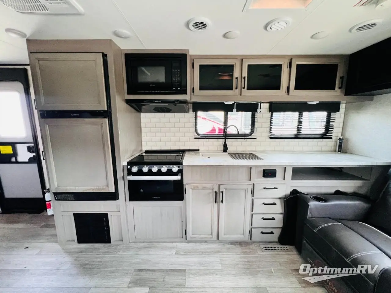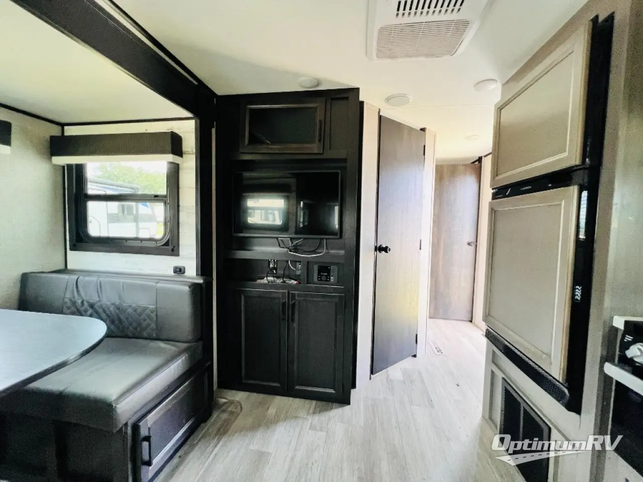 Camp at a local state park or travel to see new places with this trailer that can sleep four when you utilize the furniture as sleeping space. Two can sleep in the front bedroom on a queen bed with dual wardrobes and includes access to the double entry bathroom, while two others sleep on the booth dinette slide out, and the rear jackknife sofa. There is an LED TV in the main area to watch while everyone plans their activities or while the cook makes meals using full amenities. There is an outside fridge to store more cold items which is super handy when you are relaxing outside under the 20' power awning. You might even like to add a few options, take a look at the list.