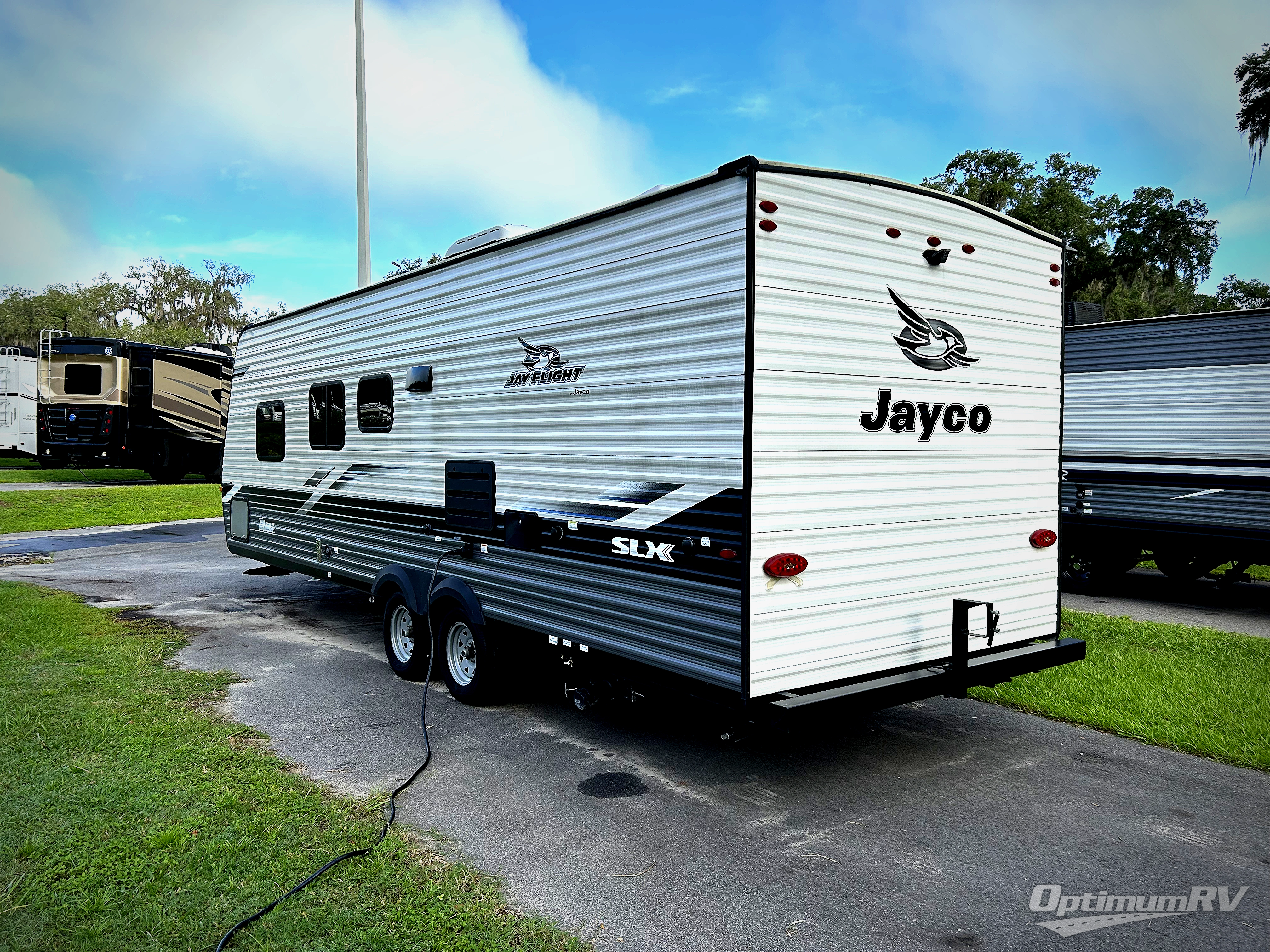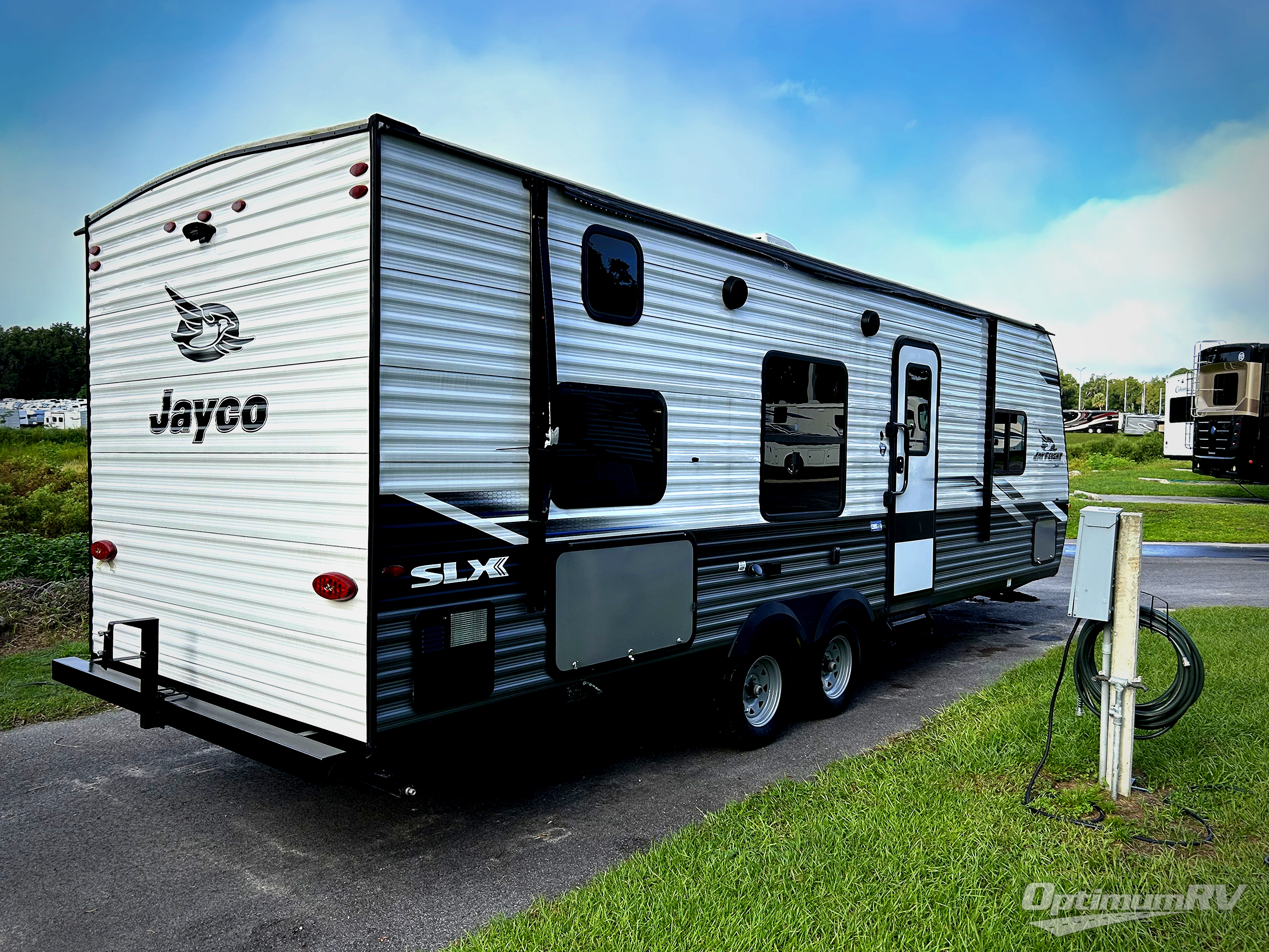 With any Jay Flight SLX 8 travel trailer by Jayco, you will have a durable foundation with l-Class cambered structural steel l-beams, a fully-integrated A-frame, seamless roof material and a Magnum Truss Roof System with plywood decking for a 50% stronger roof than any other in the industry. Also included are Goodyear Endurance tires made in the USA, a front diamond plate to protect against road debris. Inside, you will love the fresh interior design, the solid hardwood cabinet doors, the 81-inch tall ceiling, the energy-saving LED lighting, and the storage. Whether you are looking for an RV for a small or large group, you will find a Jay Flight SLX 8 to fit your camping lifestyle!