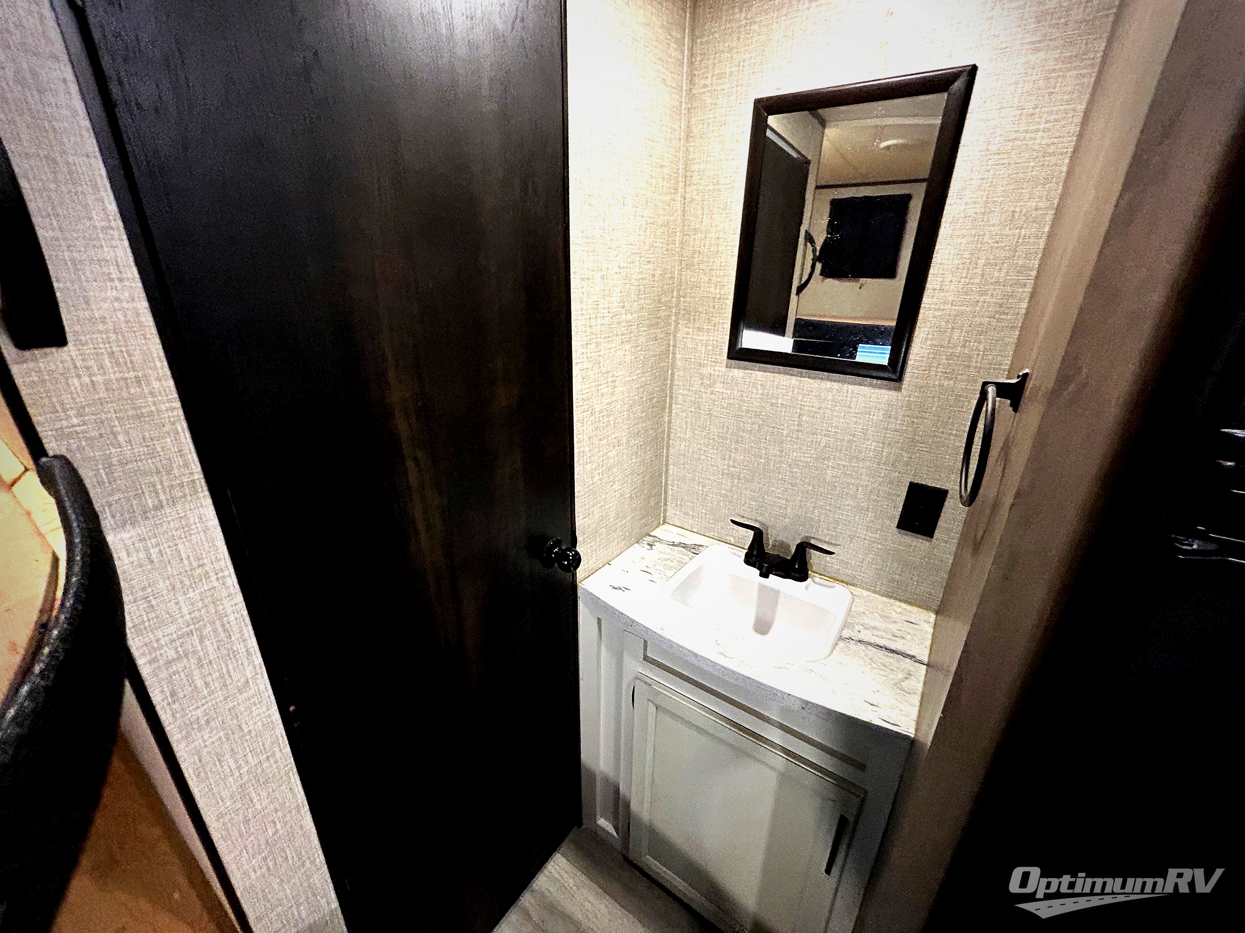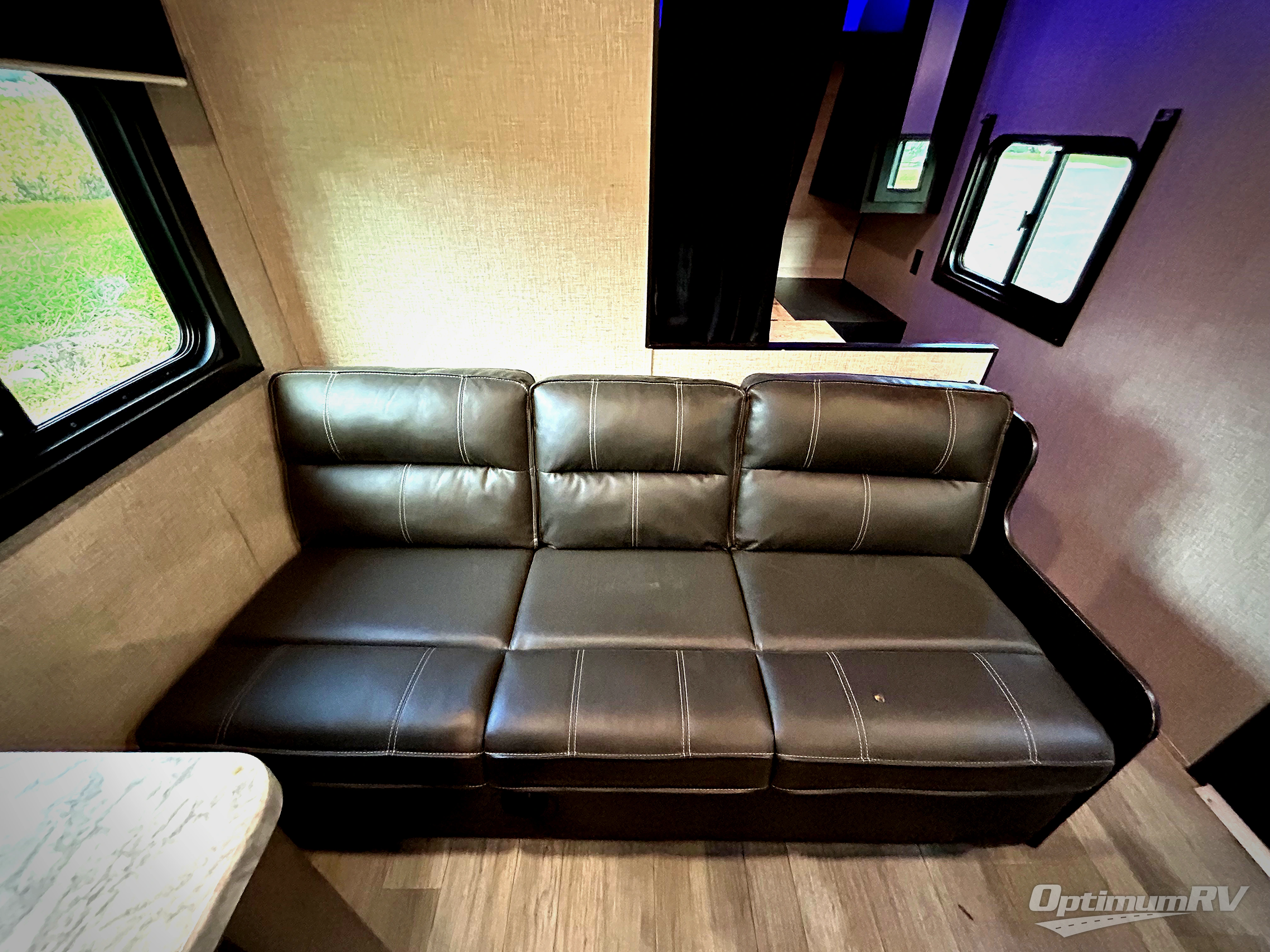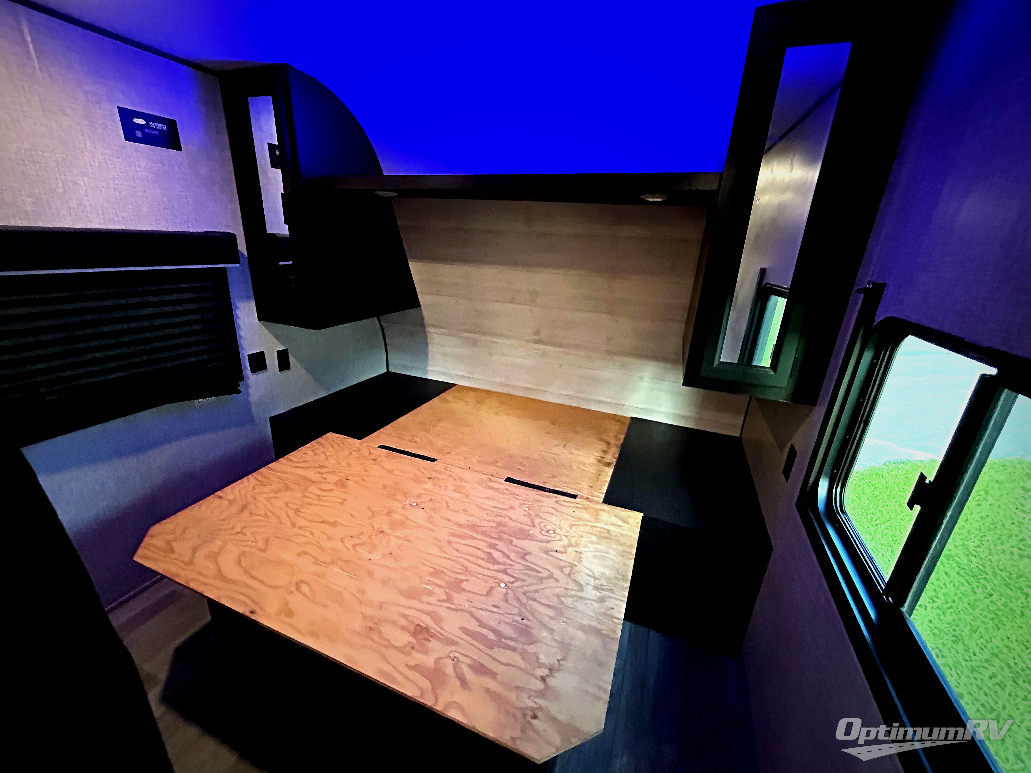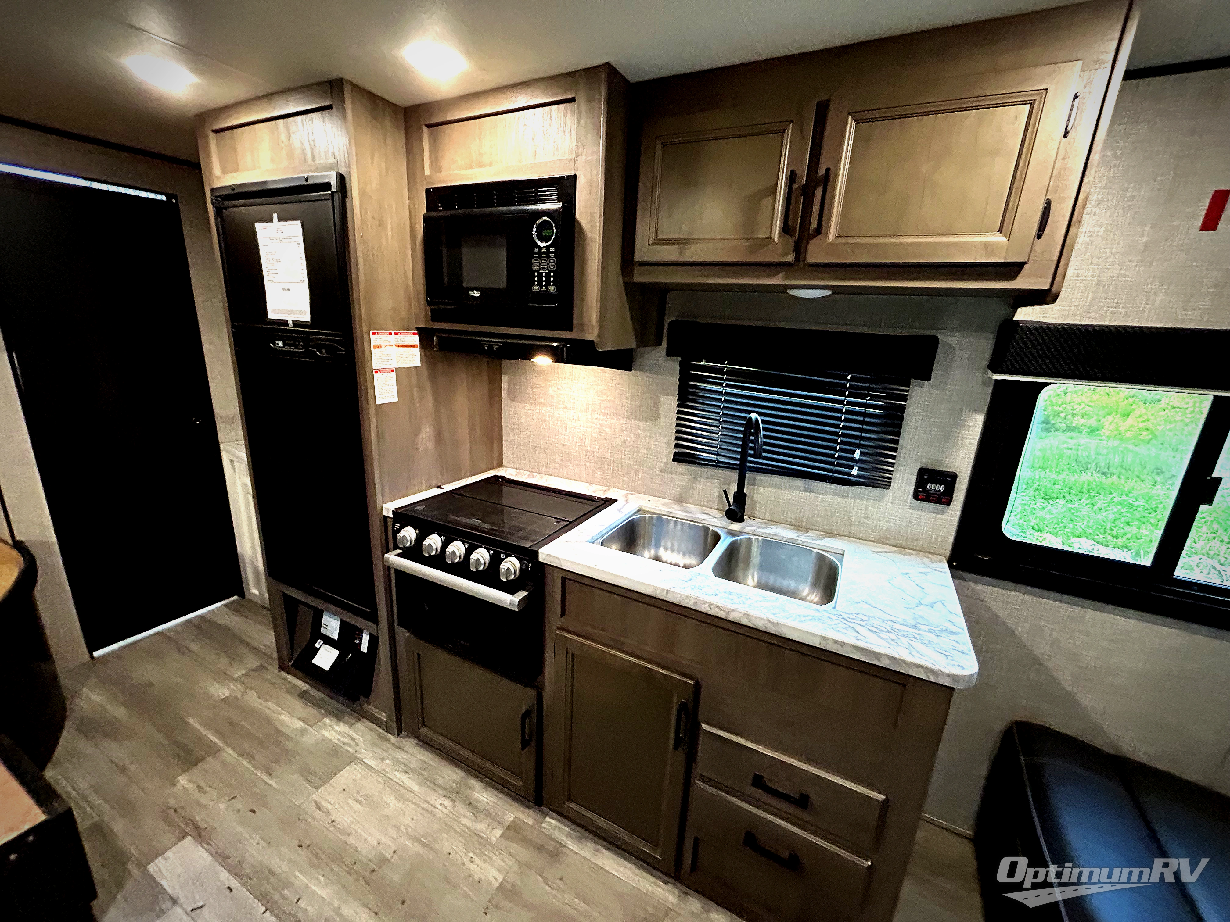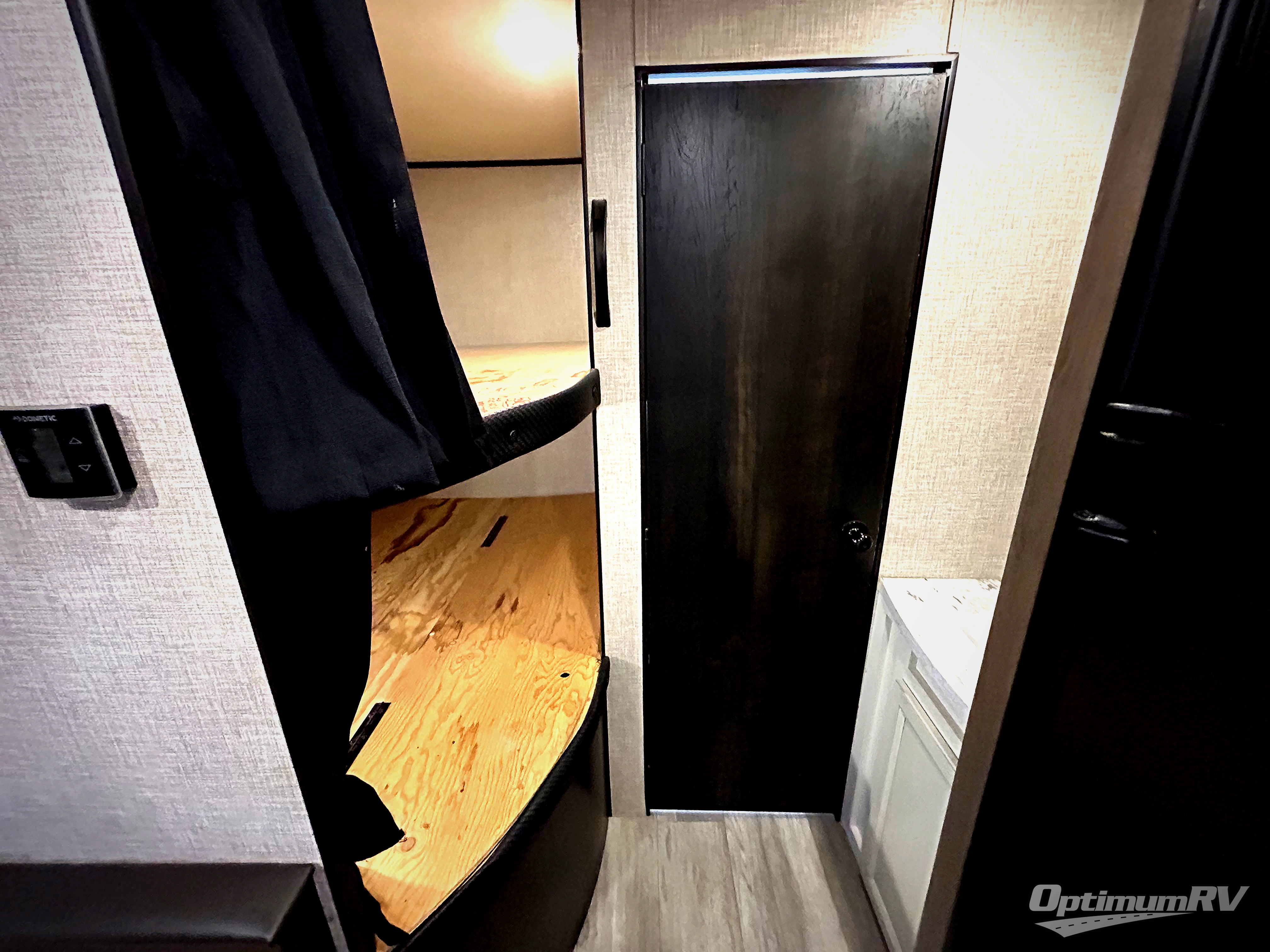 This easy to setup trailer offers a semi-private bedroom up front with a queen bed, semi-private double size bunks in the rear thanks to the curtains, and a private toilet and tub/shower room. The bathroom sink is just outside the door allowing two people to get ready for bed at once. The galley kitchen offers full amenities, and two can dine at the booth dinette and some can relax on the jack-knife sofa. Both furnishings offer extra sleeping space. And you might like to add the Chil N' Stor option which adds a fridge and counter space along the exterior to serve meals outside and store extra beverages.