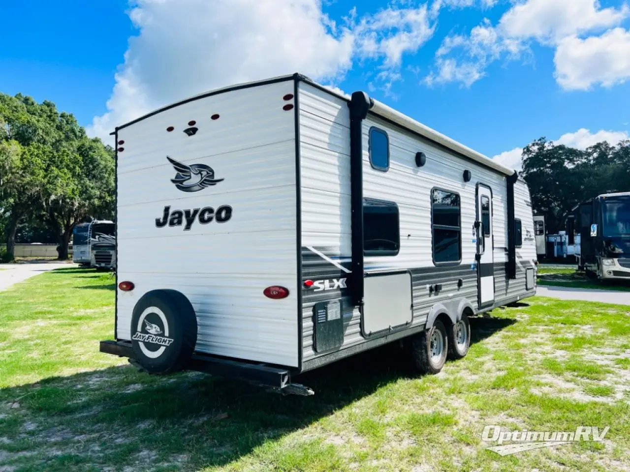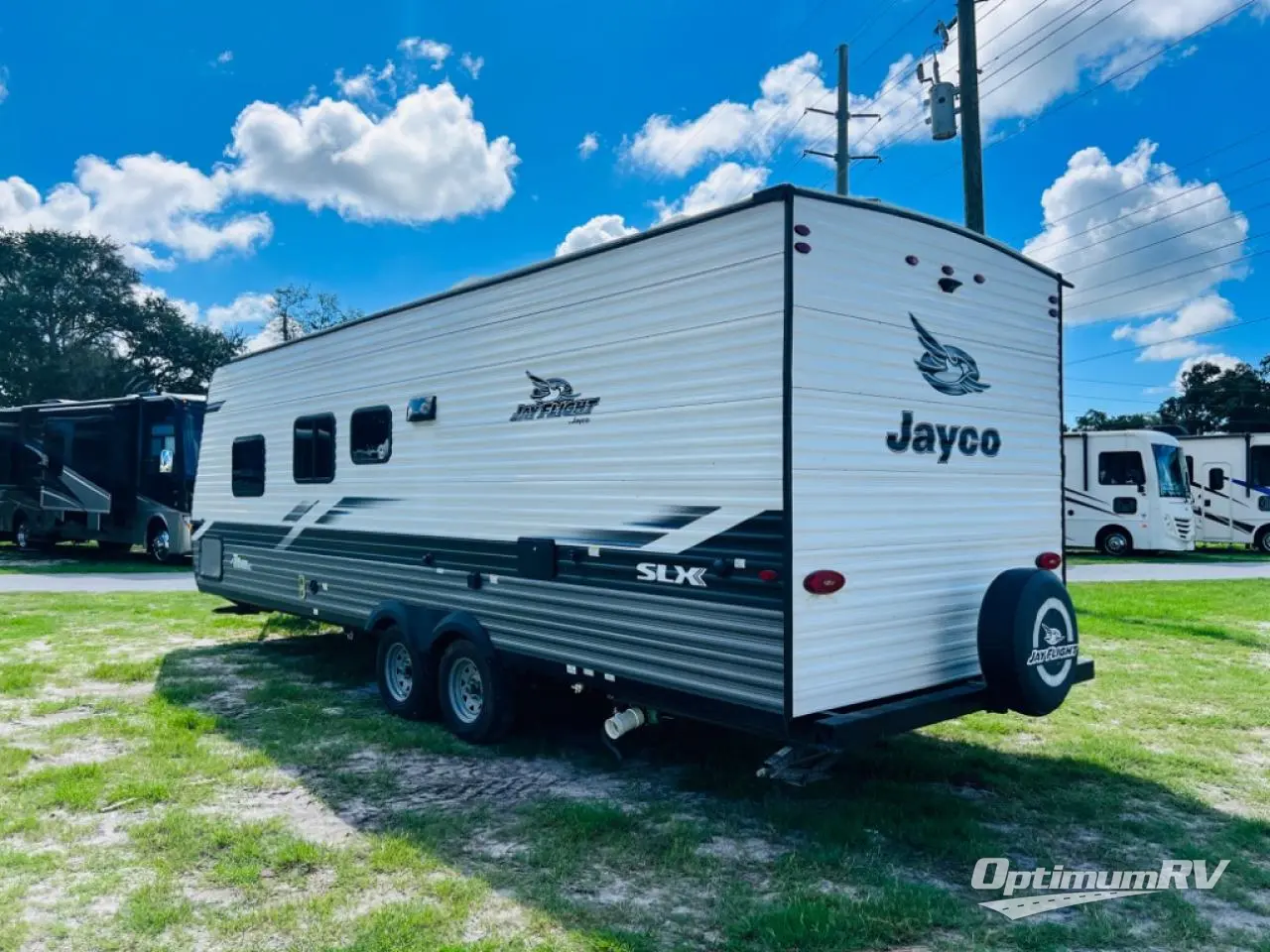 With any Jay Flight SLX 8 travel trailer by Jayco, you will have a durable foundation with l-Class cambered structural steel l-beams, a fully-integrated A-frame, seamless roof material and a Magnum Truss Roof System with plywood decking for a 50% stronger roof than any other in the industry. Also included are Goodyear Endurance tires made in the USA, a front diamond plate to protect against road debris. Inside, you will love the fresh interior design, the solid hardwood cabinet doors, the 81-inch tall ceiling, the energy-saving LED lighting, and the storage. Whether you are looking for an RV for a small or large group, you will find a Jay Flight SLX 8 to fit your camping lifestyle!