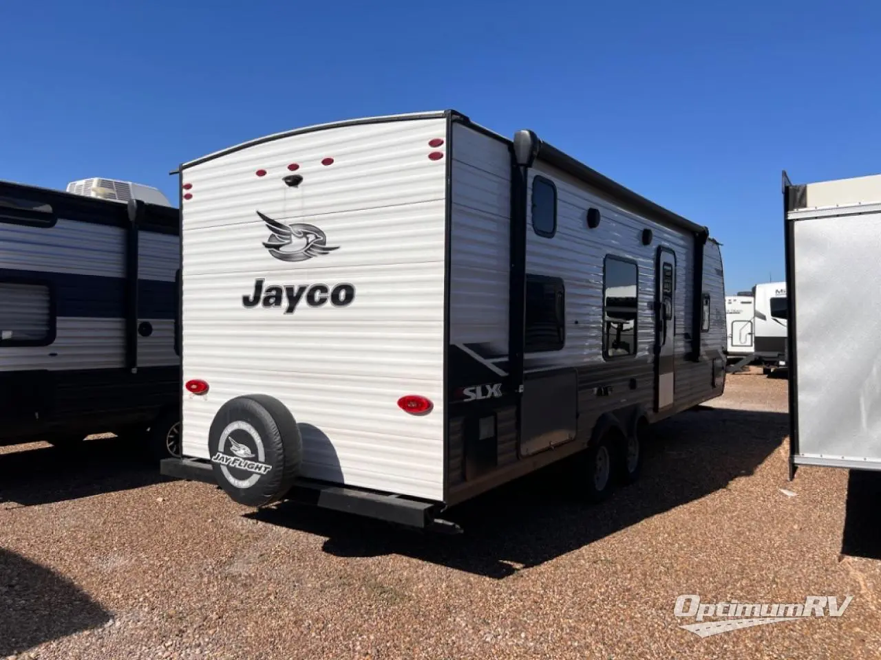 With any Jay Flight SLX 8 travel trailer by Jayco, you will have a durable foundation with l-Class cambered structural steel l-beams, a fully-integrated A-frame, seamless roof material and a Magnum Truss Roof System with plywood decking for a 50% stronger roof than any other in the industry. Also included are Goodyear Endurance tires made in the USA, a front diamond plate to protect against road debris. Inside, you will love the fresh interior design, the solid hardwood cabinet doors, the 81-inch tall ceiling, the energy-saving LED lighting, and the storage. Whether you are looking for an RV for a small or large group, you will find a Jay Flight SLX 8 to fit your camping lifestyle!