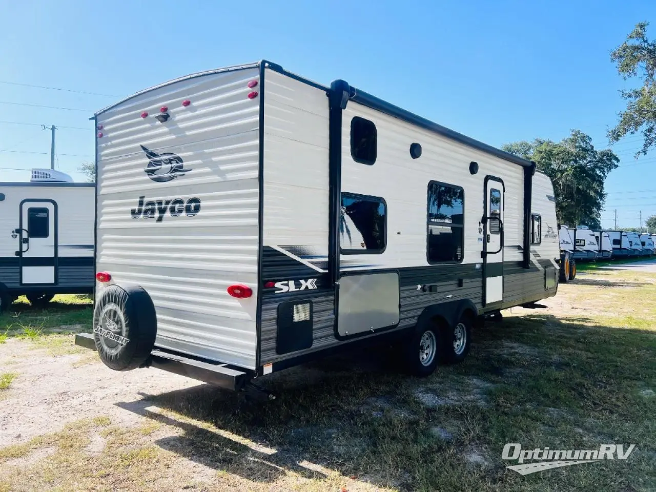 With any Jay Flight SLX 8 travel trailer by Jayco, you will have a durable foundation with l-Class cambered structural steel l-beams, a fully-integrated A-frame, seamless roof material and a Magnum Truss Roof System with plywood decking for a 50% stronger roof than any other in the industry. Also included are Goodyear Endurance tires made in the USA, a front diamond plate to protect against road debris. Inside, you will love the fresh interior design, the solid hardwood cabinet doors, the 81-inch tall ceiling, the energy-saving LED lighting, and the storage. Whether you are looking for an RV for a small or large group, you will find a Jay Flight SLX 8 to fit your camping lifestyle!