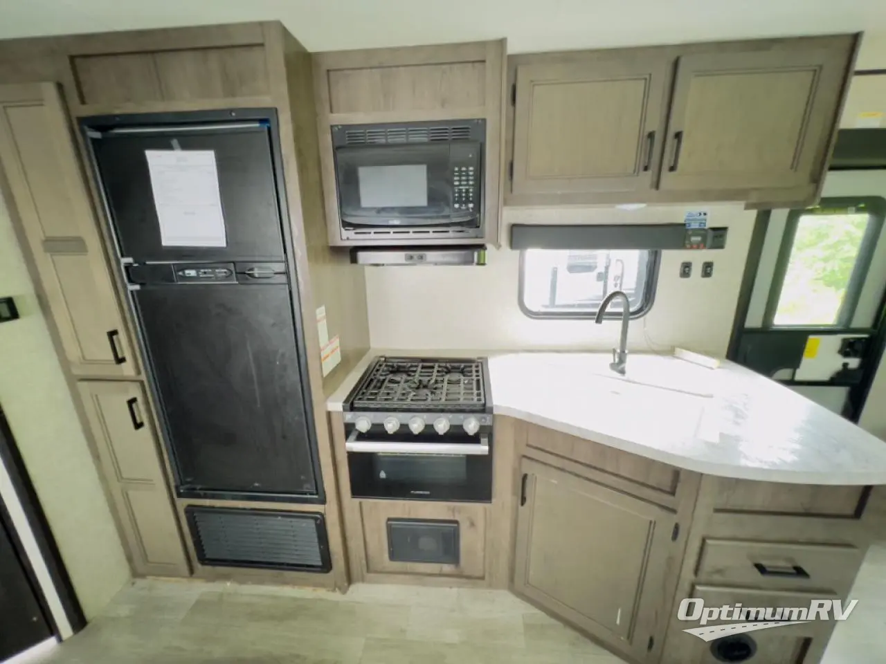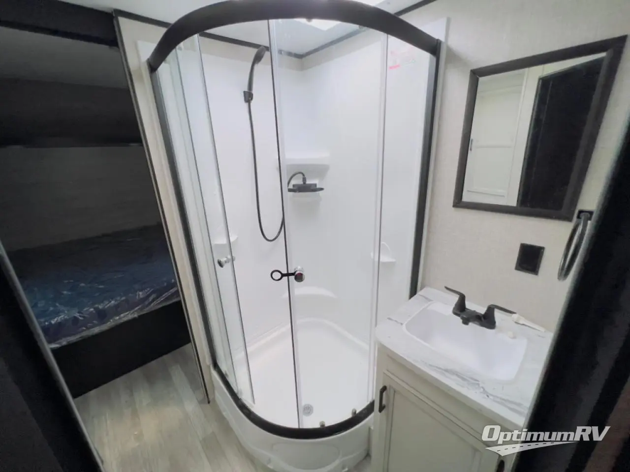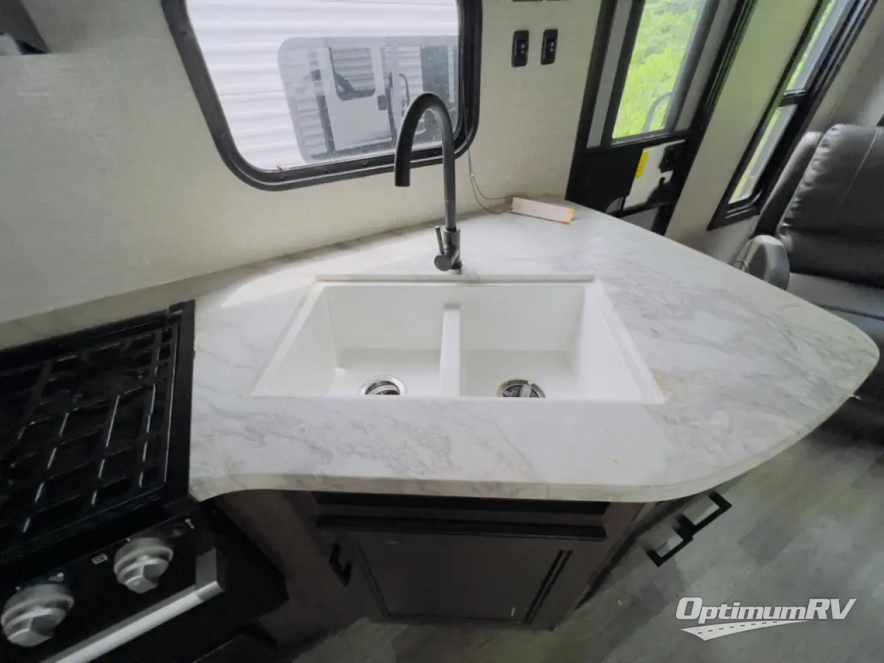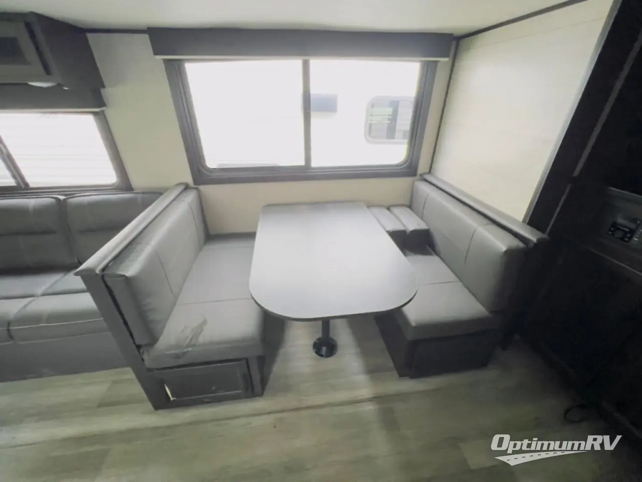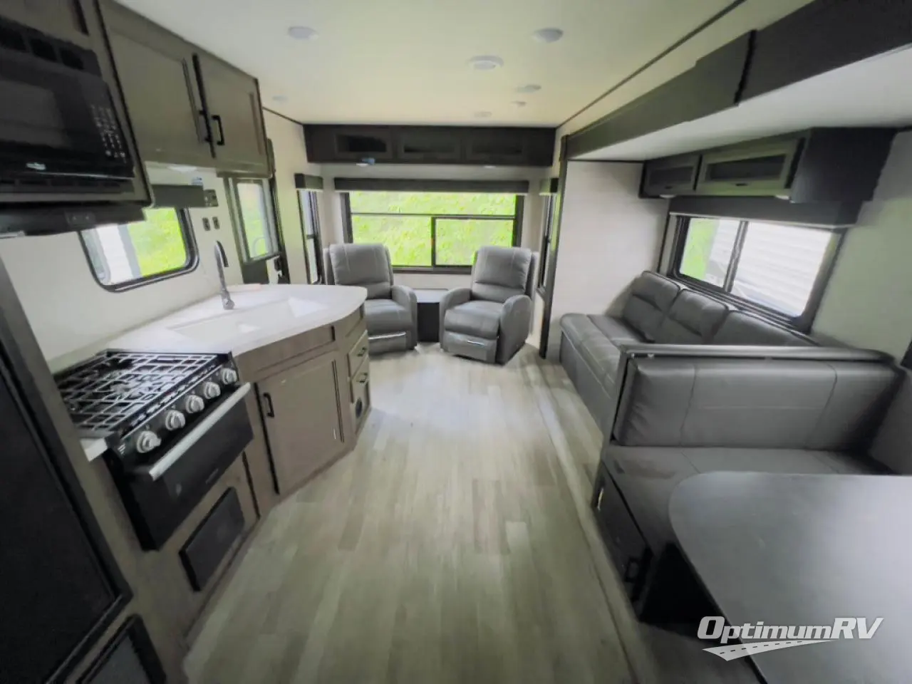 When you want to travel and see new places, this trailer gives you the flexibility to sleep two to four, plus offers a full walk-through bathroom with access from the main area and the front private bedroom. You will also appreciate having a second entry/exit door in the bedroom, a walk-around queen bed, plus dual wardrobes giving you your own side of the bed. The bathroom also has a radius shower and linen storage. The kitchen includes full amenities to make your own meals, and a pantry to keep your dry goods and snacks. You will love the rear swivel rockers with table in between to place your drinks, and the jack-knife sofa plus booth dinette offer more seating, sleeping space, and extra floor space since they are within a slide.