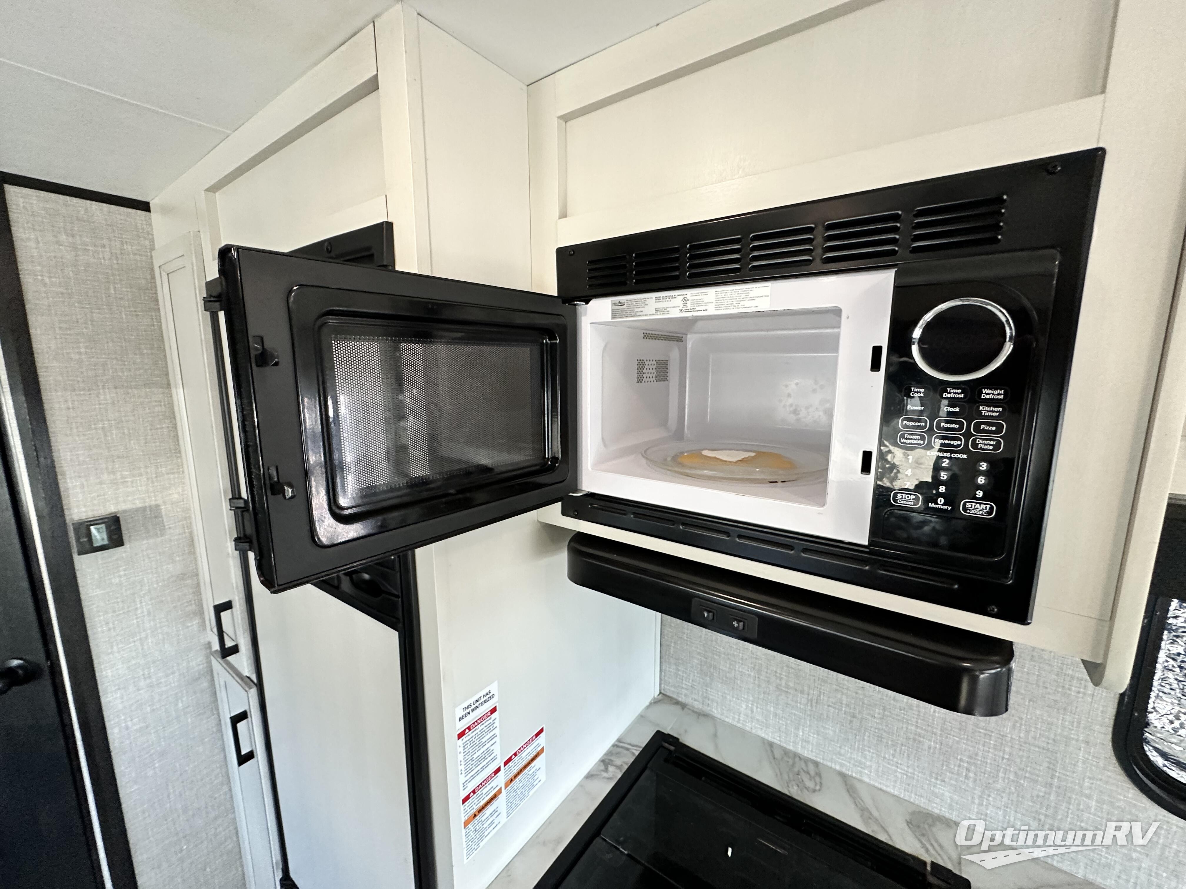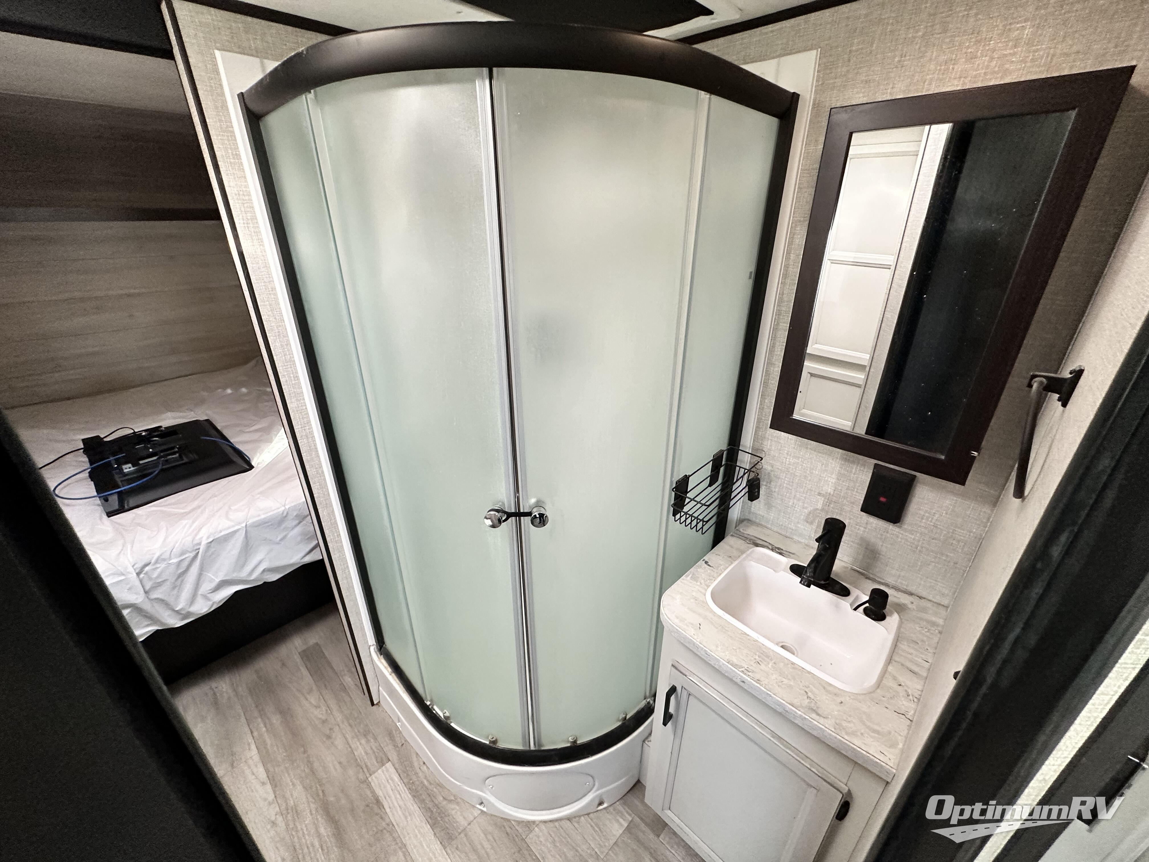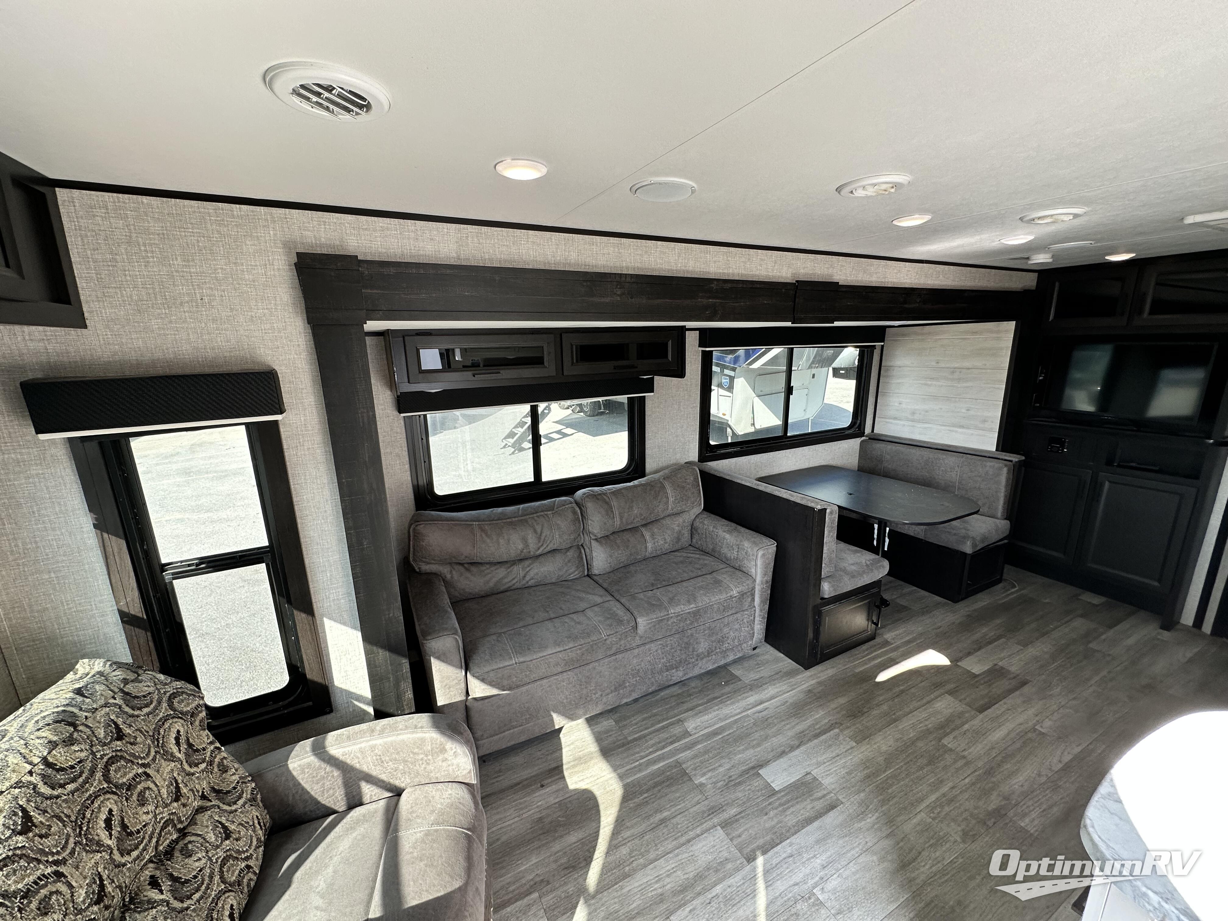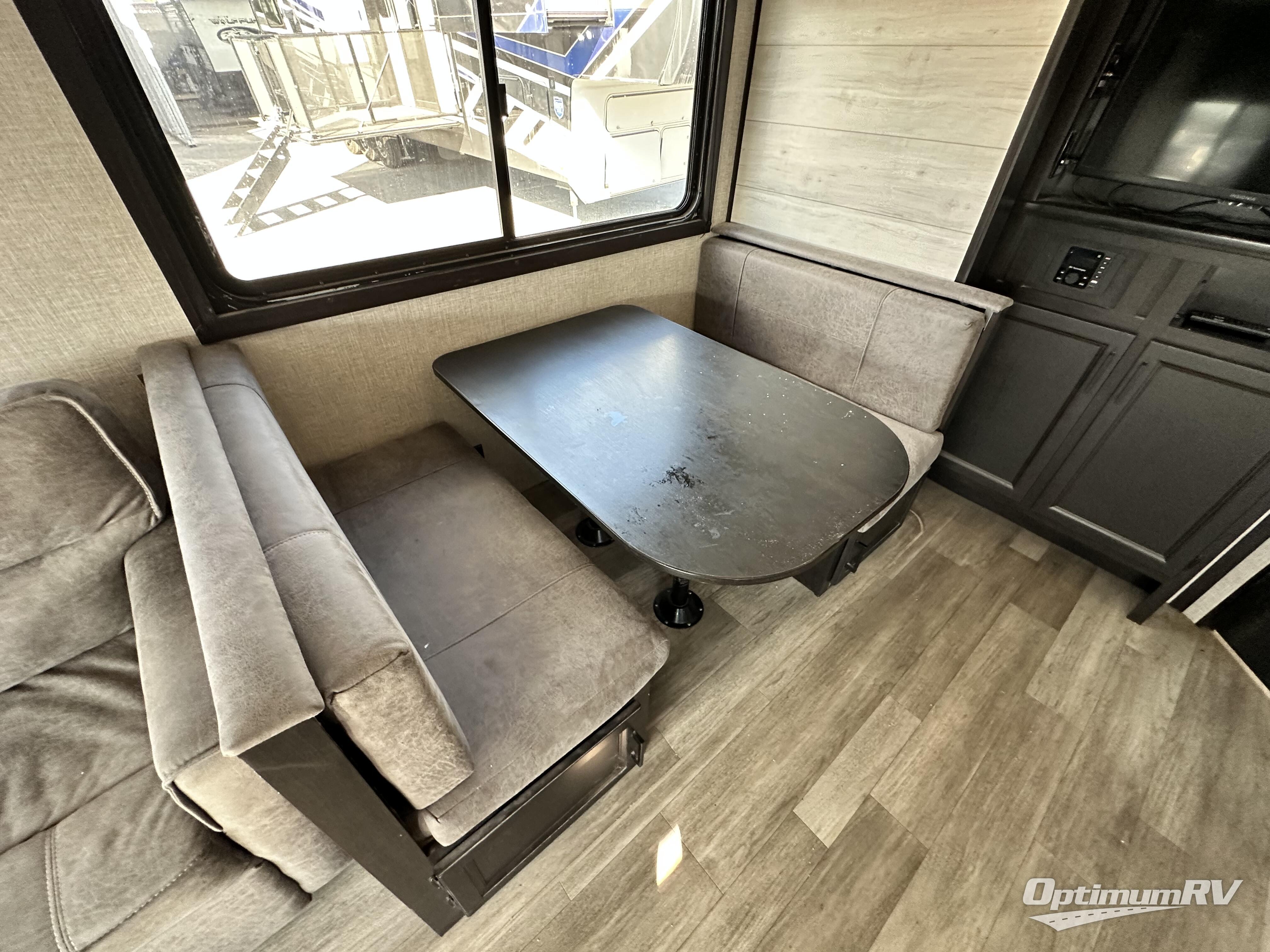 When you want to travel and see new places, this trailer gives you the flexibility to sleep two to four, plus offers a full walk-through bathroom with access from the main area and the front private bedroom. You will also appreciate having a second entry/exit door in the bedroom, a walk-around queen bed, plus dual wardrobes giving you your own side of the bed. The bathroom also has a radius shower and linen storage. The kitchen includes full amenities to make your own meals, and a pantry to keep your dry goods and snacks. You will love the rear swivel rockers with table in between to place your drinks, and the jack-knife sofa plus booth dinette offer more seating, sleeping space, and extra floor space since they are within a slide.