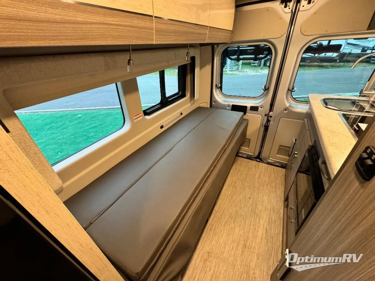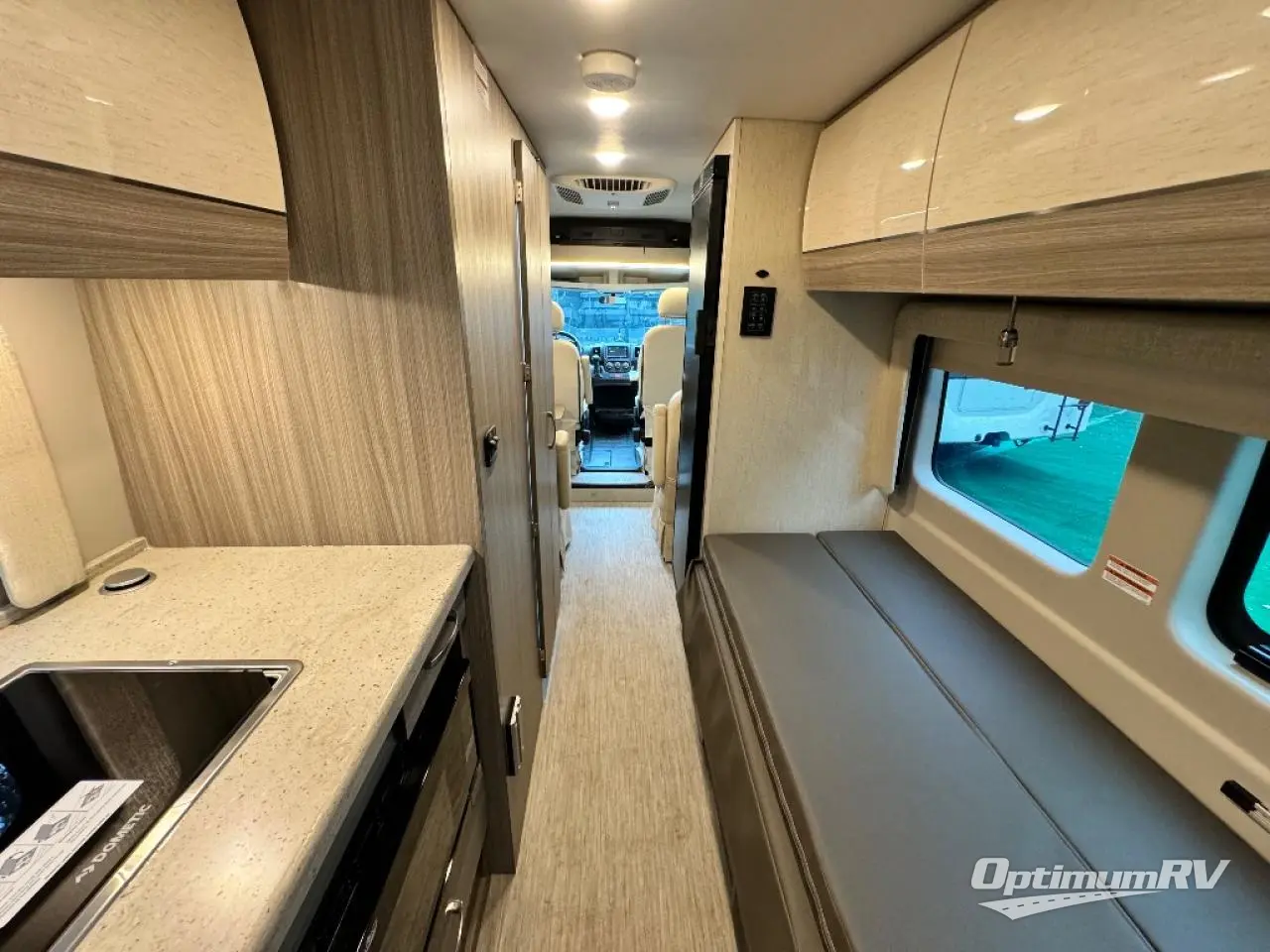 Head into the great unknown with this cozy gas motorhome for two. You will enjoy the drive on Ultraleather captain's seats, plus there are two additional cab seats if you're planning a day trip with friends. Prepare a quick lunch in the convection microwave when you stop, and grab a cold drink from the 5.3 cu. ft. AC/DC refrigerator. This model includes a sofa to relax on during the day, which can be converted to a 48" x 76" extended bed at night, and you can freshen up each morning in the convenient wet bath!