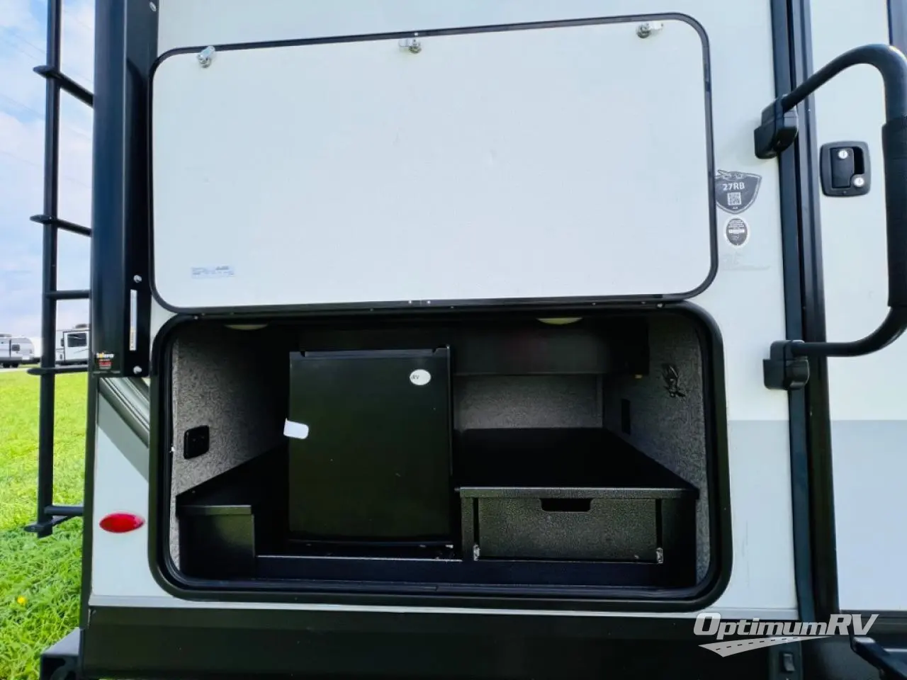 Your family will love camping every other weekend in this spacious travel trailer. The full rear bath is tucked away in the back for privacy, and there are dual entry doors for convenience. When you're not outside cooking on the outdoor kitchen, gather around the U-shaped dinette for game night. You'll find the LED TV and fireplace will make this area feel more like home, and there are two pantries to store snacks and dry goods. When it comes time to call it a night, head to the front private bedroom for a great night's rest on the queen bed, and you'll find two wardrobes plus a closet to keep your clothes tidy.
