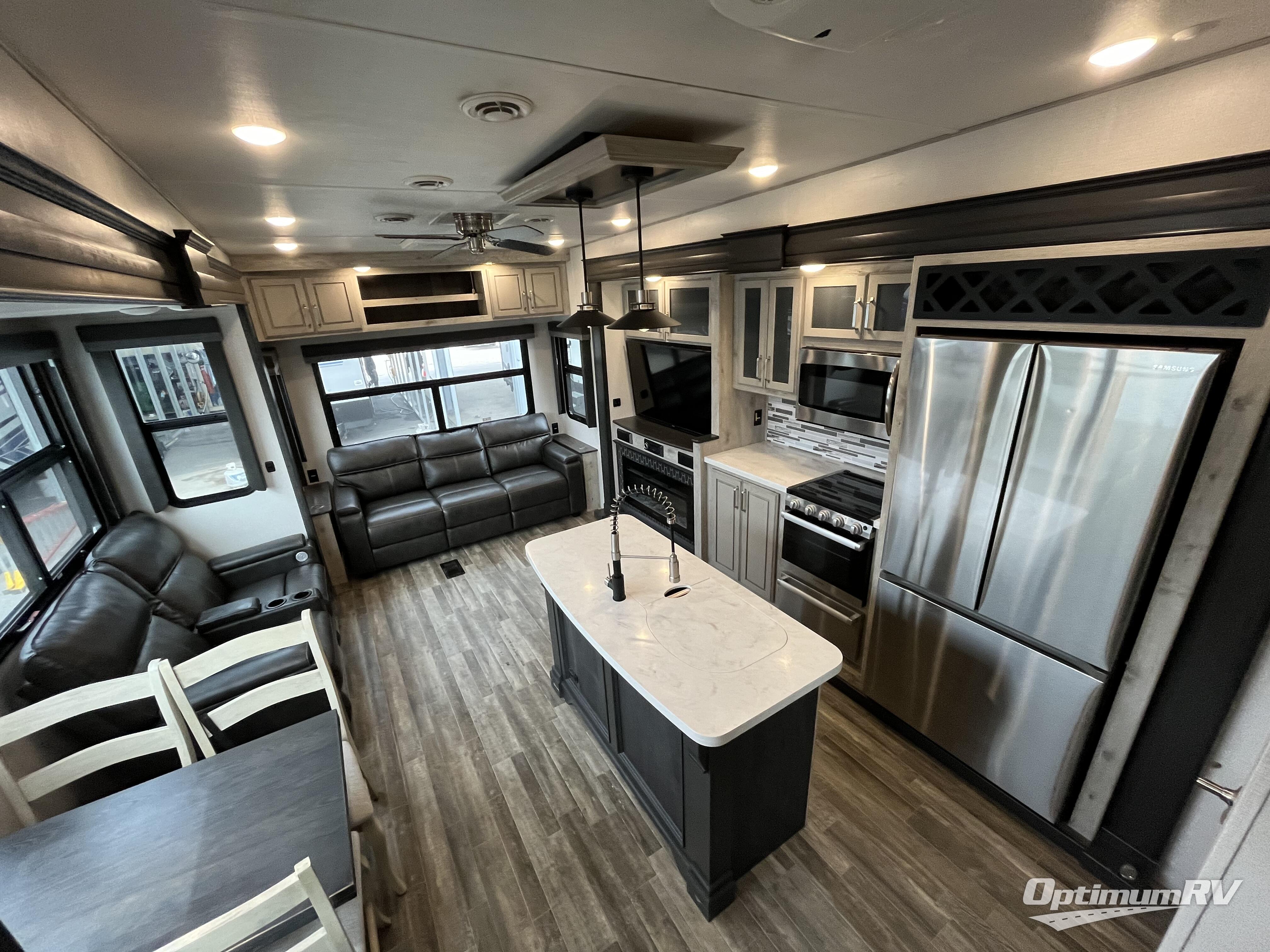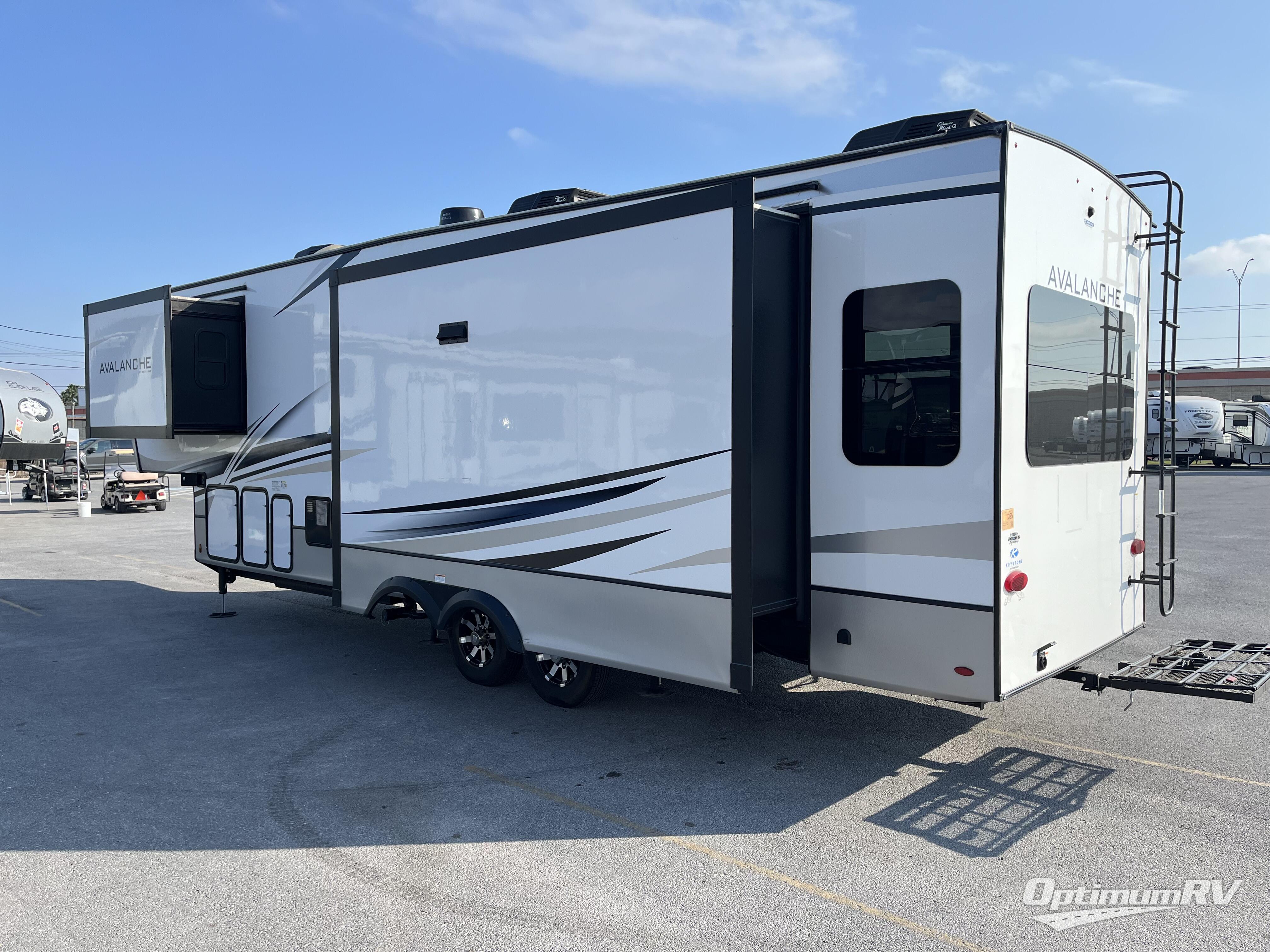 With any Keystone luxury full-profile Avalanche fifth wheel, you will experience wide-body construction that allows you to stretch out and stay awhile during any season thanks to the Polar Pack All Season Protection that includes a heated and enclosed underbelly, an Astro foil reflective layer on the roof, front and rear walls, and two static attic vents, plus more! The interior offers hardwood slide out fascia with wood accents, crown molding, plus your choice of modern interior design. There are many more Keystone exclusives, like the Tru-Fit slide construction, the in-floor heating ducts, the 4G LTE and Wi-Fi prep, and much more to bring you a full-packed, luxury fifth wheel!