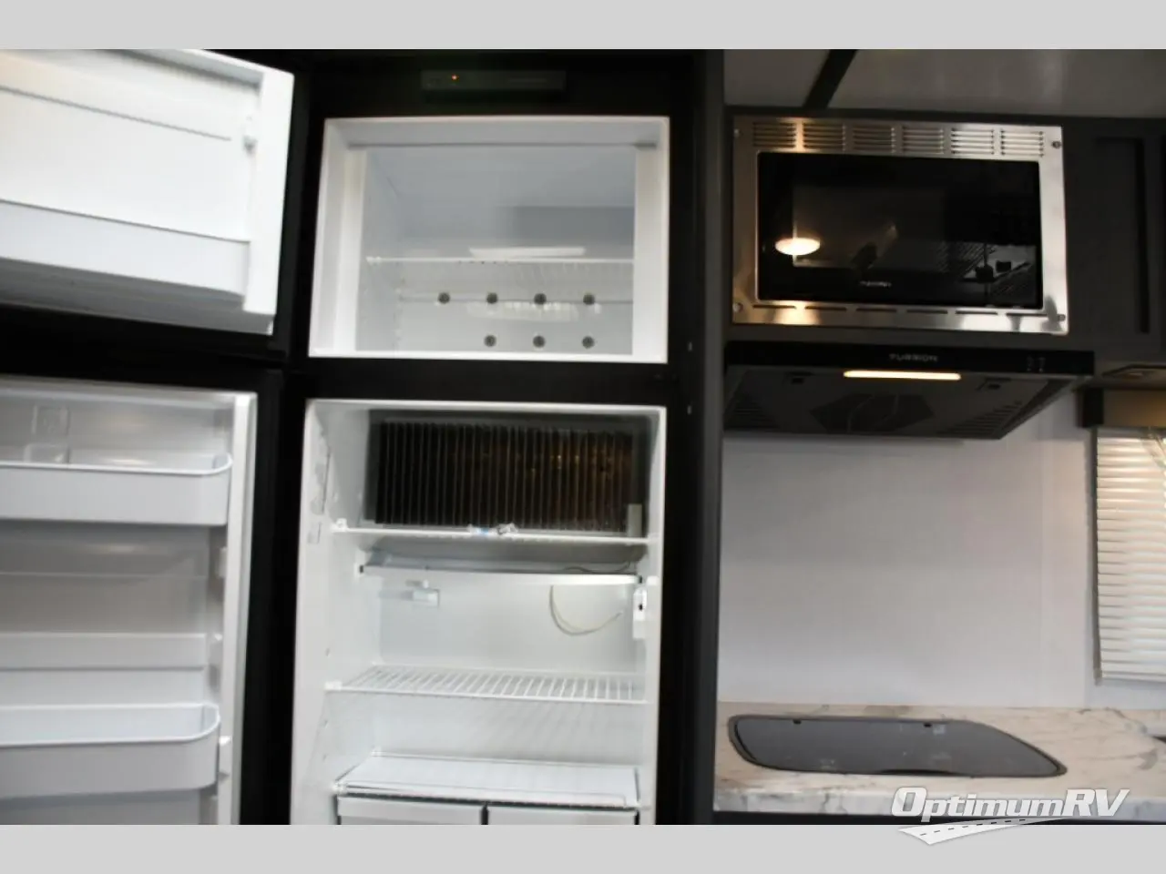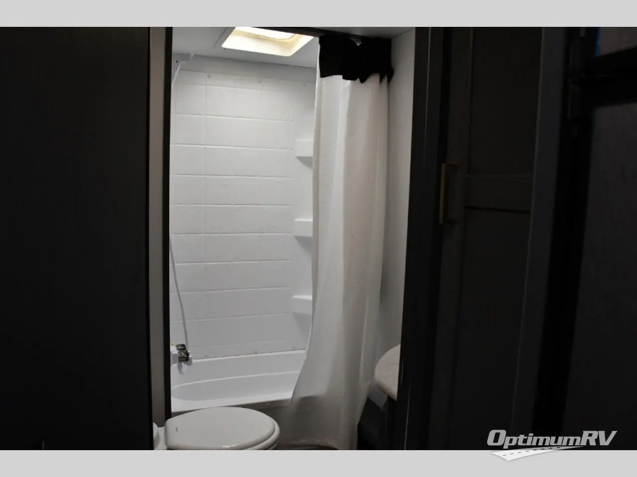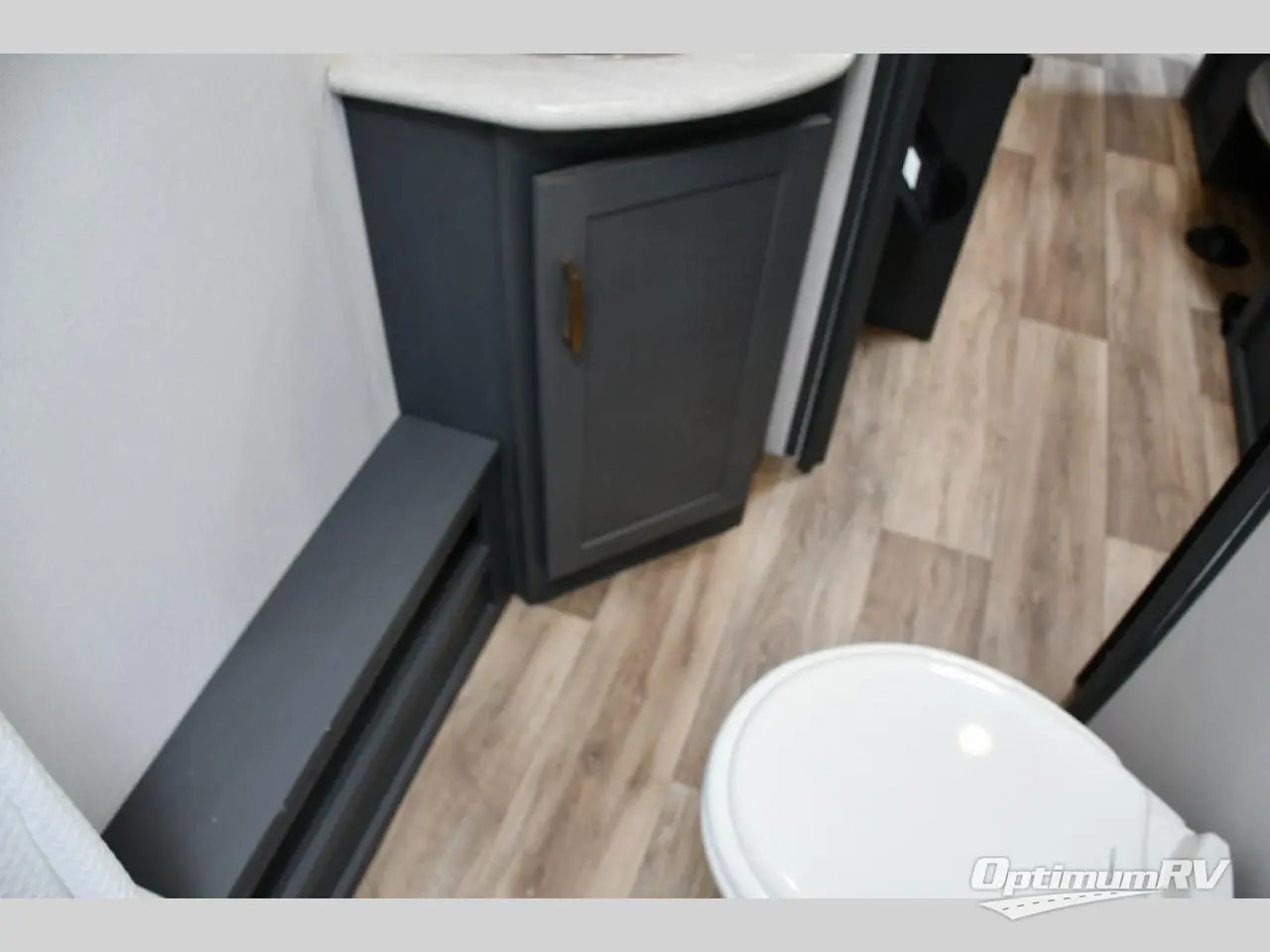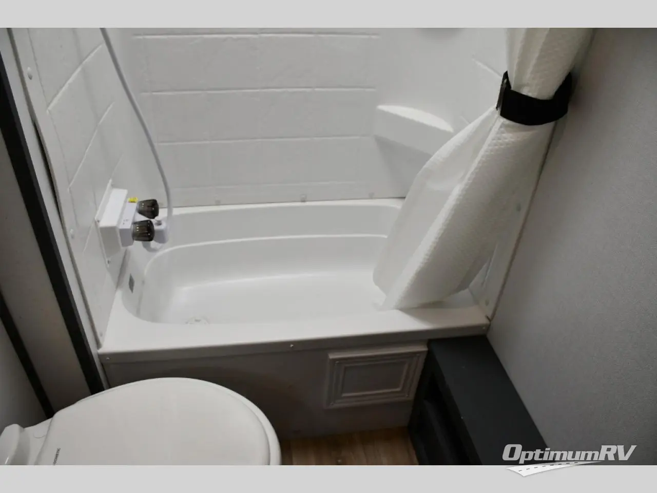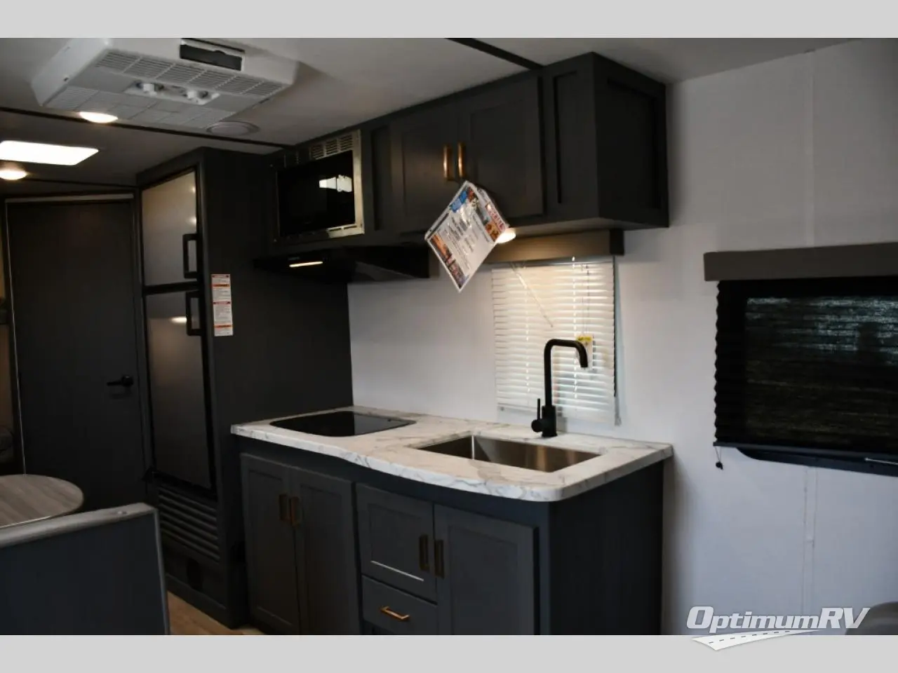 Added sleeping space and a versatile Murphy bed are a dream come true in this cozy travel trailer. The double-size bunks include a flip-up bunk for added storage, and the front Murphy bed can be folded away in the morning so you can relax on the sofa. There is also a Do-More dinette table where you can dine, play games, and sleep more guests. This model includes a full bath to clean up in each day, and there is a pantry just outside the bath for clean towels and necessities or for snacks. And check out the exterior with its 15' power awning with LED lights, pass-through storage, and outdoor kitchen with a pull-out griddle and refrigerator.