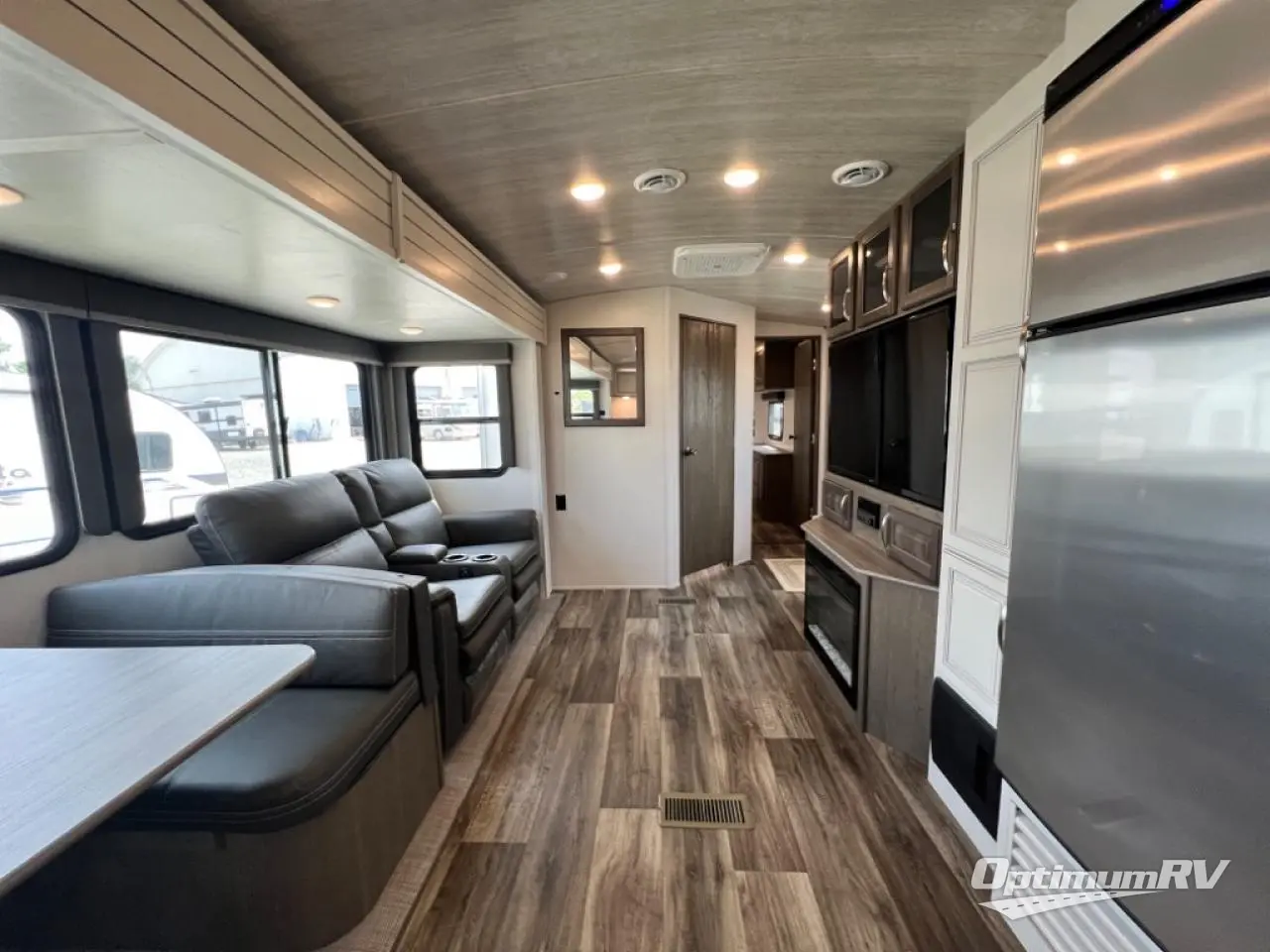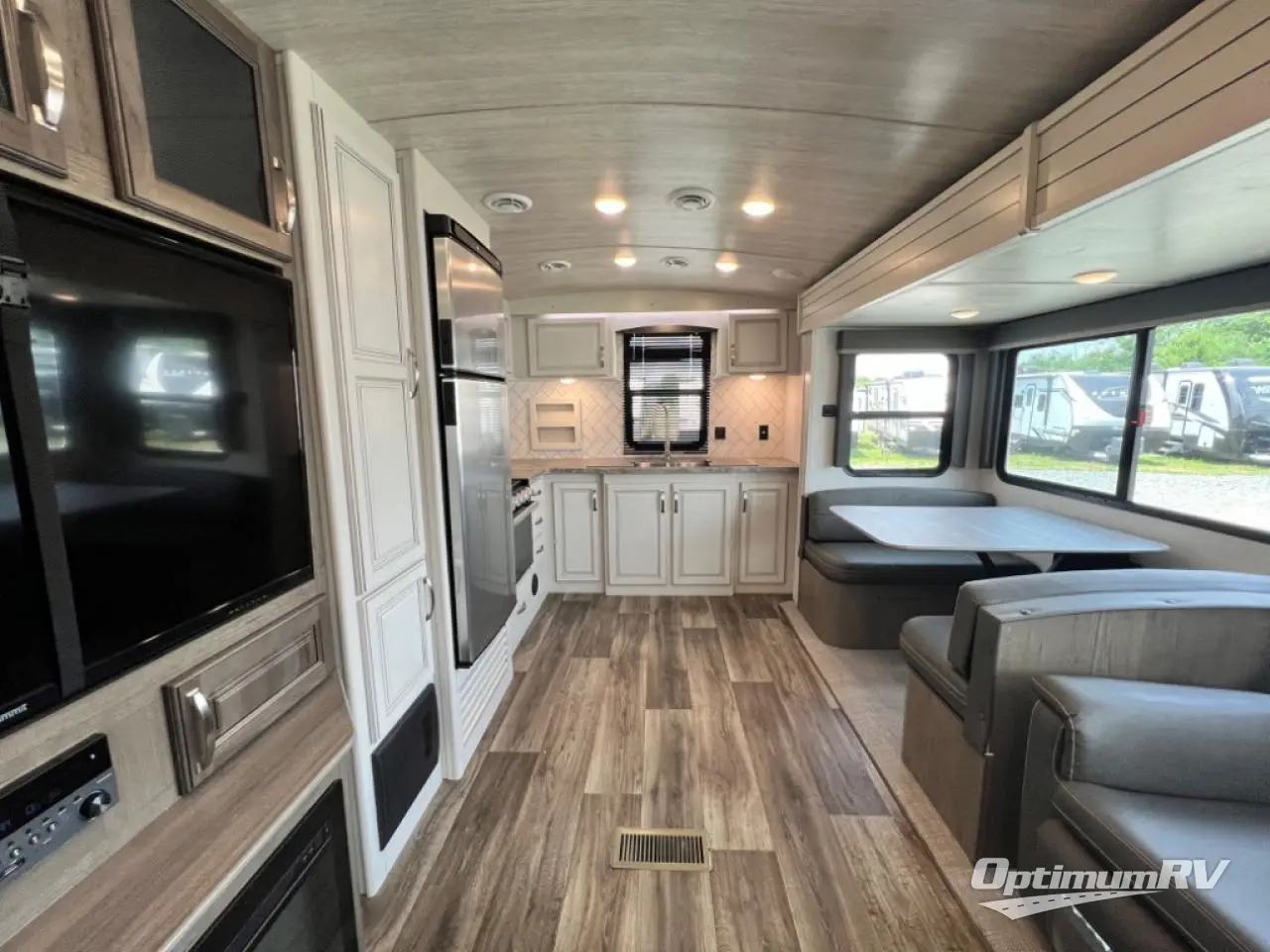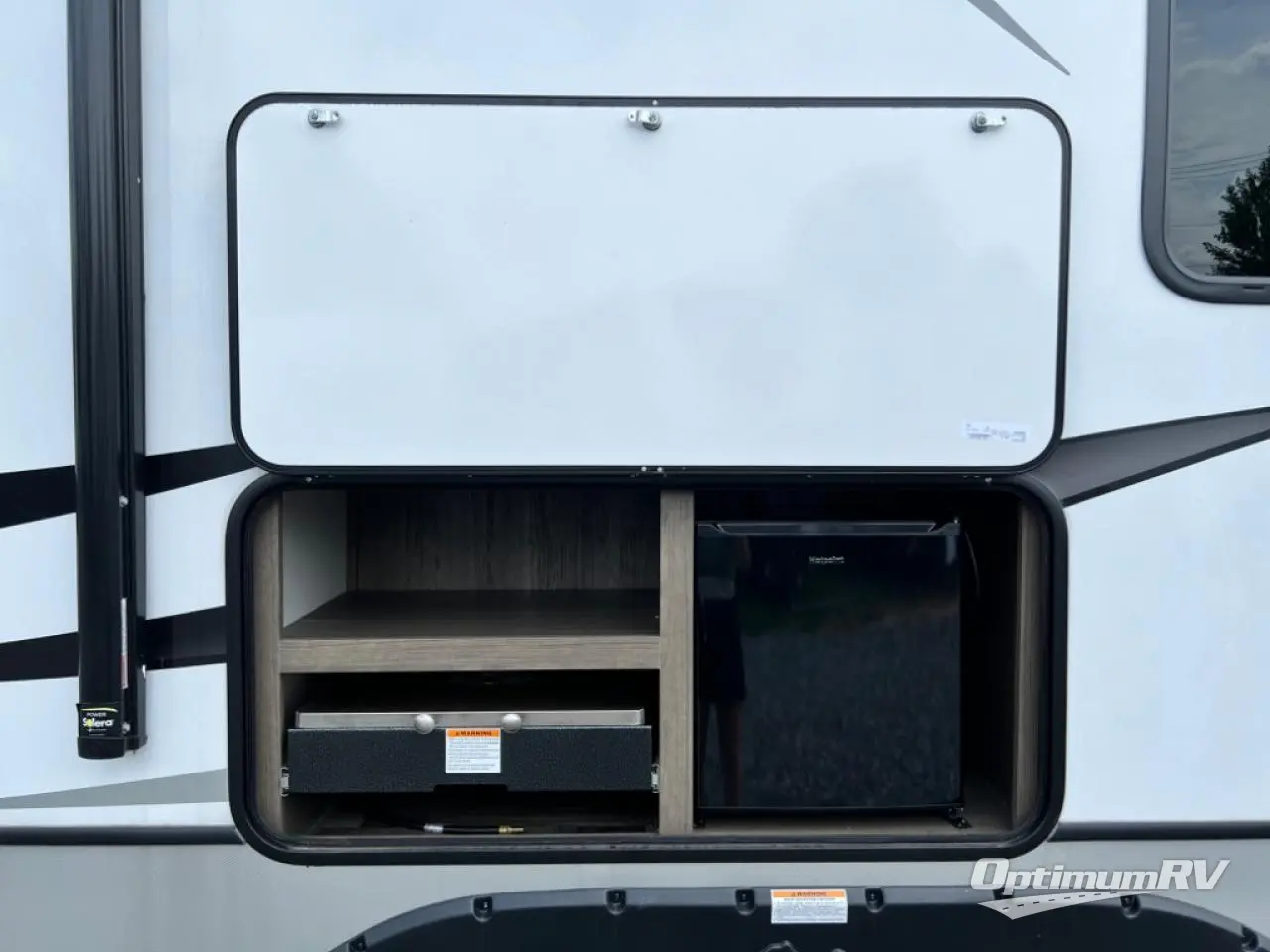 How does a king bed slide within a master suite sound? With this Cougar Half-Ton travel trailer, you'll have extra floor space and a full-width wardrobe allowing you to stay at your favorite campsite for long periods of time. The second slide located in the main living and kitchen area opens up this space for you to enjoy time spent inside just as much as outdoor adventures. The furniture even doubles as sleeping space for the kids or overnight guests. The rear kitchen layout is a convenience, and you will appreciate all the counter space for preparing and serving meals. You will find hidden storage behind the entertainment center, and next to the entertainment center is a pantry where you can store your favorite snacks.