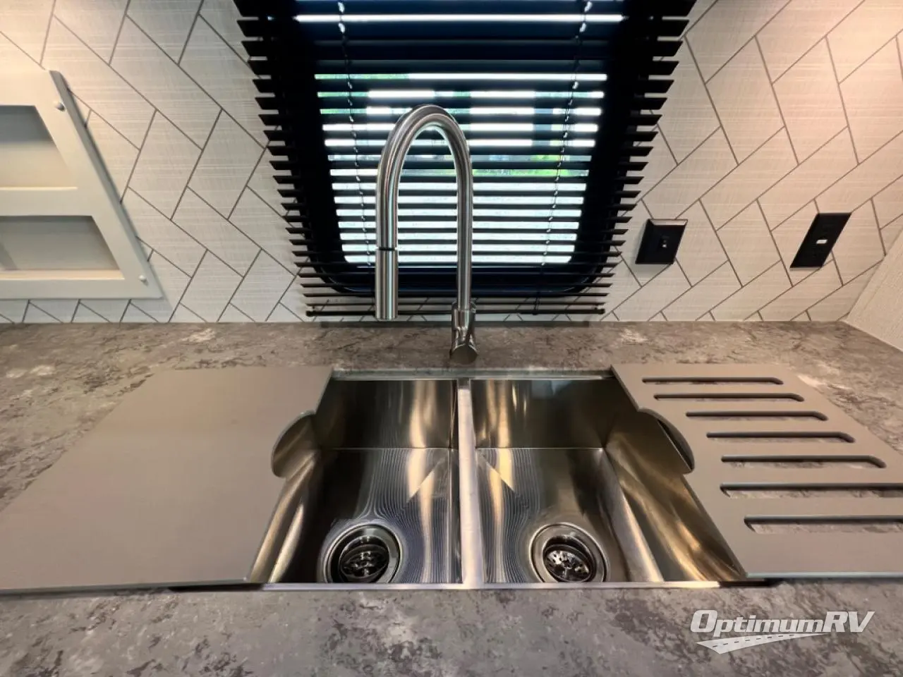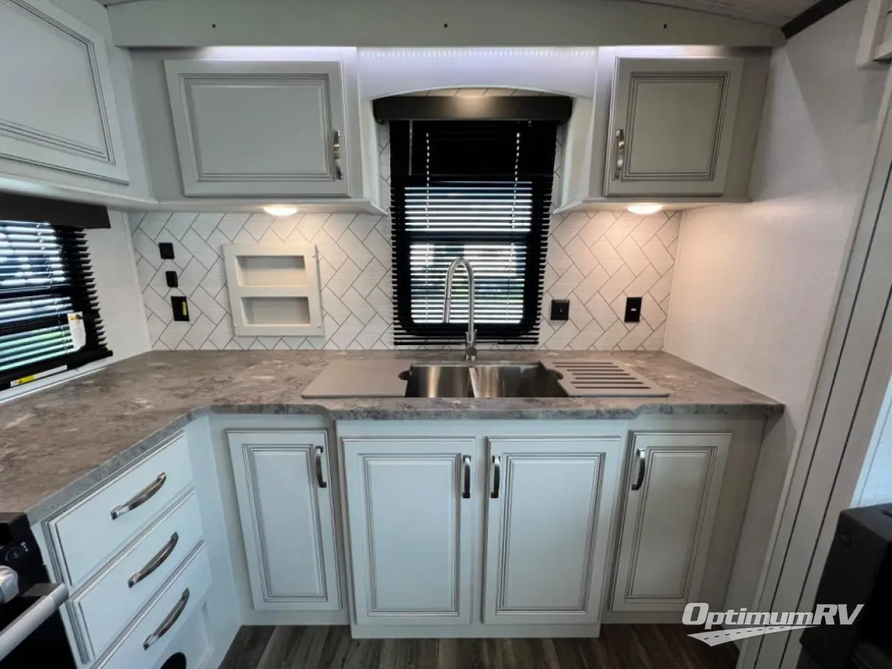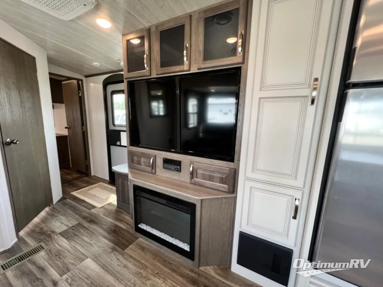 How does a king bed slide within a master suite sound? With this Cougar Half-Ton travel trailer, you'll have extra floor space and a full-width wardrobe allowing you to stay at your favorite campsite for long periods of time. The second slide located in the main living and kitchen area opens up this space for you to enjoy time spent inside just as much as outdoor adventures. The furniture even doubles as sleeping space for the kids or overnight guests. The rear kitchen layout is a convenience, and you will appreciate all the counter space for preparing and serving meals. You will find hidden storage behind the entertainment center, and next to the entertainment center is a pantry where you can store your favorite snacks.