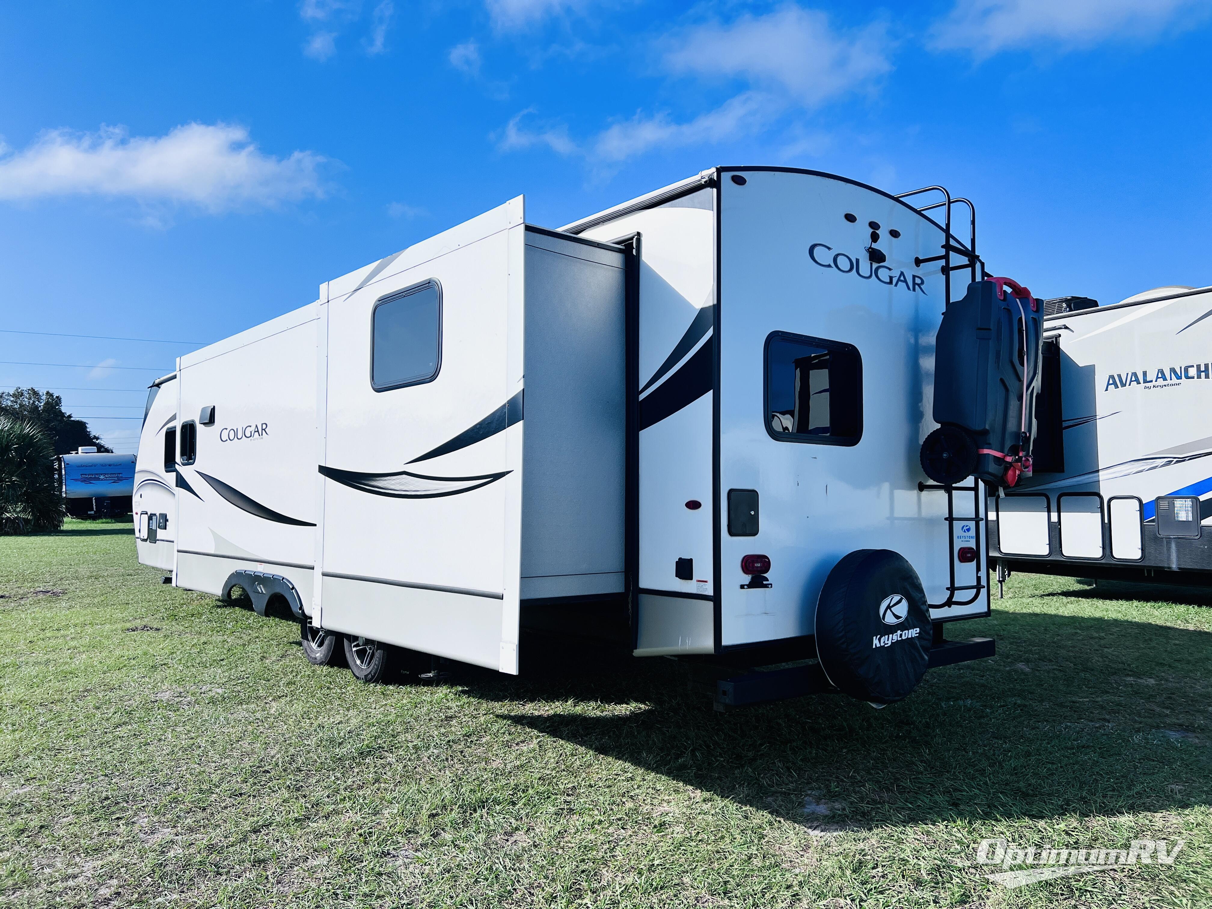 Wherever you go, you'll always have your home with you when you take this Cougar Half-Ton travel trailer along! All of the things you love most about your home have been incorporated into the design of this model. From the king-size master suite up front to the private bunkhouse in back, you'll have comfortable sleeping areas for both you and your kids. You can even have a game night together with the sleeper sofa and booth dinette in the main living area, or you can use the entertainment center to watch a movie.