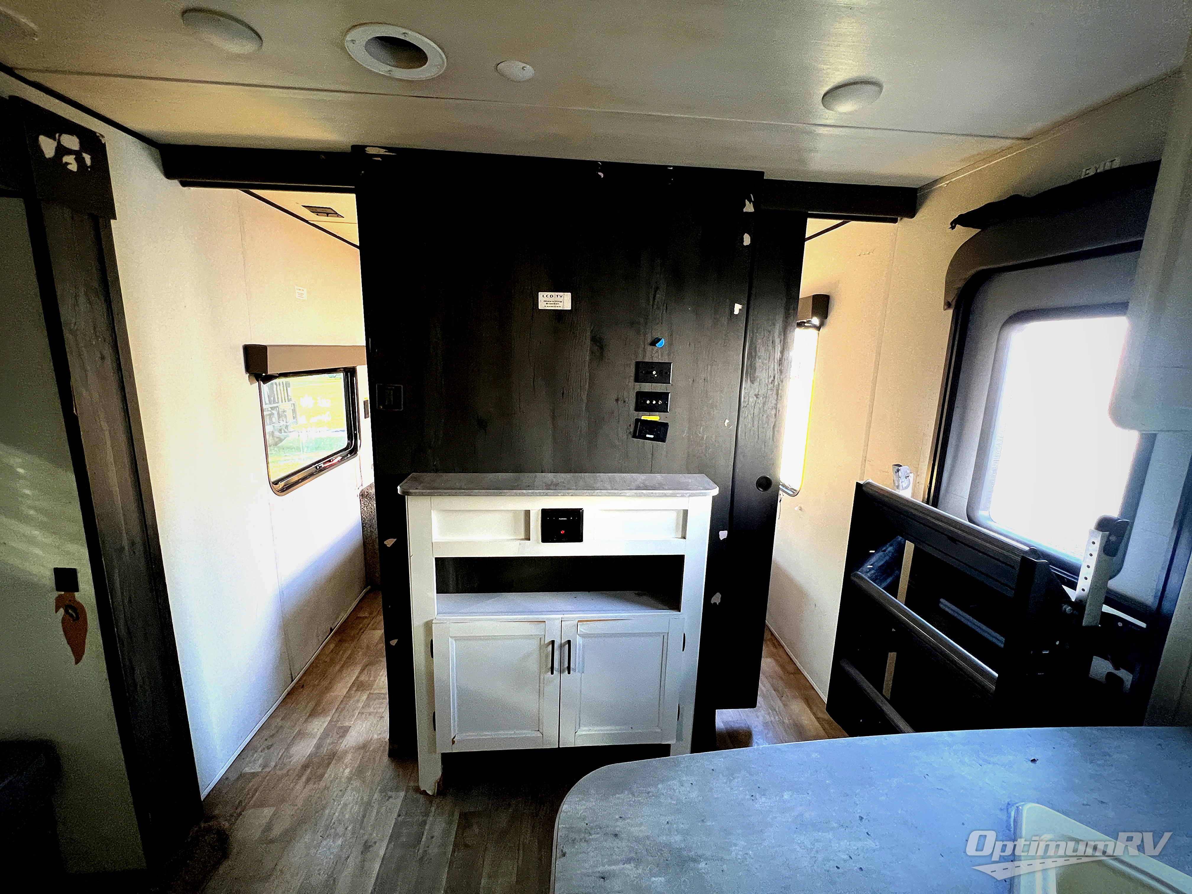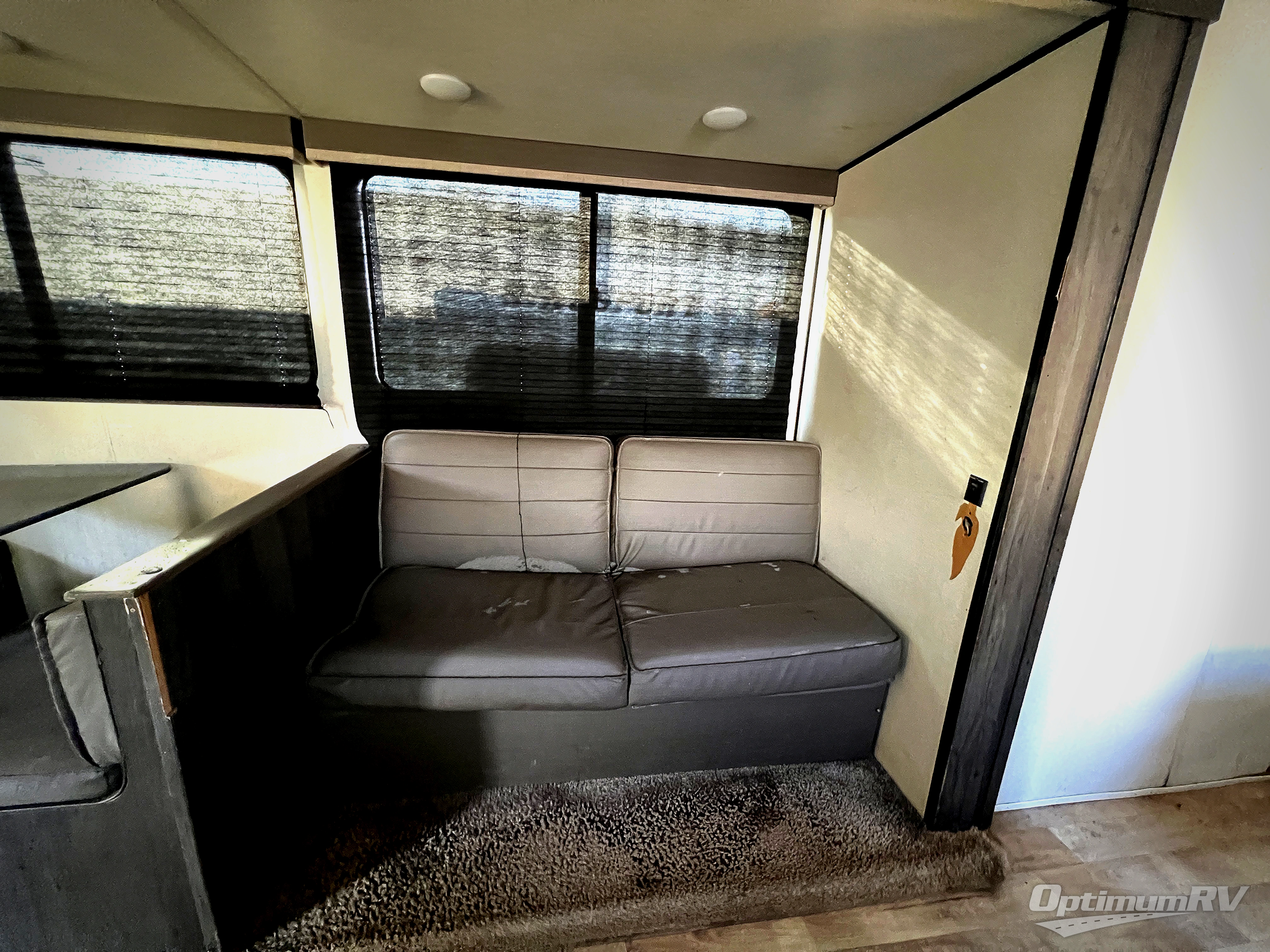 Get away with ease in this Hideout travel trailer! You will have your own private place to sleep in each night with the private bedroom up front. This bedroom has a queen-size bed, closets and nightstands on either side of the bed, overhead cabinets, and a laundry chute. Just outside the bedroom is where the entertainment center is located. The entertainment center has been prepped for a fireplace, and you can add an optional 40" HDTV too. The large slide holds the booth dinette and jackknife sofa, and the central vacuum will help you clean up any messes that are made throughout the trip.