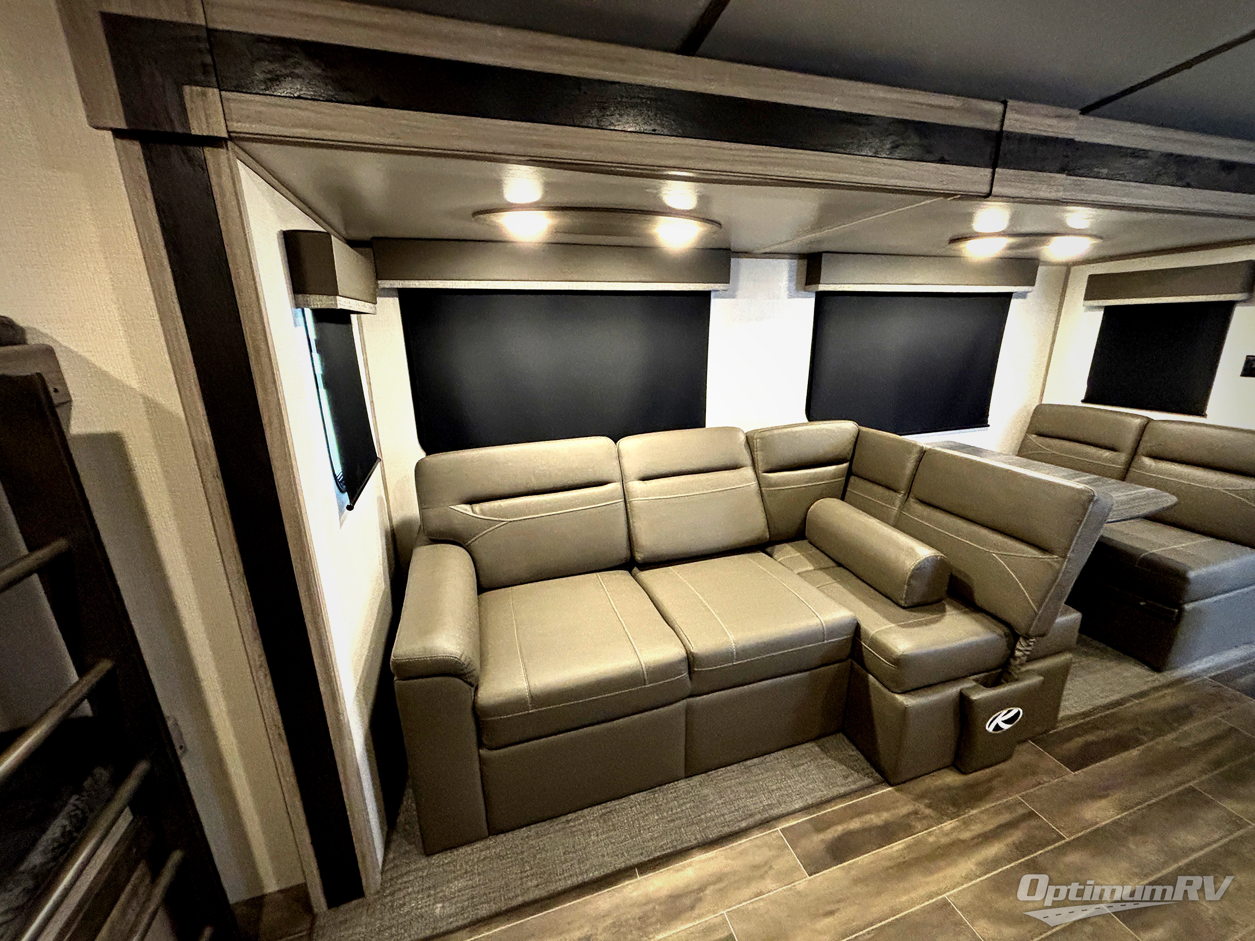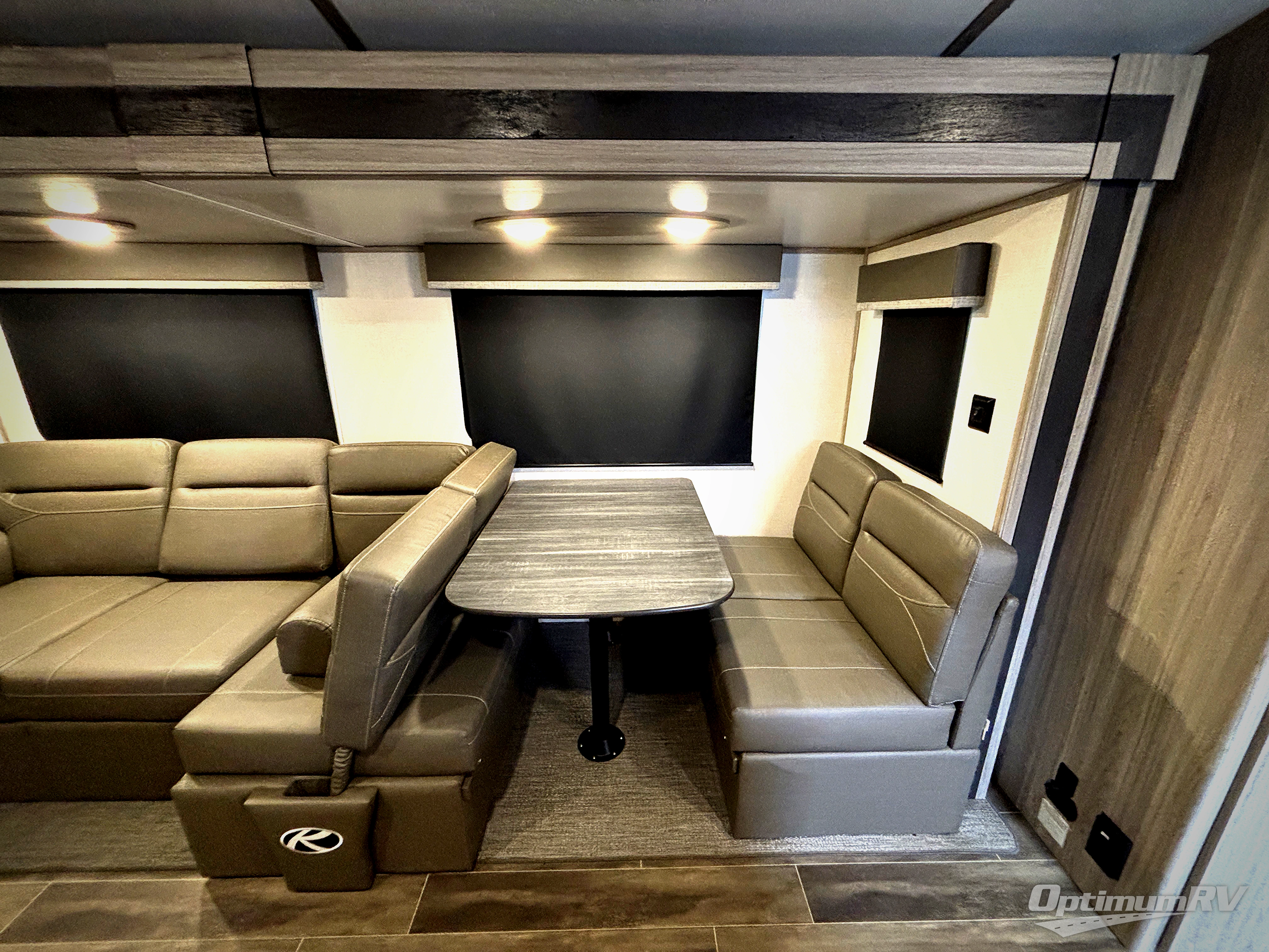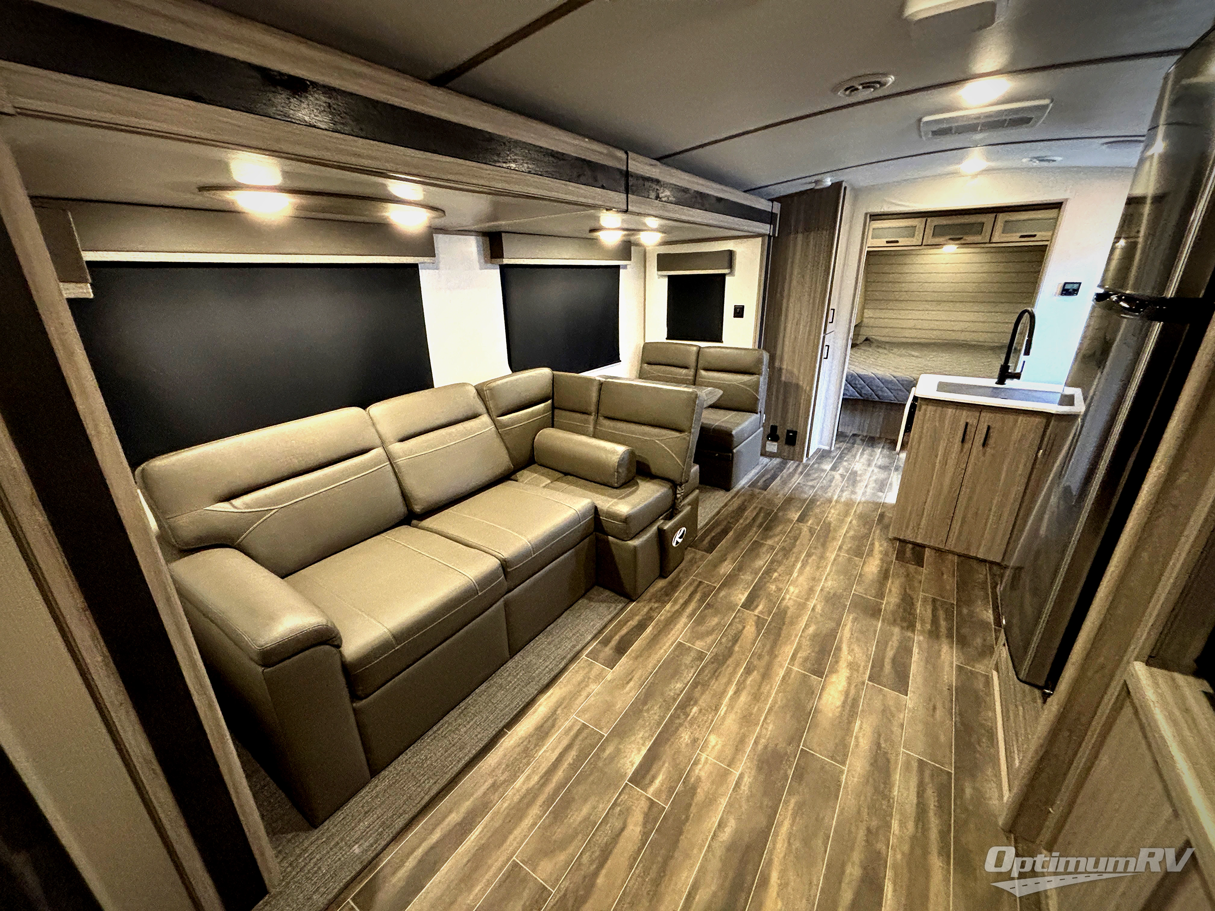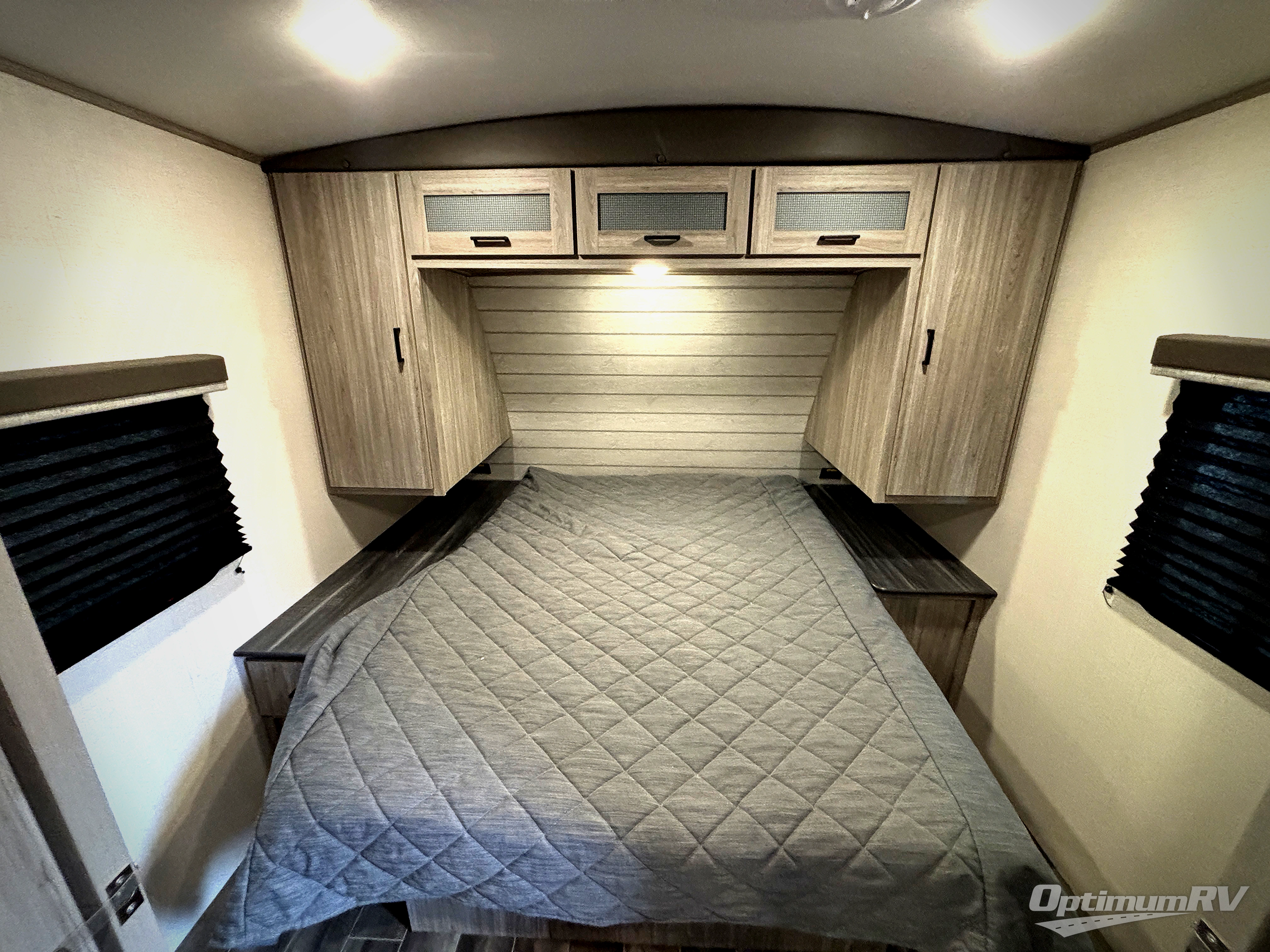 With dual entry doors, you can easily enter and exit this travel trailer! One of the entrances even leads directly into the rear corner bathroom so you can get back to having fun outdoors fast. The set of 51" x 74" bunk beds has a flip-up bottom bunk for storage space and a ladder to safely reach the top. The tri-fold sofa sleeper and U-shaped dinette slide opens up the living/kitchen area and they can be switched out for the optional pivot furniture which can flip back and forth for a dinette or sofa position. Create delicious home cooked meals with the three burner cooktop and flip-up countertop or head to the outside kitchen to breathe in some fresh air while cooking dinner. The exterior also has front pass-through storage, a rear exterior storage area, a cargo door, and a 21' power awning to protect you rain or shine!