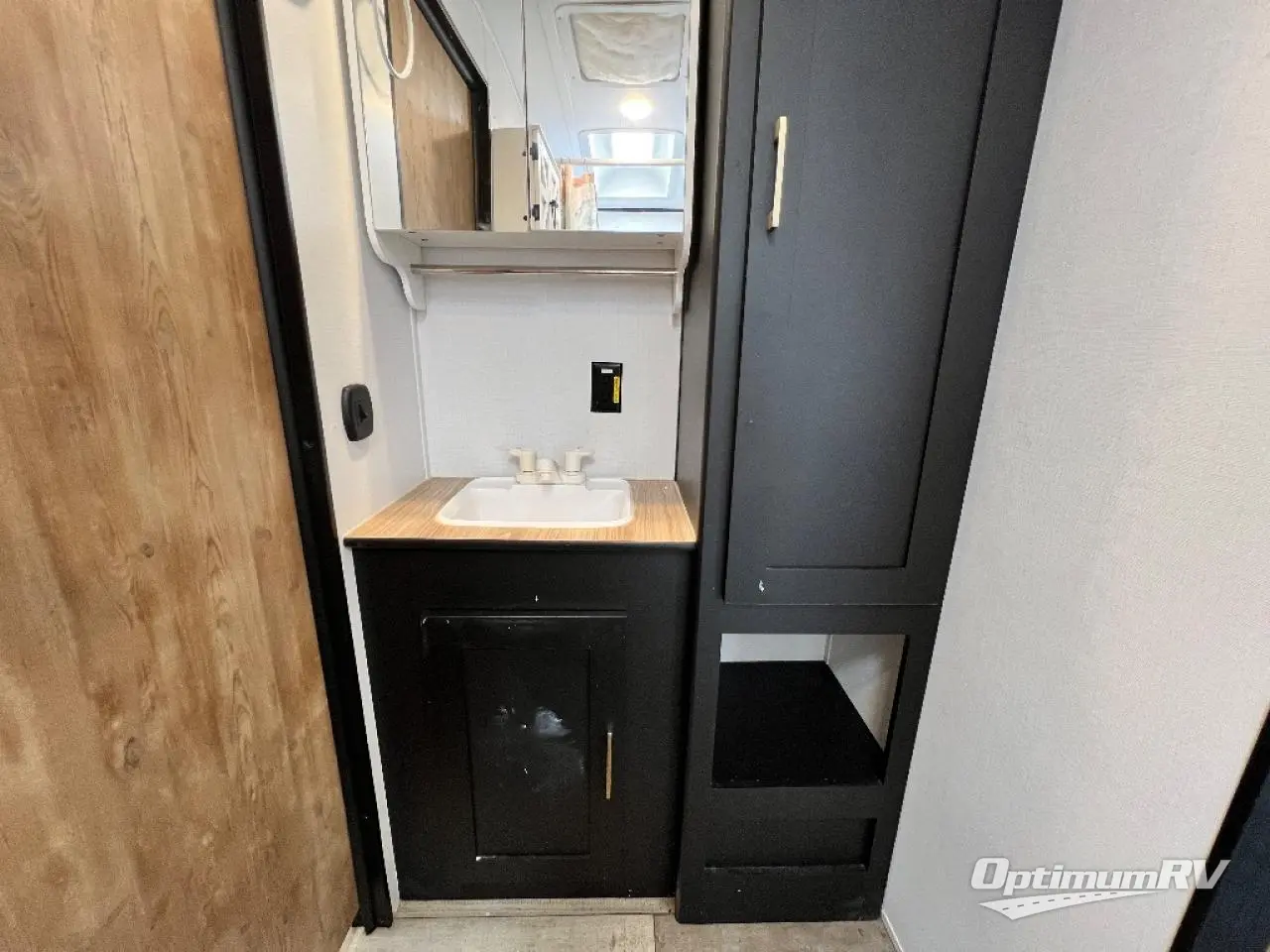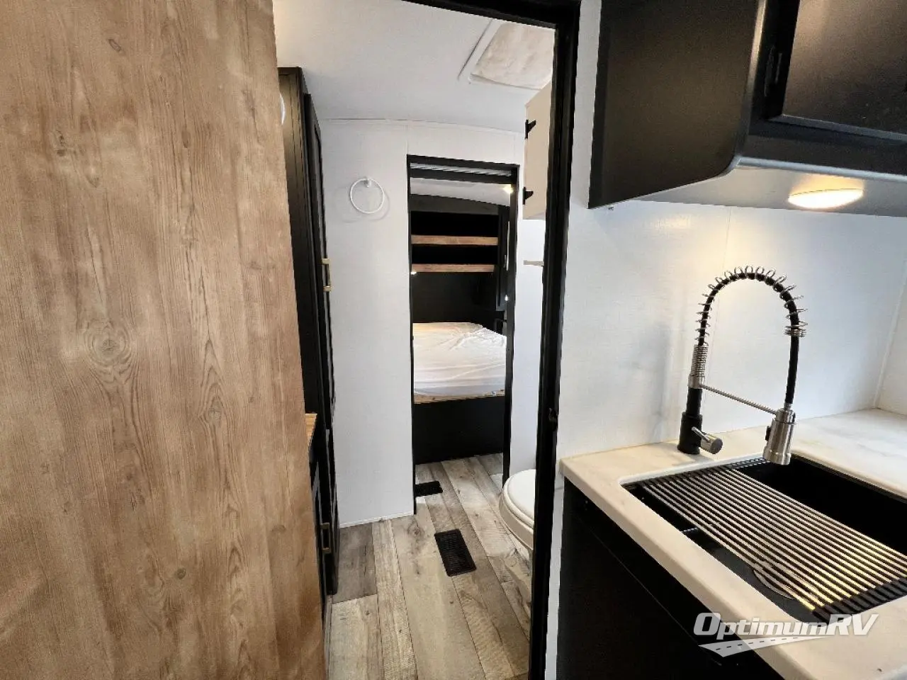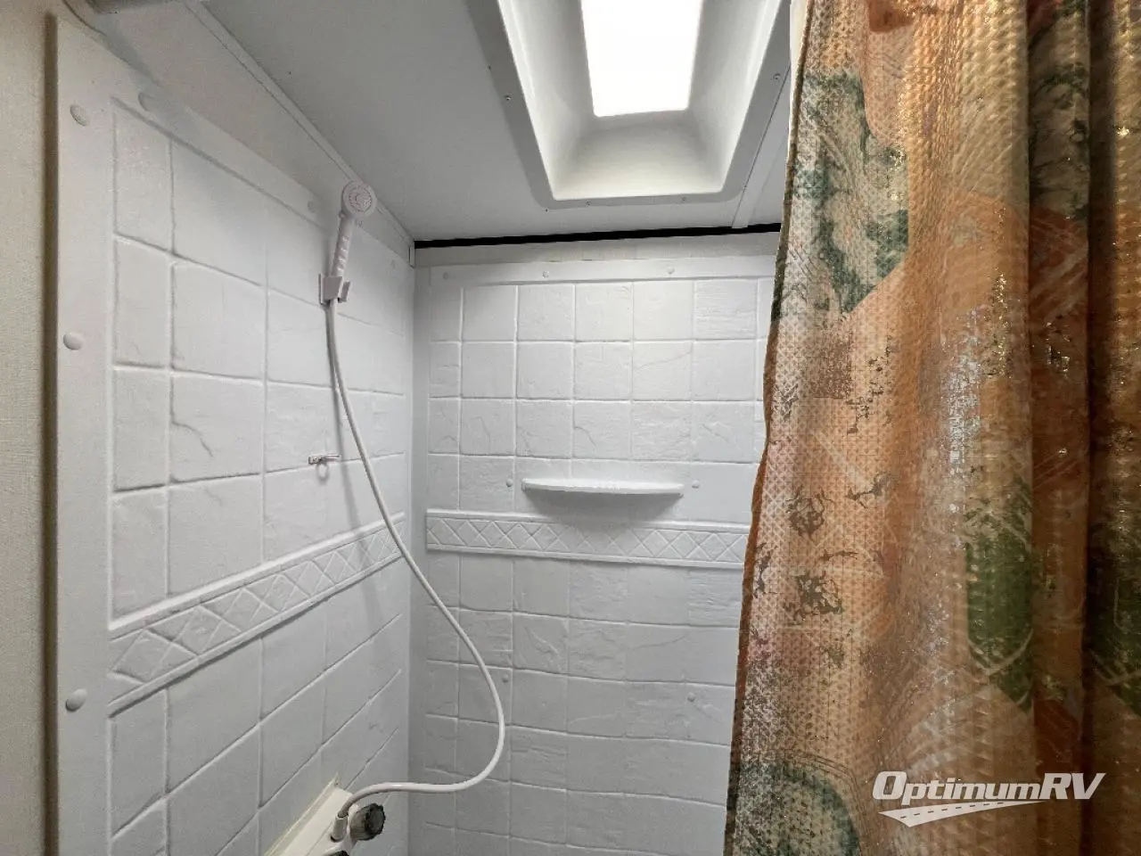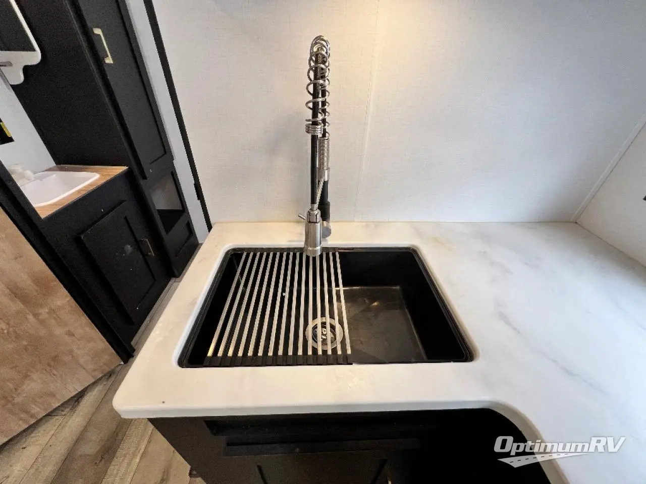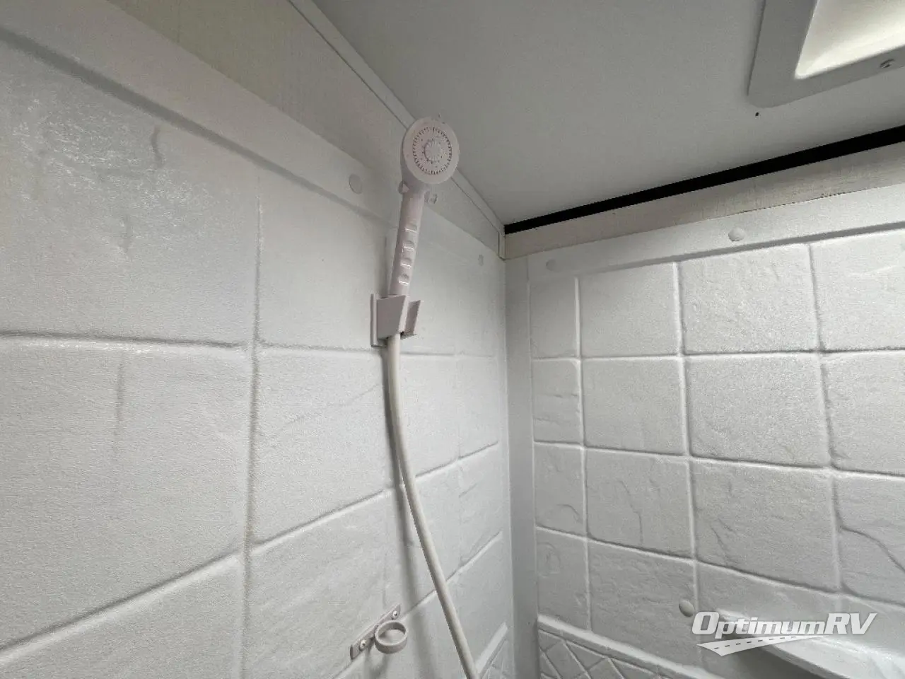 If you want a quick weekend trip or a longer week in the woods, this travel trailer is going to be your best choice because it has everything needed to enjoy your time away! There is a large slide in the main living area to provide you with some extra floor space to relax on the sofa, and the booth dinette will be a cozy spot to sit down with a hot meal. You can use the three-burner range to prepare that meal, the L-shaped counter to serve your meals from, and you can store some canned goods and snacks in the pantry. The fireplace makes this combined space cozy especially during those chilly camping evenings. And the 21' power awning is available for use whenever you want to relax outdoors, just grab your camping chairs from the front pass-through compartment.