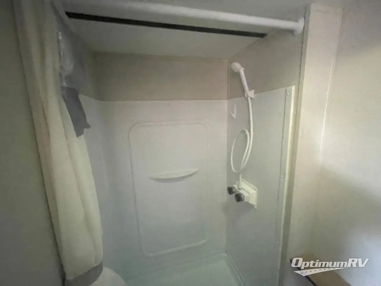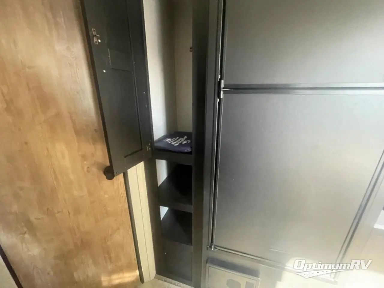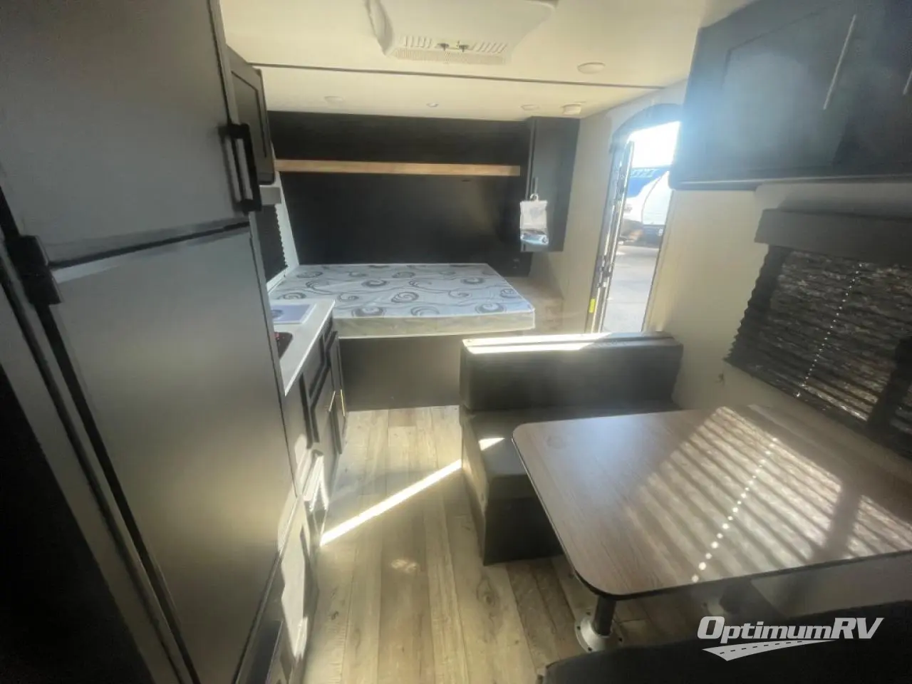 This double axle trailer offers lots of sleeping space for your family and friends with the double-size bunk beds, the queen bed and the booth dinette. Once everyone selects their sleeping space, you can take turns getting cleaned up in the full bathroom with extra counter space for everyone's toiletries. The cook can whip up a snack before bedtime on the two burner cooktop or grab something from the 6 cu. ft. refrigerator and the pantry. There is a closet up front, overhead storage throughout, and inside storage under the bunk for everyone's things. And the exterior provides a pass-through compartment for more items and the outdoor gear like fishing poles and camping chairs.