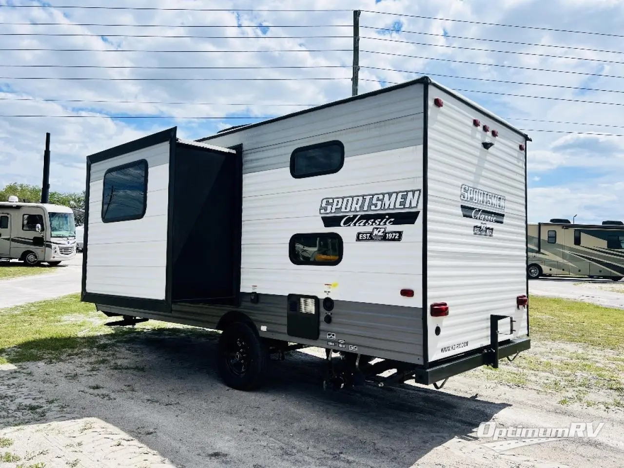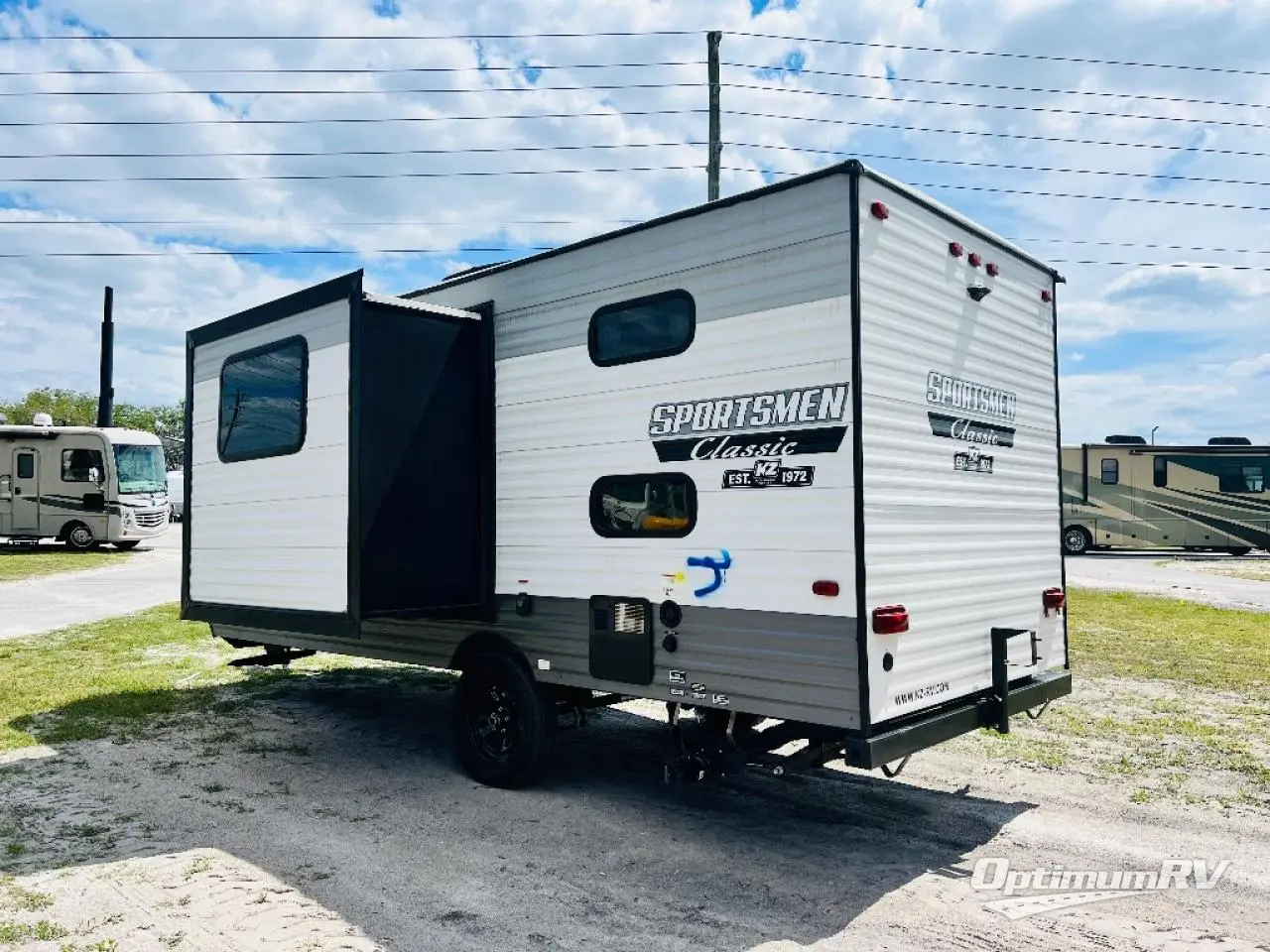 With any Sportsmen Classis travel trailer, expandable, or toy hauler by KZ you will find durable construction materials, like the 3/8" full-walkable roof and the one-piece seamless Tufflex material. Each model includes scissor-style stabilizer jacks, a Key-Alike program for baggage and entry doors, and a Leash Latch with a bonus beverage opener. You will find interior and exterior speakers, a new three-toned exterior metal, plus backup camera prep and solar prep. The Sportsmen Classic is designed to make you feel at home with LED interior lights, rail-style cabinet doors, residential grade linoleum, and plenty of storage space for all your belongings.