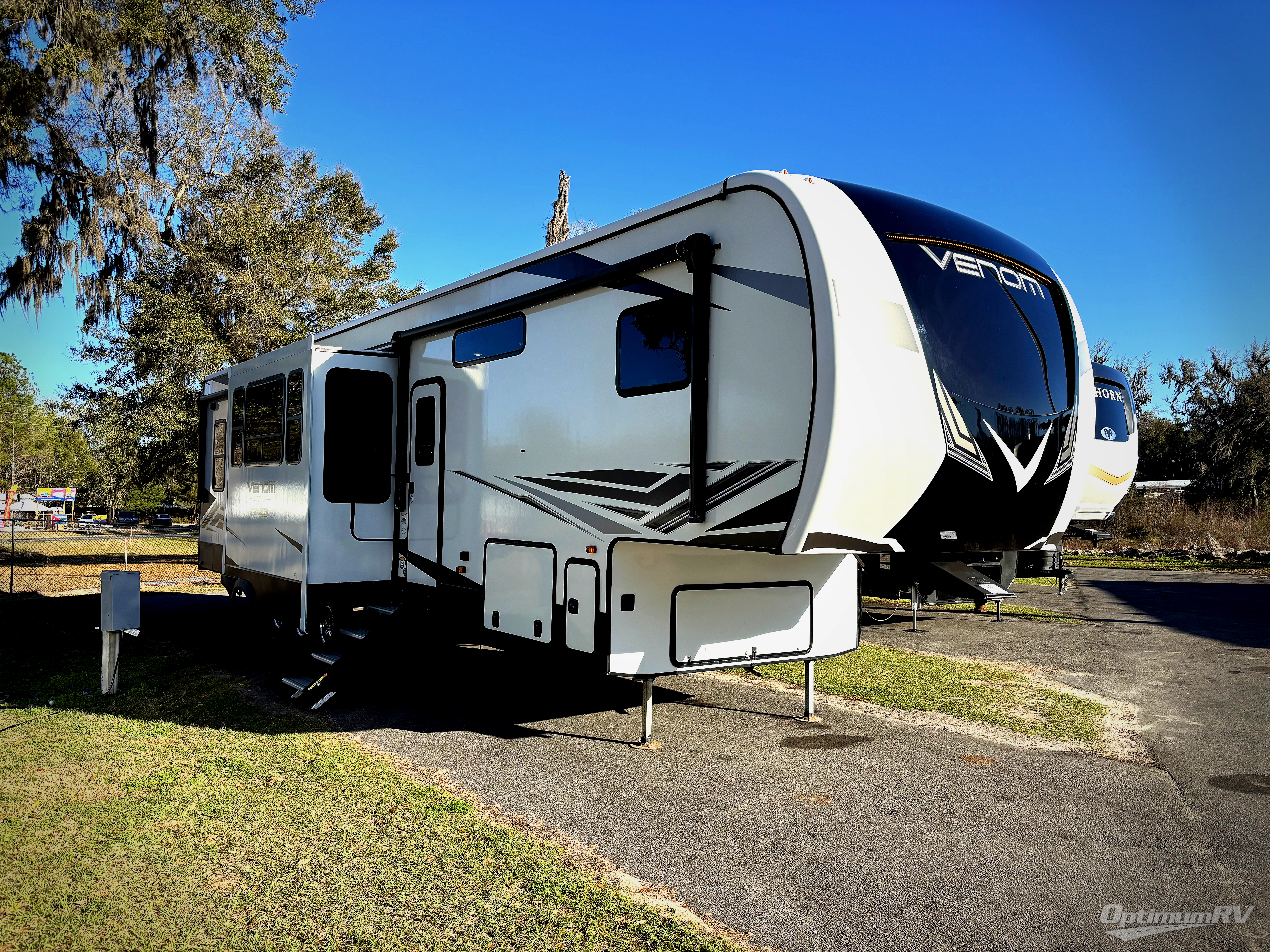 With any KZ Venom V-Series toy hauler fifth wheel, you will have 6-sided aluminum framing, a partial painted fiberglass front cap, and generator prep with a 30 gallon fuel tank and pump station to keep the fun going. More standout features include the six-point electric auto leveling, the Equa-Flex suspension, and Tufflex roofing material for a flexible, puncture resistance and reflective roof. The fully vented attic system provides two attic vents for escape routes for unwanted moisture, and the All-Weather Insulation package allows you to travel during any season. The interior provides deluxe residential-style furniture, decorative lighting above many cabinets, heavy-duty 100 lb. drawer glides on every drawer, and a On-Demand tankless water heater with digital user control panel. Make your selection today, and start having fun with your toys and enjoying the luxurious and comfortable features in any Venom V-Series!