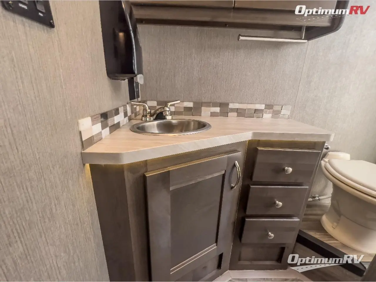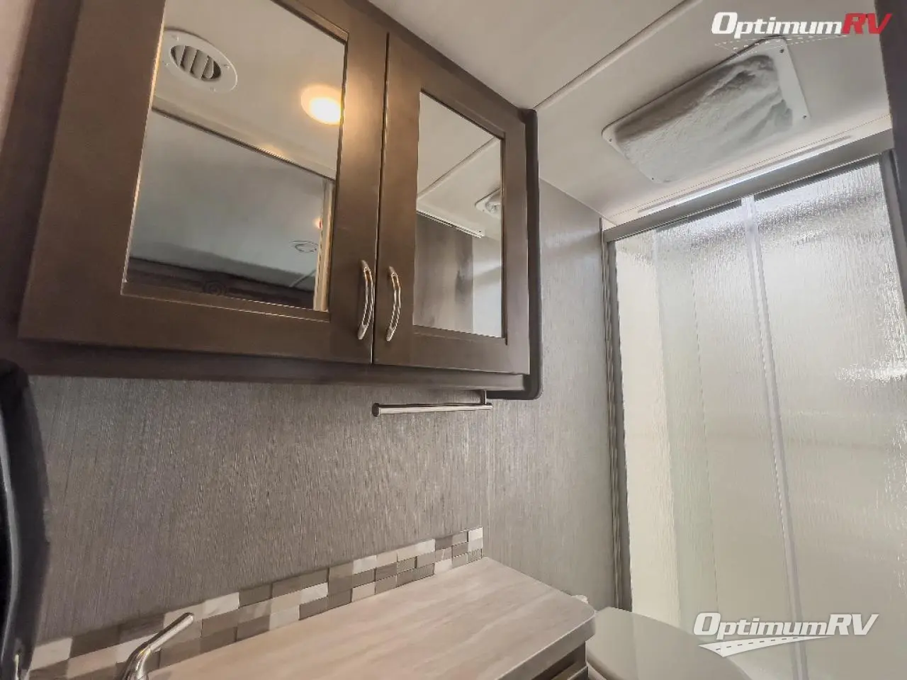 Travel in comfort with your spouse or family to see new places and visit friends in another state. As comfortable as driving will be, the interior offers plenty of space to dine, relax and unwind. The full wall slide makes each area spacious from the front to the back where you will find a hinged RV queen bed and a full bathroom which includes a shower with a flexible hose shower head, a shower skylight and a vinyl door. You will find storage in the wardrobe and overhead cabinets as well as along the exterior. The front entertainment center with 32" LED TV will come in handy on those rainy days. A few other features you are sure to appreciate include a 4.0 Onan generator when you decide to stop off-grid, the LP quick disconnect, and the 7,500 lb. hitch if you would like to tow your toys and such.