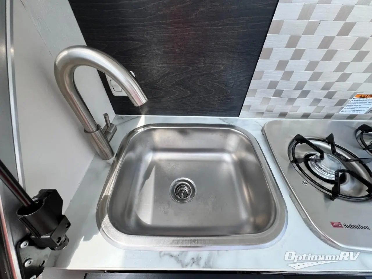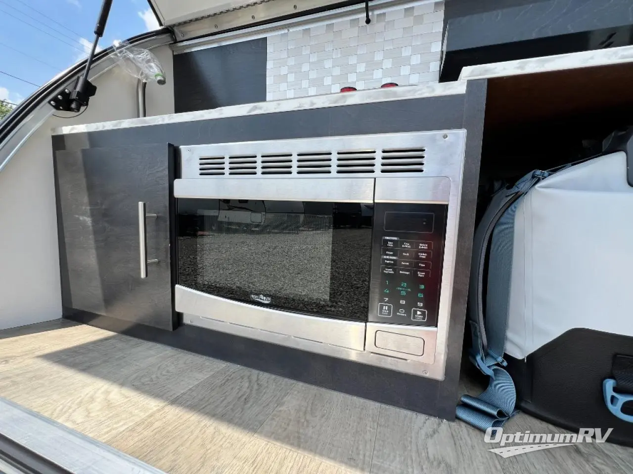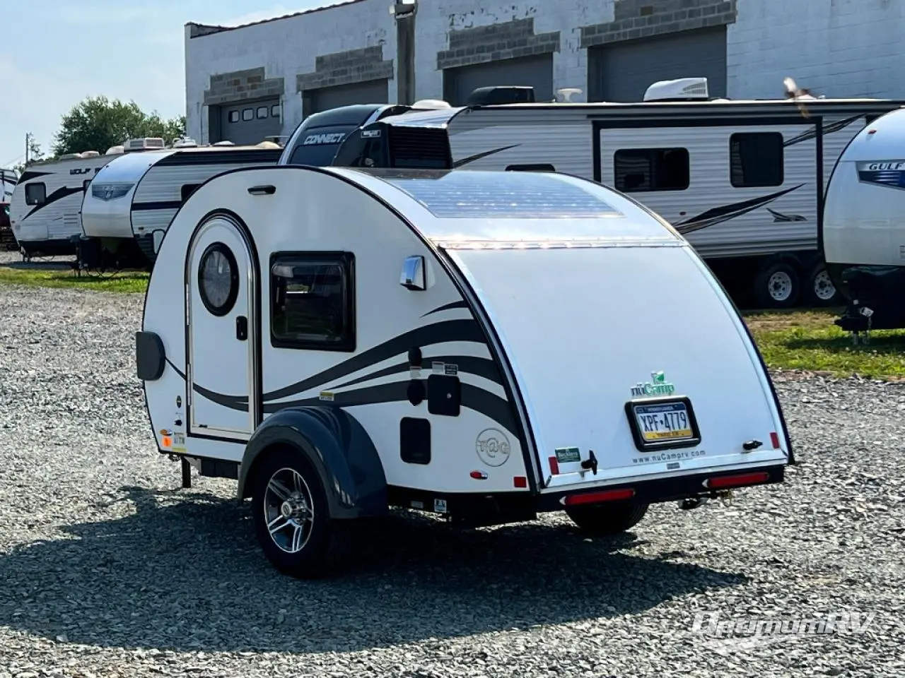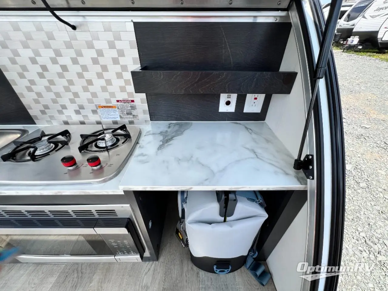 With any nuCamp RV TAG teardrop trailer, you can bring some of the comforts of home with you as you easily tow this lightweight trailer to the campgrounds or off-grid location thanks to the solar roof package. The outdoor kitchen includes a sink, stove, microwave, and removable cooler plus counter space. And the interior offers a composite floor, custom Ohio-Amish cabinetry, a Bluetooth speaker, sleeping accommodations, and a screen/shade system. Get ready for adventure in a TAG!