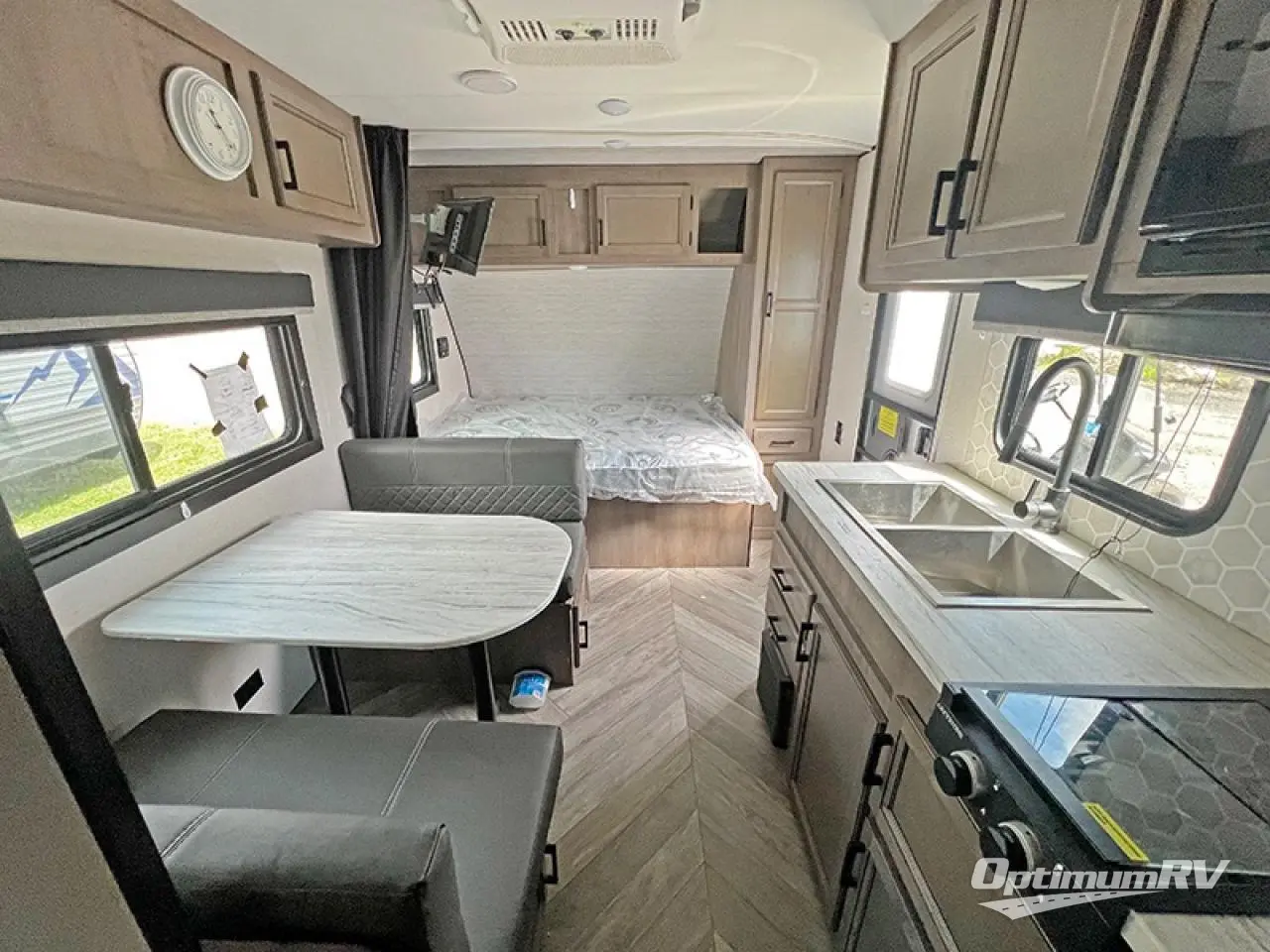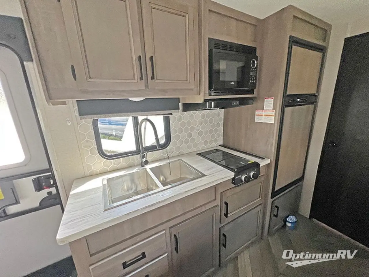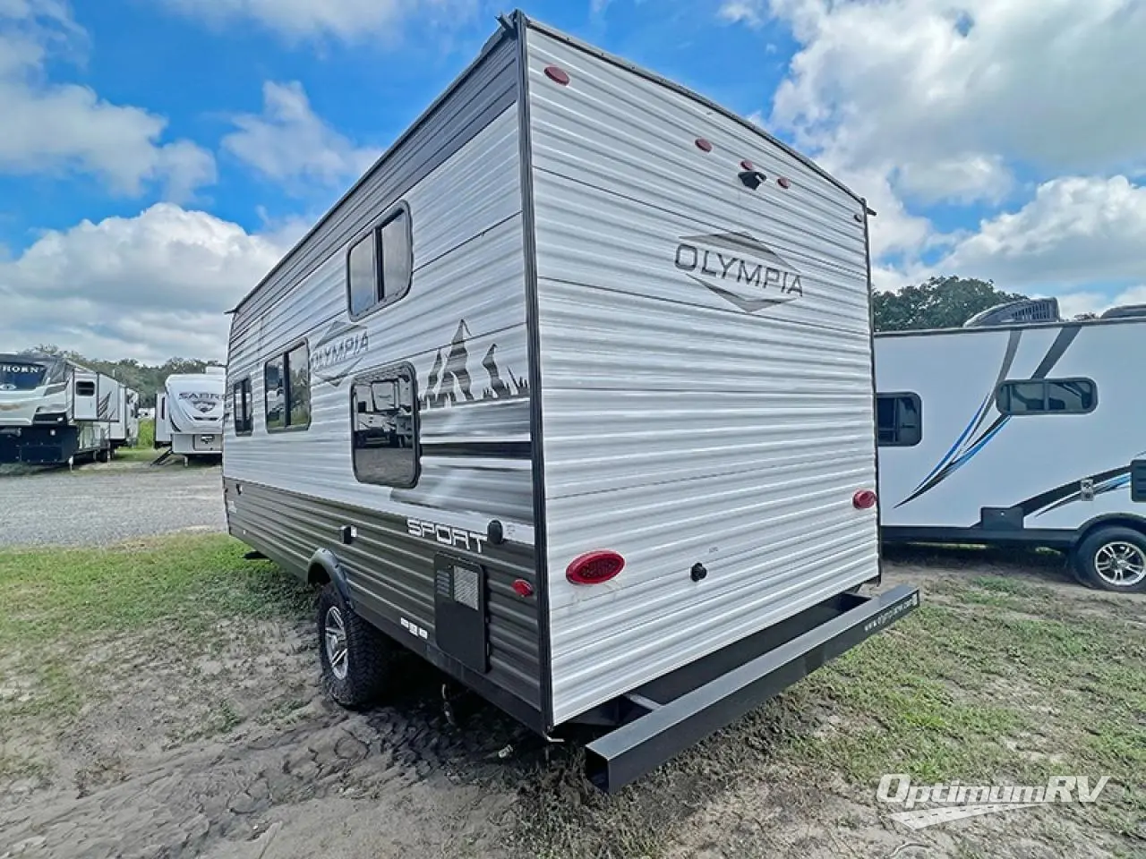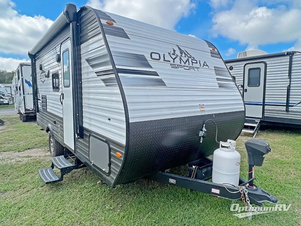 You are going to love how much freedom you'll have with the Olympia Sport travel trailer! Because these units are lightweight and compact, you won't have much trouble getting them to and from the campsite. The interior has residential vinyl flooring, 75-LB ball-bearing drawer guides, hardwood cabinet doors, and LED lighting. With the Sport Package, you'll find features such as the 15" off-road radial tires, flipped axle for increased ground clearance, and Sport exterior graphics package. The Customer Convenience Package includes features that are accommodating for the whole family, like the power awning with LED lights, digital TV antenna, gas/electric DSI water heater, and preparations for solar power.